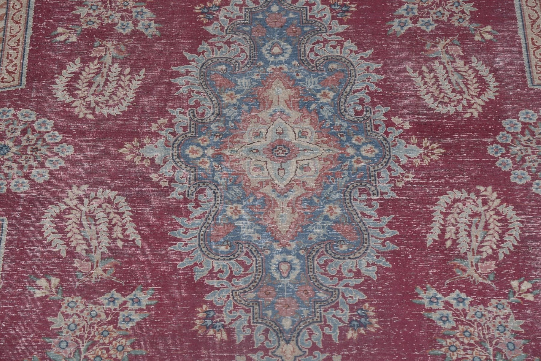 A Beautiful Genuine Persia ( Persia ) Kerman rug is Hand Knotted by skillful weavers in Persia ( Persia ) with 100% Wool Material. This rug is in Very Good (Evenly Low Pile) condition. dimensions are 12' 11'' X 9' 8'' in foot and 394 X 295 in centimeter. the primary color is Red.
