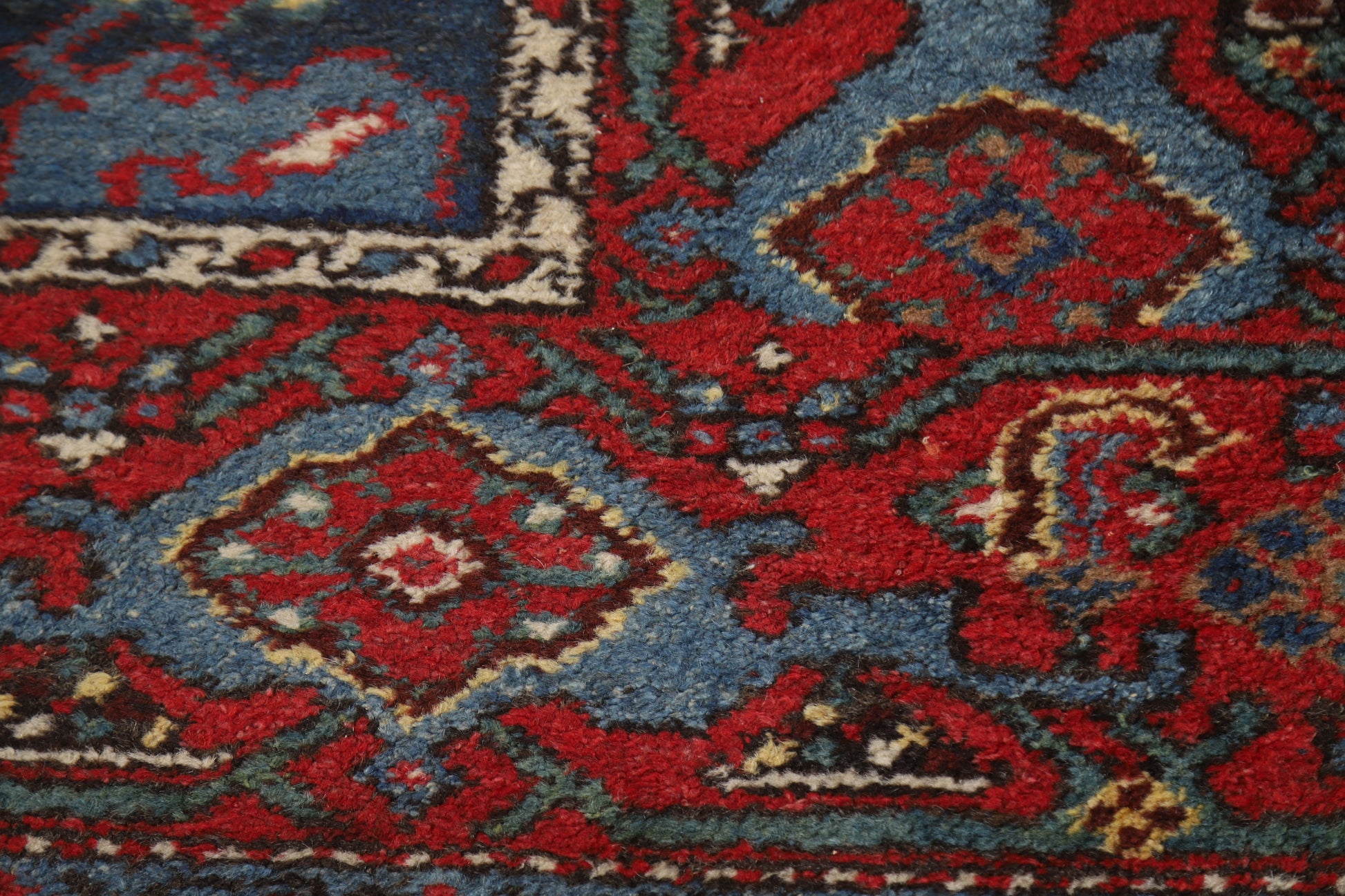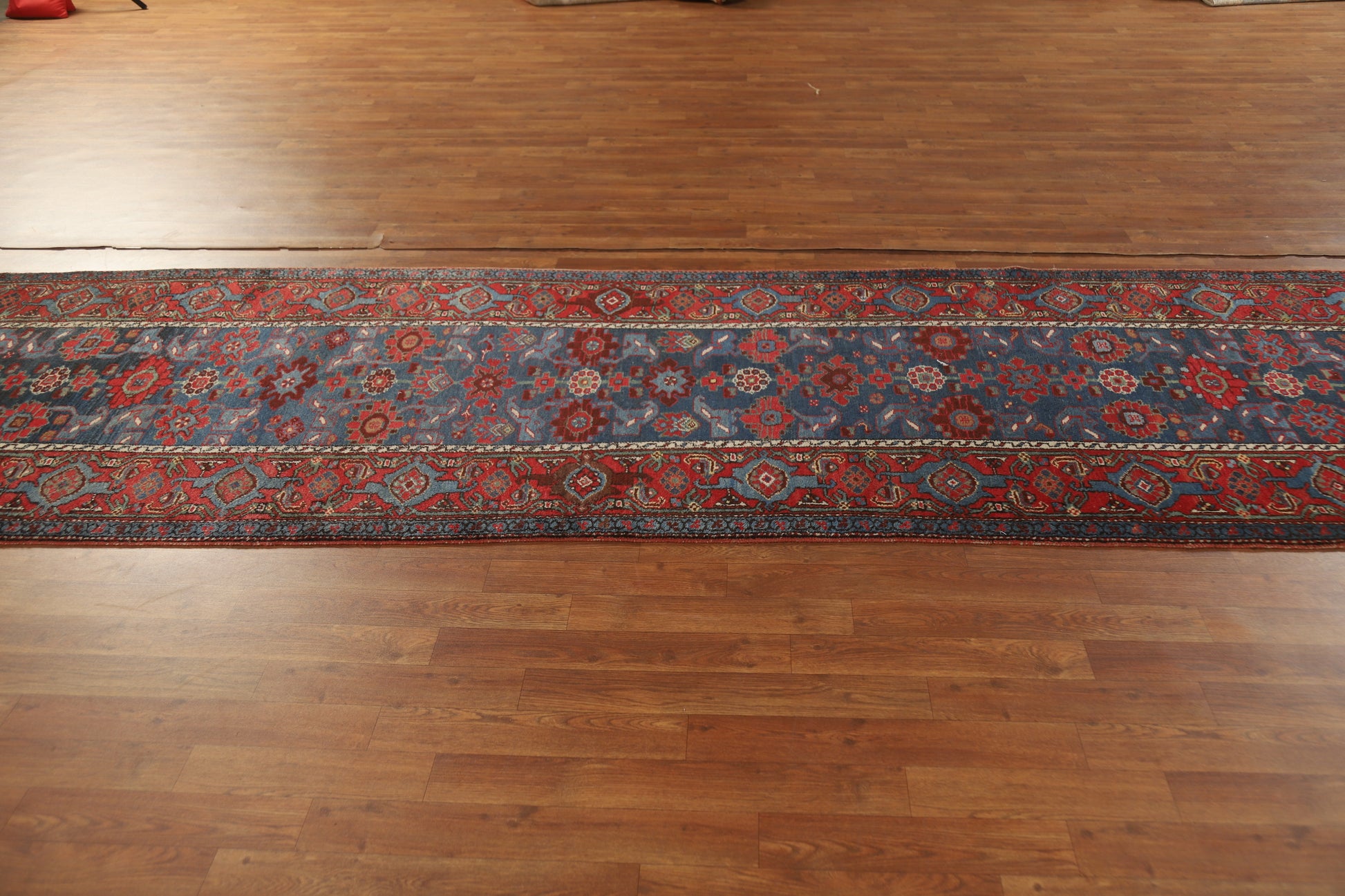 A Beautiful Genuine Persia ( Persia ) Heriz (Bakhshayesh) rug is Hand Knotted by skillful weavers in Persia ( Persia ) with 100% Wool Material. This rug is in Very Good condition. dimensions are 15' 7'' X 3' 5'' in foot and 475 X 104 in centimeter. the primary color is Navy Blue & Blues.