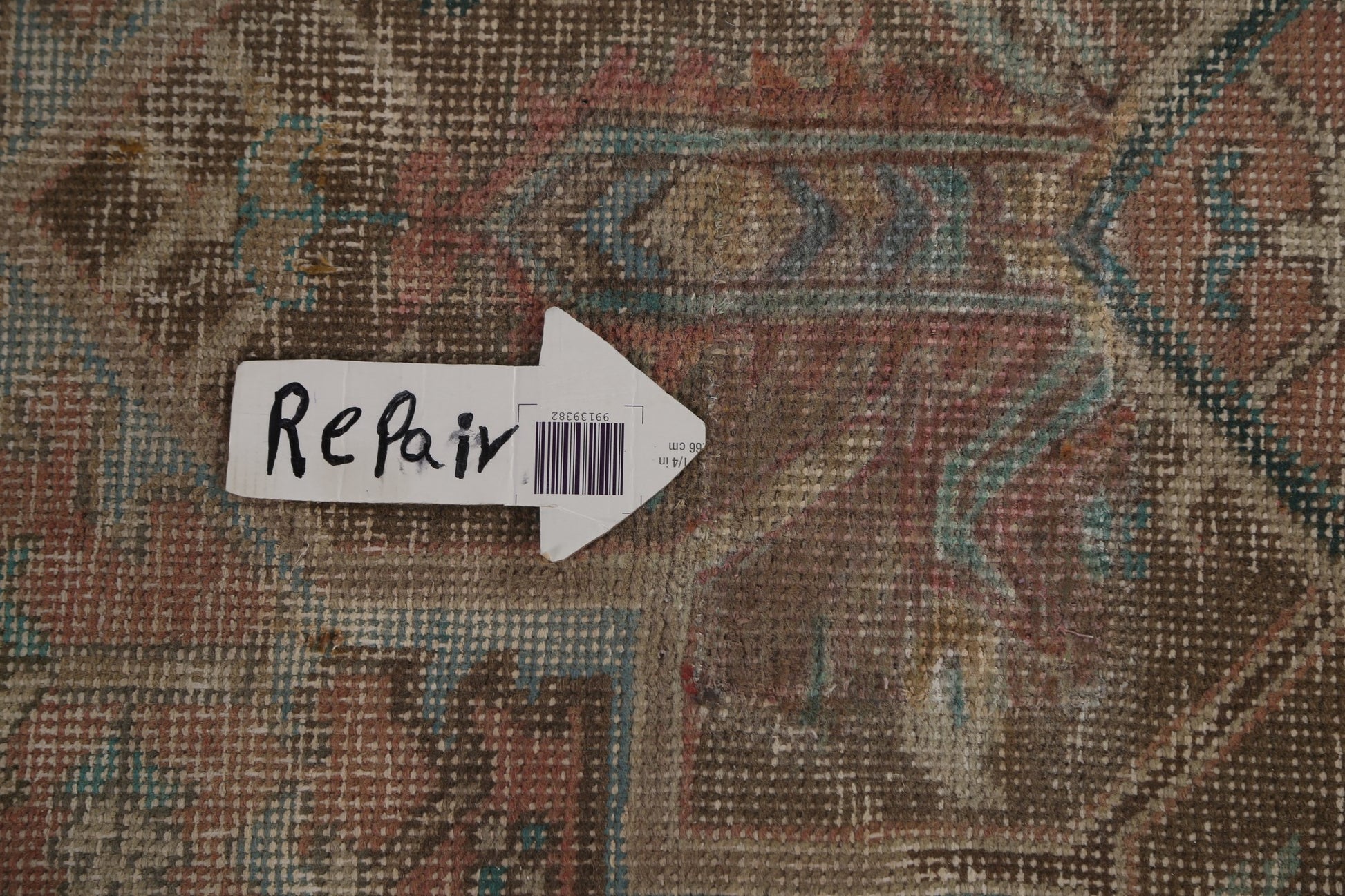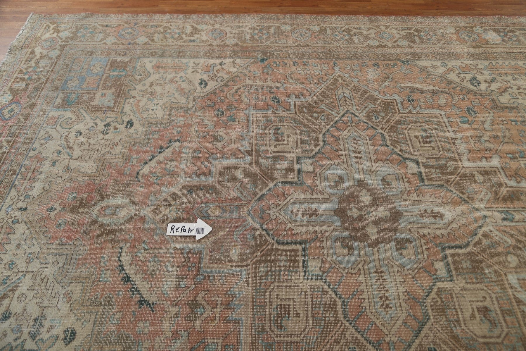 A Beautiful Genuine Persia ( Persia ) Heriz rug is Hand Knotted by skillful weavers in Persia ( Persia ) with 100% Wool Material. This rug is in Very Good (Evenly Low Pile-Repair) condition. dimensions are 12' 1'' X 9' 2'' in foot and 368 X 279 in centimeter. the primary color is Coral.