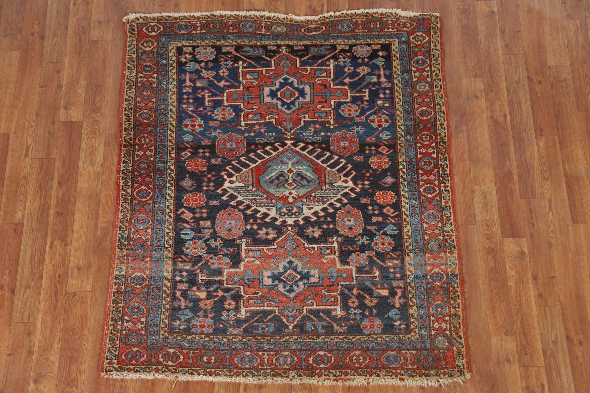Antique Vegetable Dye Heriz Serapi Persian Accent Rug 4x5