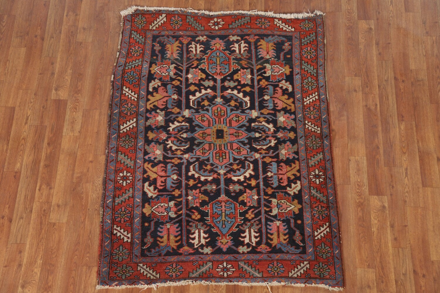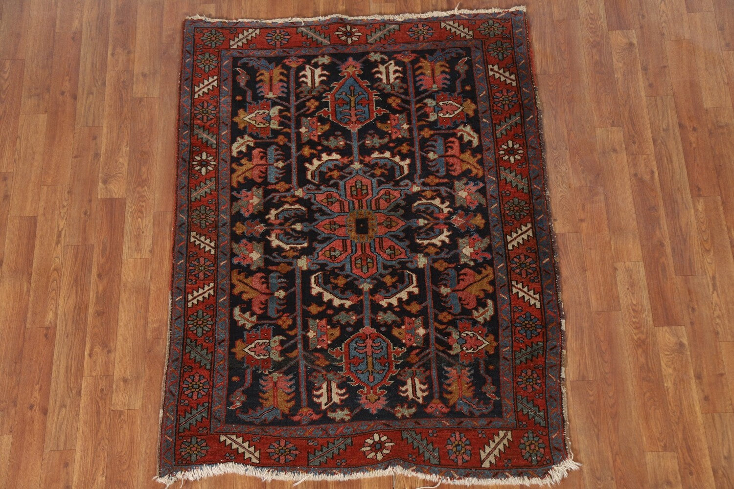 Antique Vegetable Dye Heriz Serapi Persian Accent Rug 4x5