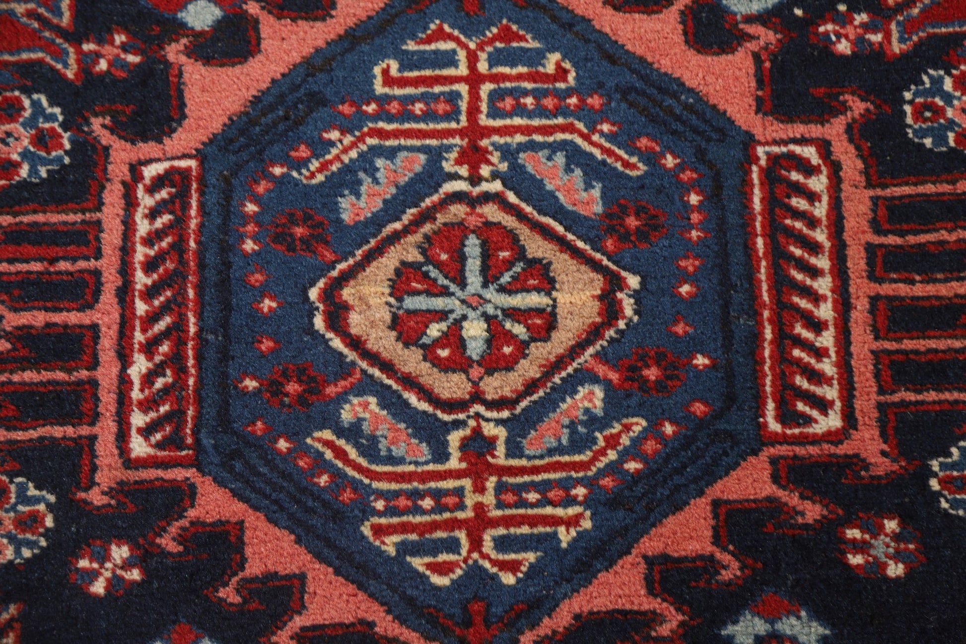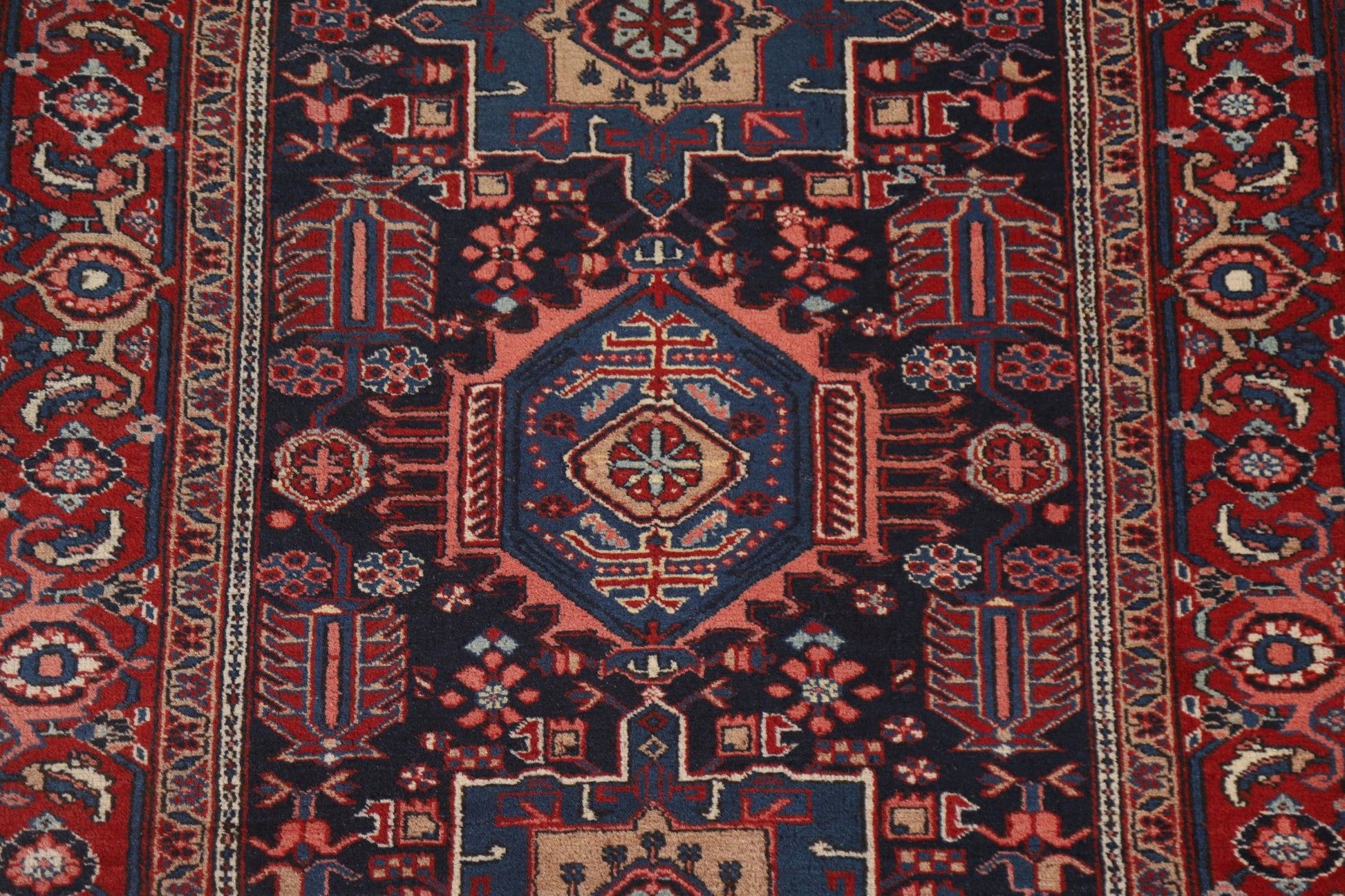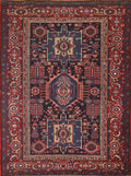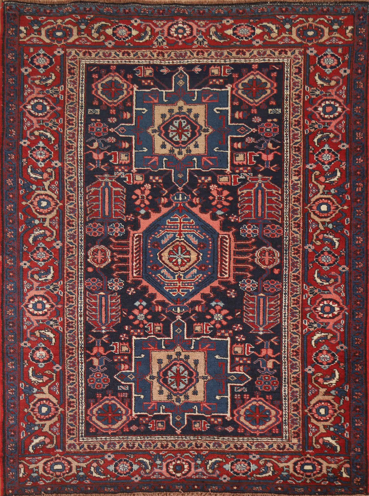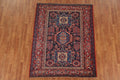 A Beautiful Genuine Persia ( Persia ) Heriz (serapi) rug is Hand Knotted by skillful weavers in Persia ( Persia ) with 100% Wool Material. This rug is in Very Good condition. dimensions are 6' 4'' X 4' 11'' in foot and 193 X 150 in centimeter. the primary color is Navy Blue & Blues.