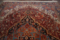 A Beautiful Genuine Persia ( Persia ) Heriz (serapi) rug is Hand Knotted by skillful weavers in Persia ( Persia ) with 100% Wool Material. This rug is in Very Good ( Low Pile ) condition. dimensions are 15' 10'' X 11' 7'' in foot and 483 X 353 in centimeter. the primary color is Red.