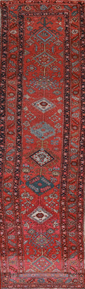 Antique Vegetable Dye Heriz Serapi Persian Runner Rug 3x12