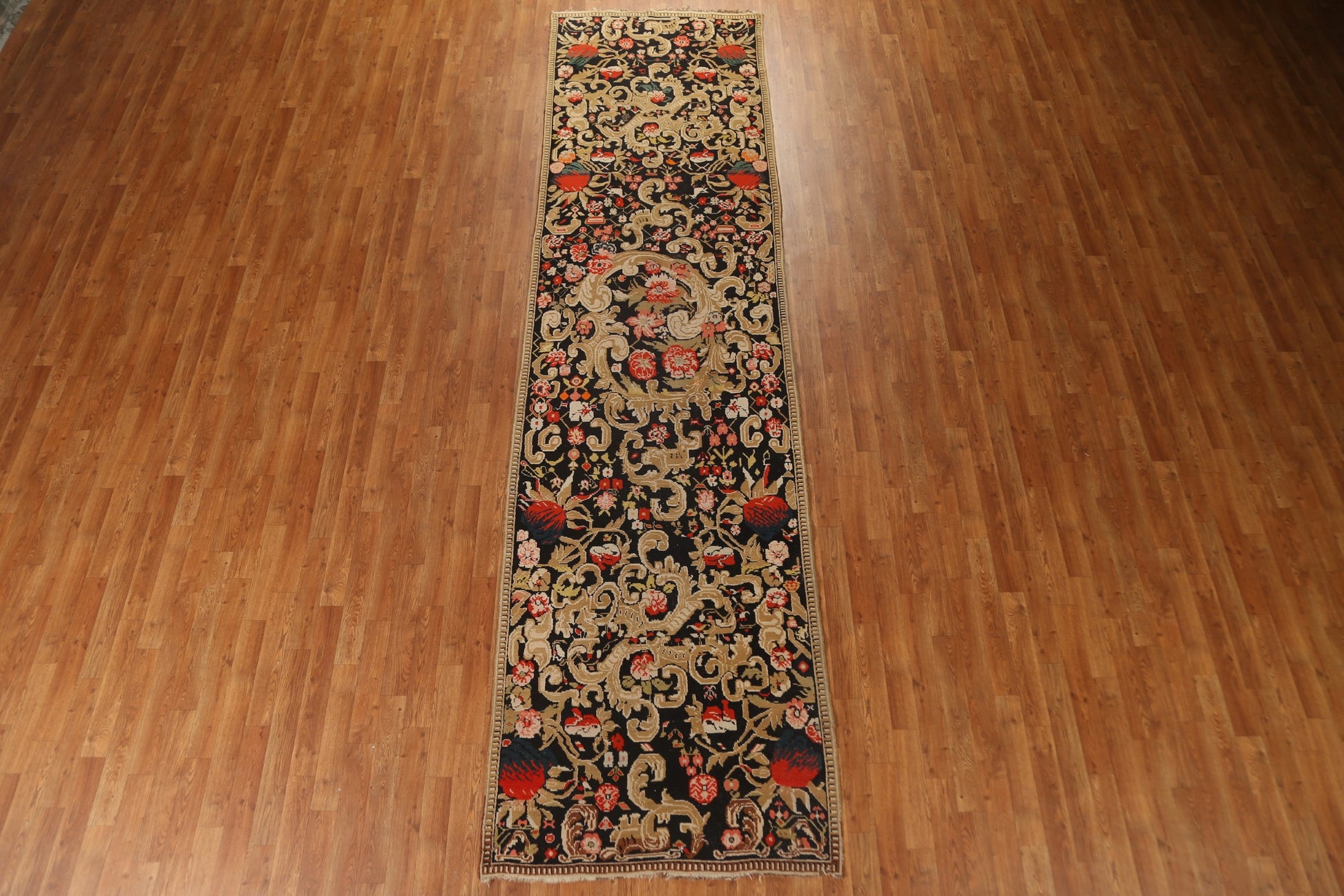 A Beautiful Genuine Russia Karabagh rug is Hand Knotted by skillful weavers in Russia with 100% Wool Material. This rug is in Very Good condition. dimensions are 13' 3'' X 3' 5'' in foot and 404 X 104 in centimeter. the primary color is Black.