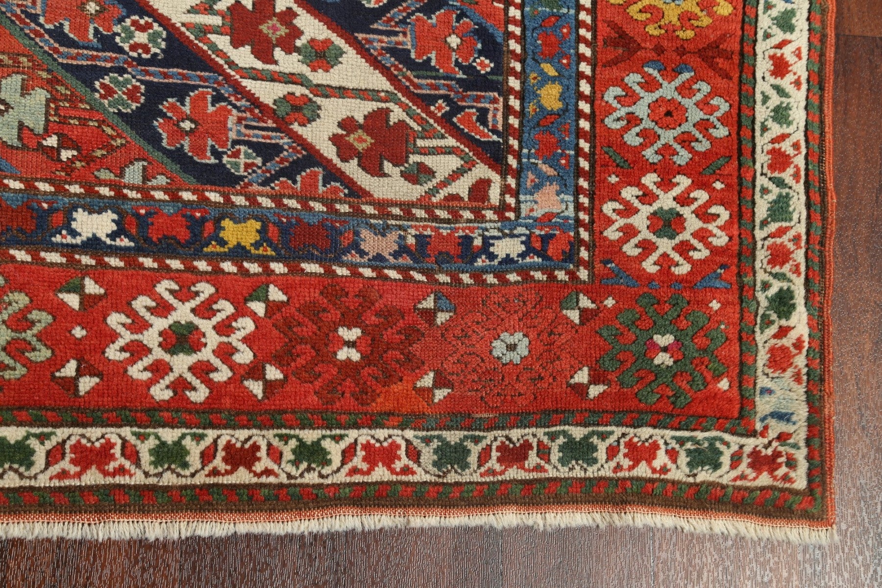 A Beautiful Genuine Russia Kazak rug is Hand Knotted by skillful weavers in Russia with 100% Wool Material. This rug is in Very Good ( Low Pile ) condition. dimensions are 7' 6'' X 4' 0'' in foot and 229 X 122 in centimeter. the primary color is Navy Blue & Blues.
