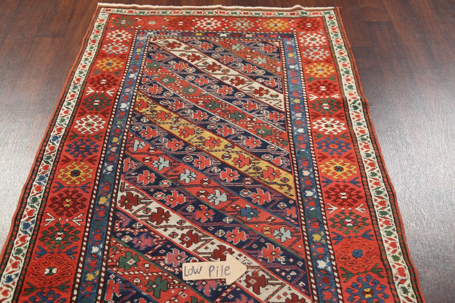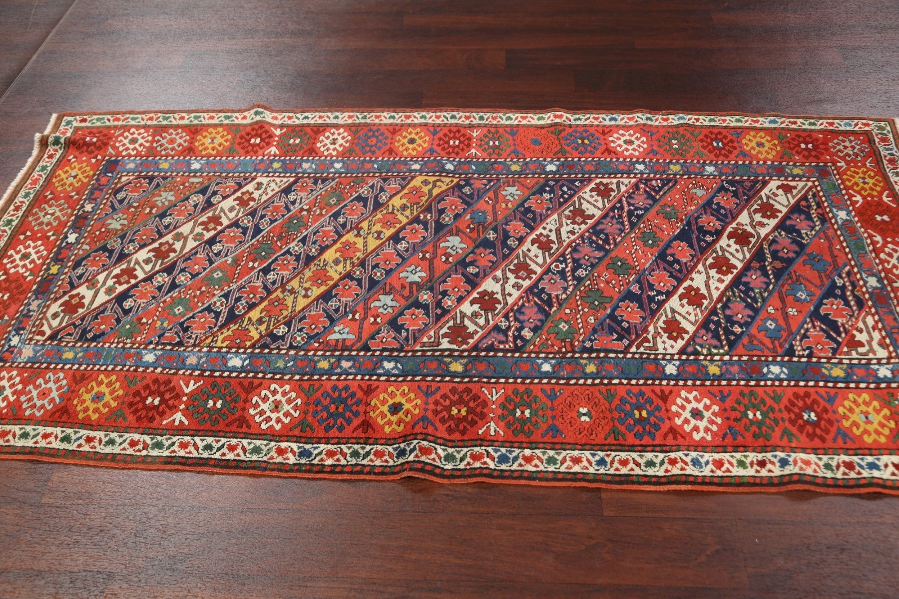 Antique Vegetable Dye Kazak Oriental Area Rug 4x8