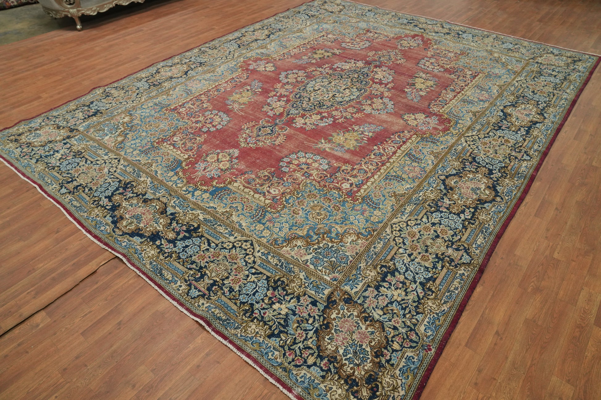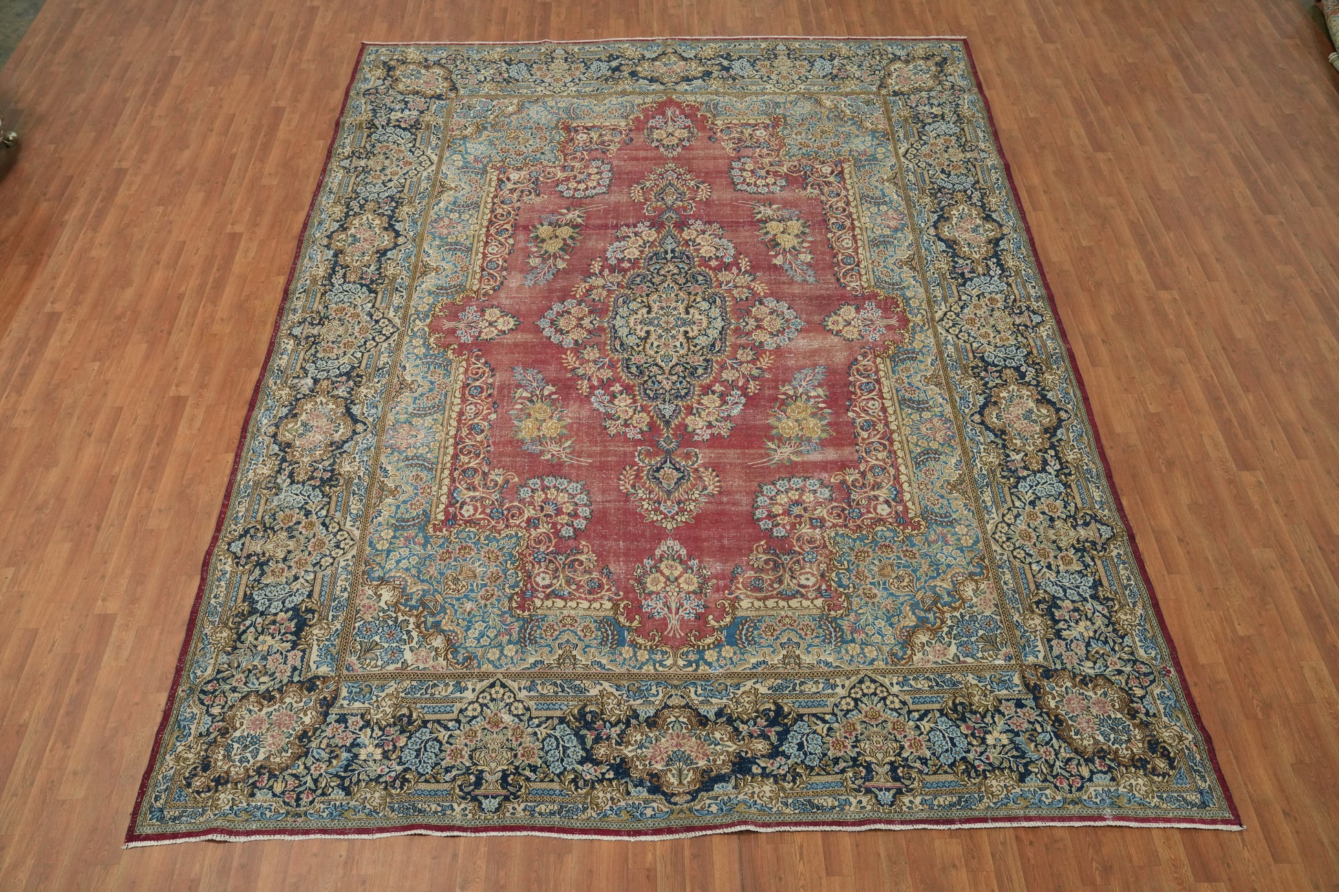 Antique Vegetable Dye Kerman Persian Large Rug 11x14