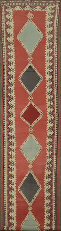 Antique Vegetable Dye Kilim Qashqai Persian Runner Rug 3x19