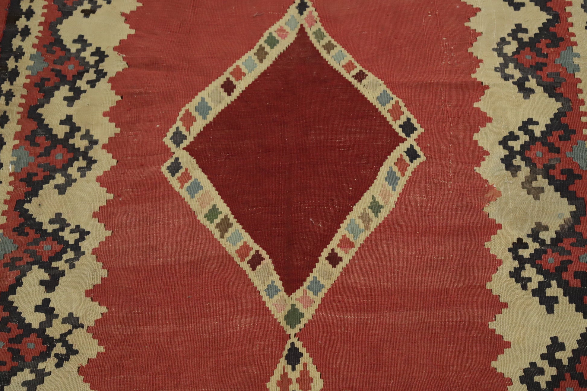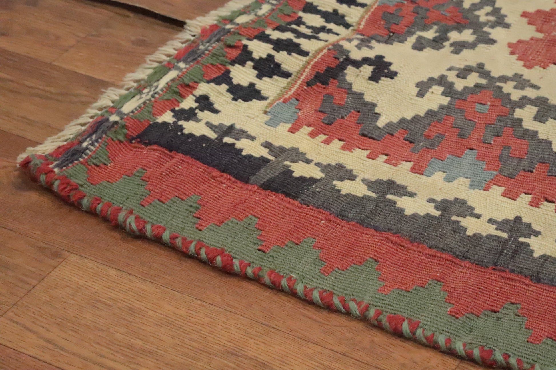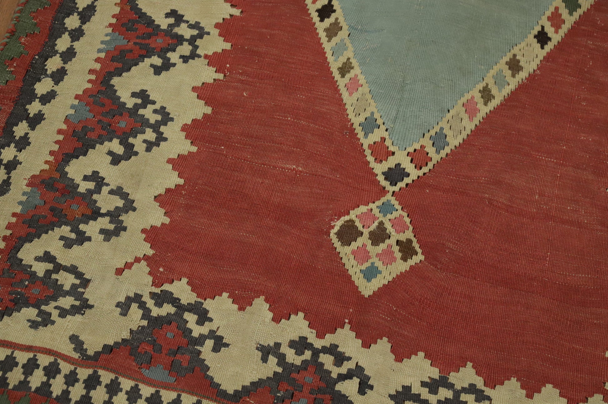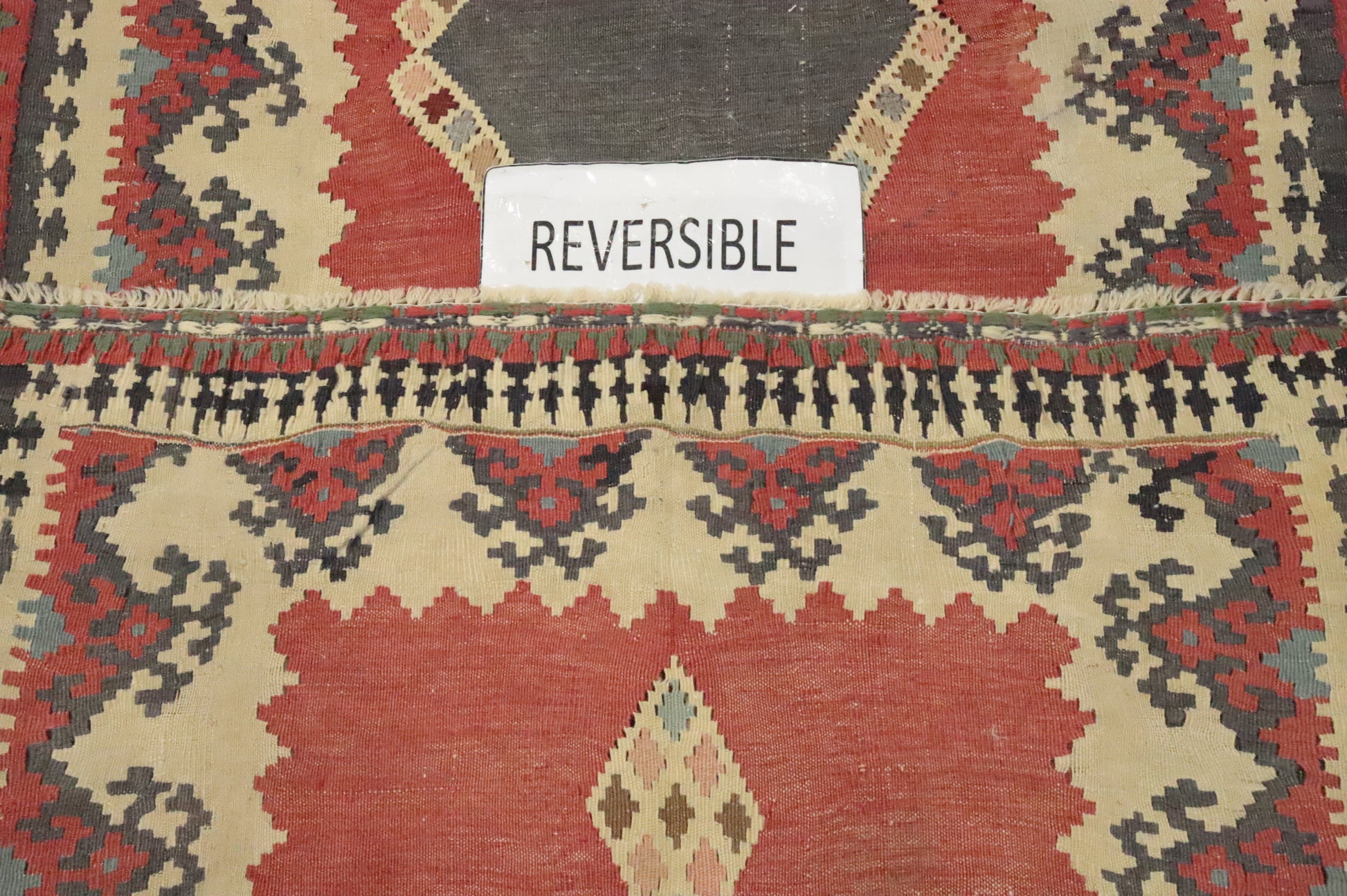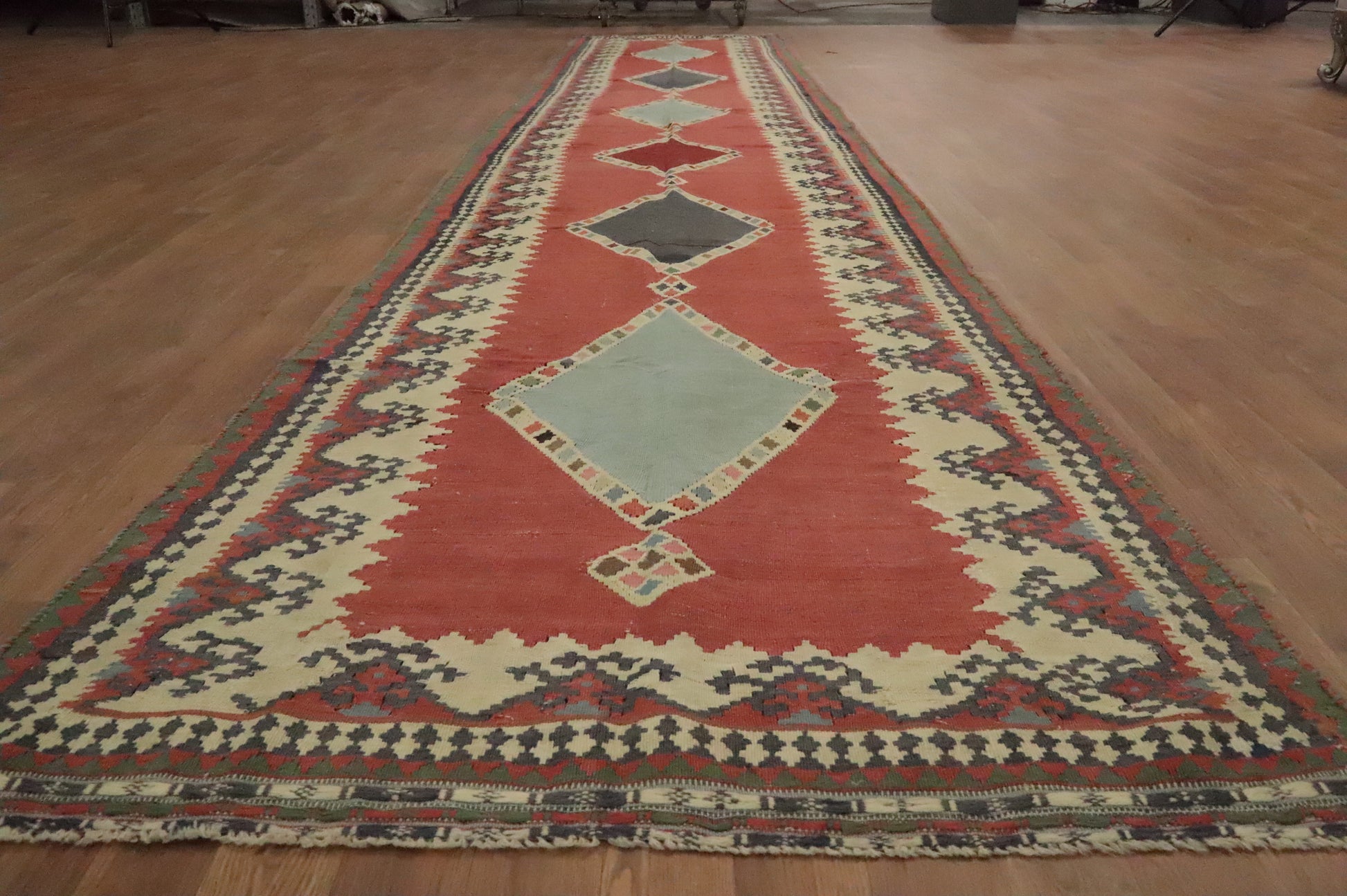 A Beautiful Genuine Persia ( Persia ) Kilim (Qashqai) rug is Hand Woven by skillful weavers in Persia ( Persia ) with 100% Wool Material. This rug is in Very Good (Low Pile- Abrash- Stain) condition. dimensions are 18' 10'' X 3' 5'' in foot and  574 X 104 in centimeter. the primary color is Oranges & Rust.