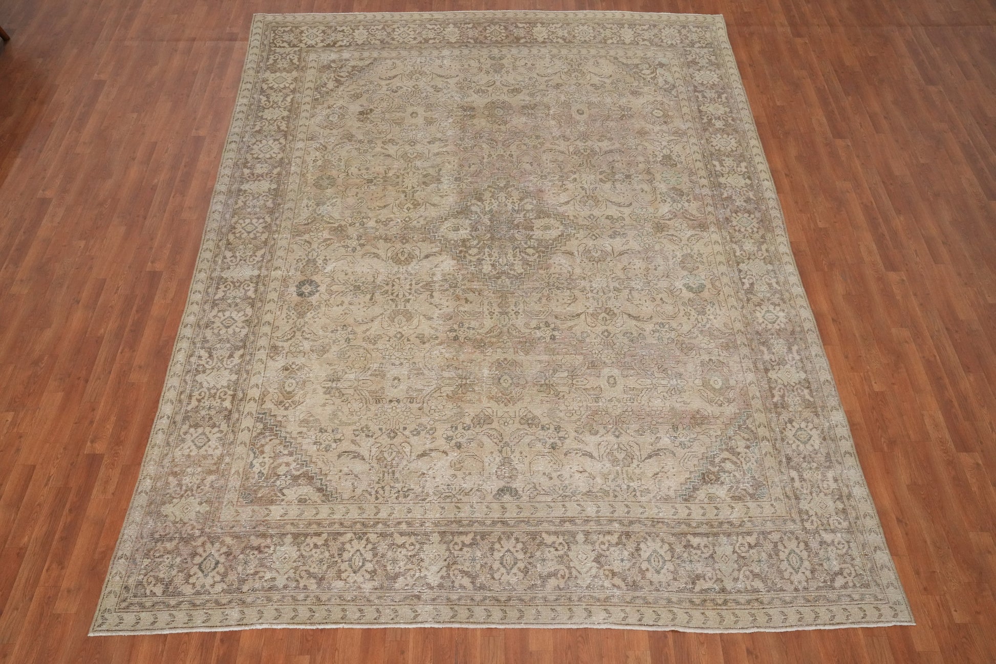 A Beautiful Genuine Persia ( Persia ) Mahal rug is Hand Knotted by skillful weavers in Persia ( Persia ) with 100% Wool Material. This rug is in Very Good ( Low Pile ) condition. dimensions are 13' 1'' X 9' 4'' in foot and 399 X 284 in centimeter. the primary color is Beige & Ivories.