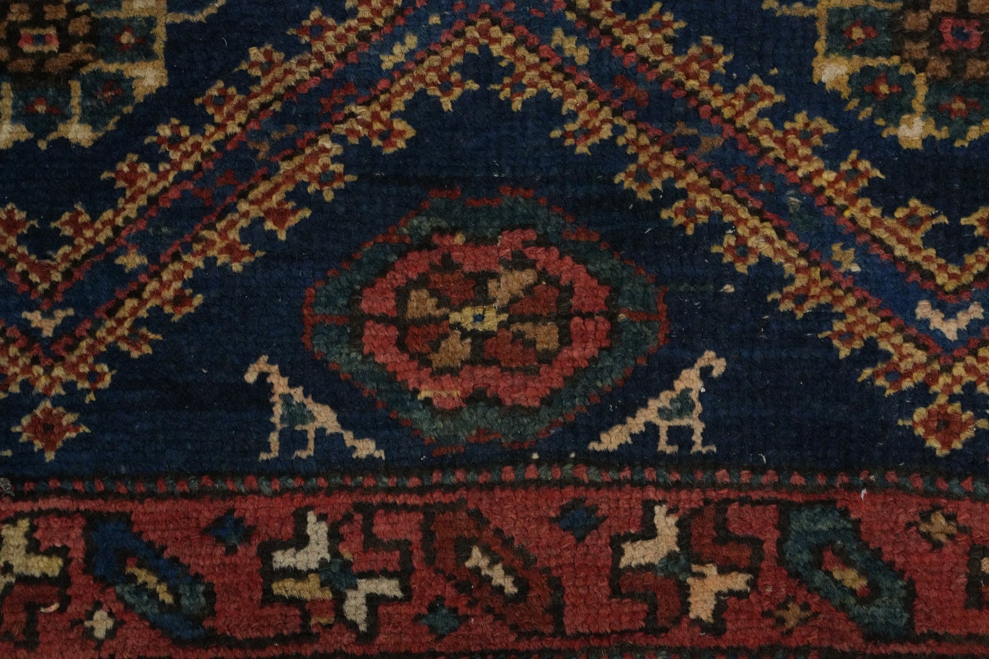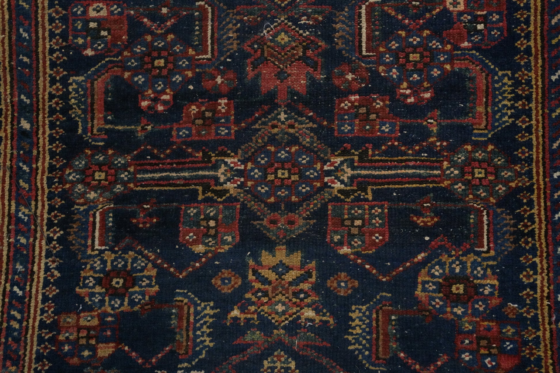 A Beautiful Genuine Persia ( Persia ) Mahal rug is Hand Knotted by skillful weavers in Persia ( Persia ) with 100% Wool Material. This rug is in Very Good ( Low Pile ) condition. dimensions are 6' 5'' X 3' 6'' in foot and 196 X 107 in centimeter. the primary color is Navy Blue & Blues.