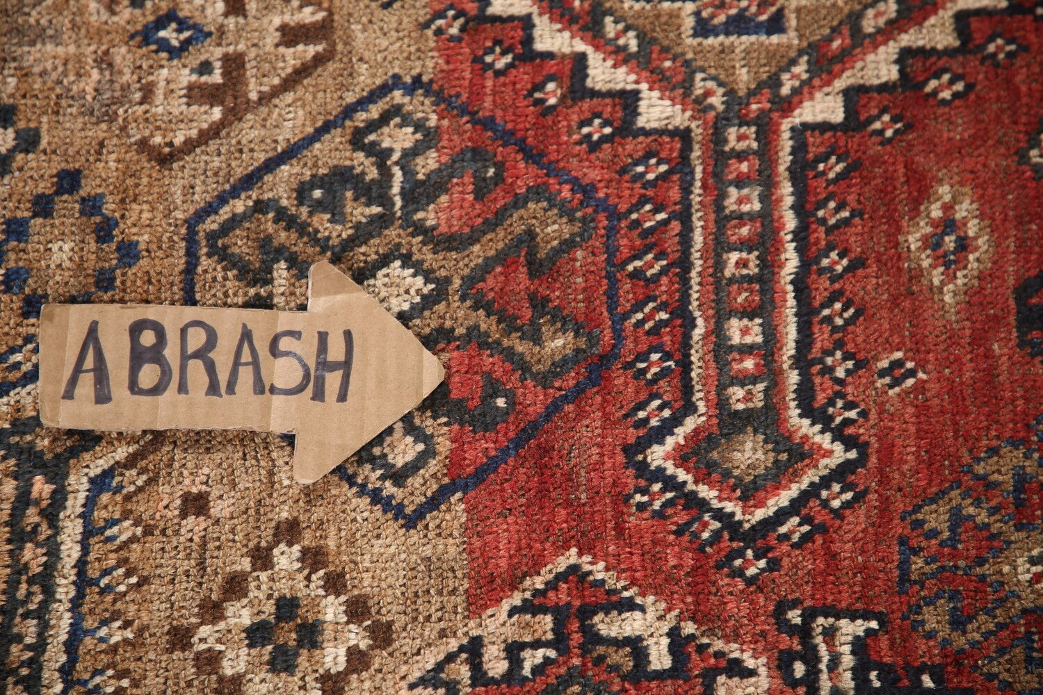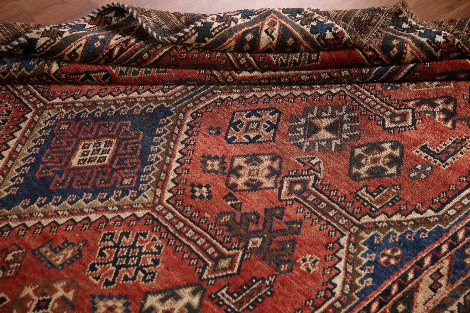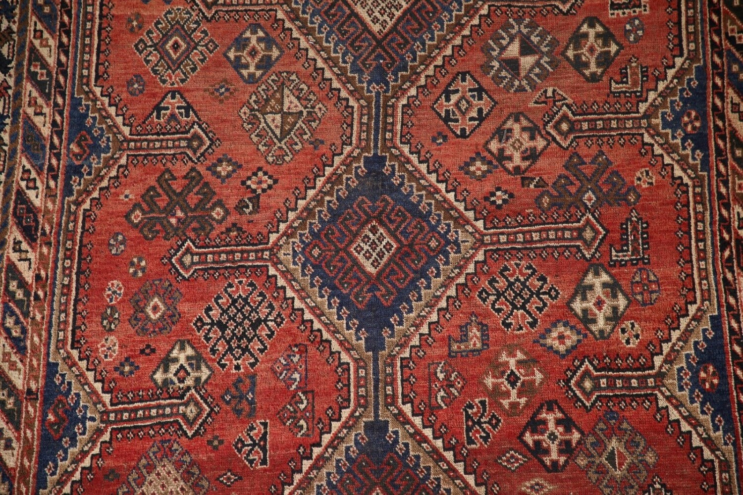 A Beautiful Genuine Persia ( Persia ) Qashqai rug is Hand Knotted by skillful weavers in Persia ( Persia ) with 100% Wool Material. This rug is in Very Good (Low Pile-Abrash-Repair) condition. dimensions are 7' 5'' X 5' 0'' in foot and 226 X 152 in centimeter. the primary color is Red.
