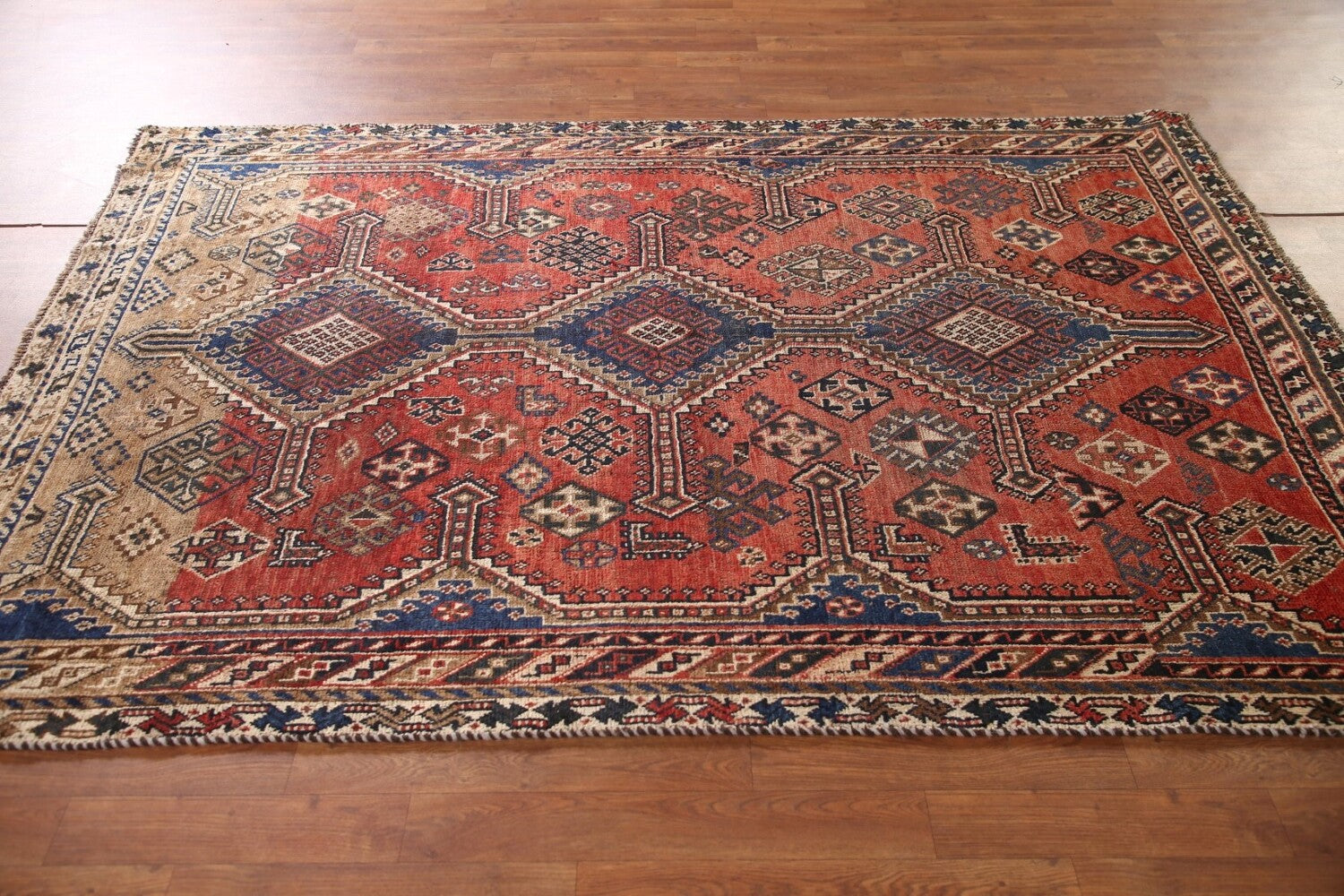 Antique Vegetable Dye Qashqai Persian Rug 5x7