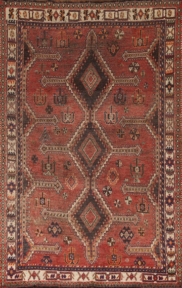 Antique Vegetable Dye Qashqai Persian Rug 5x7