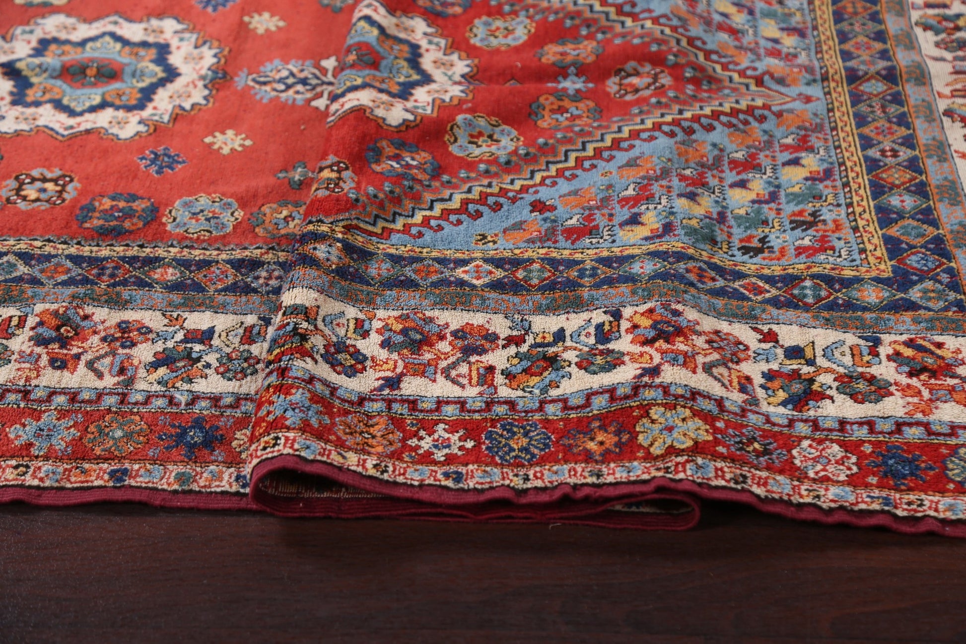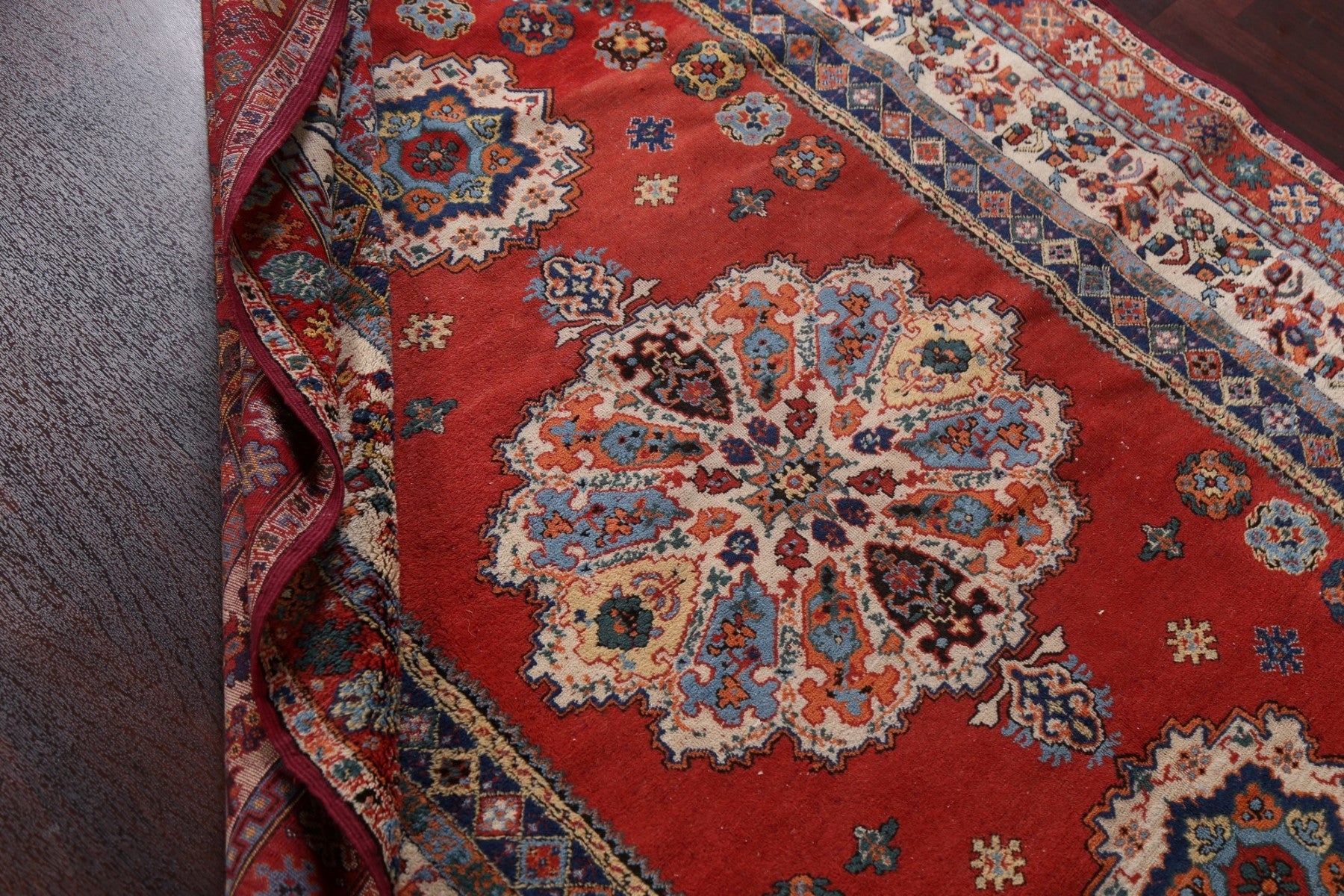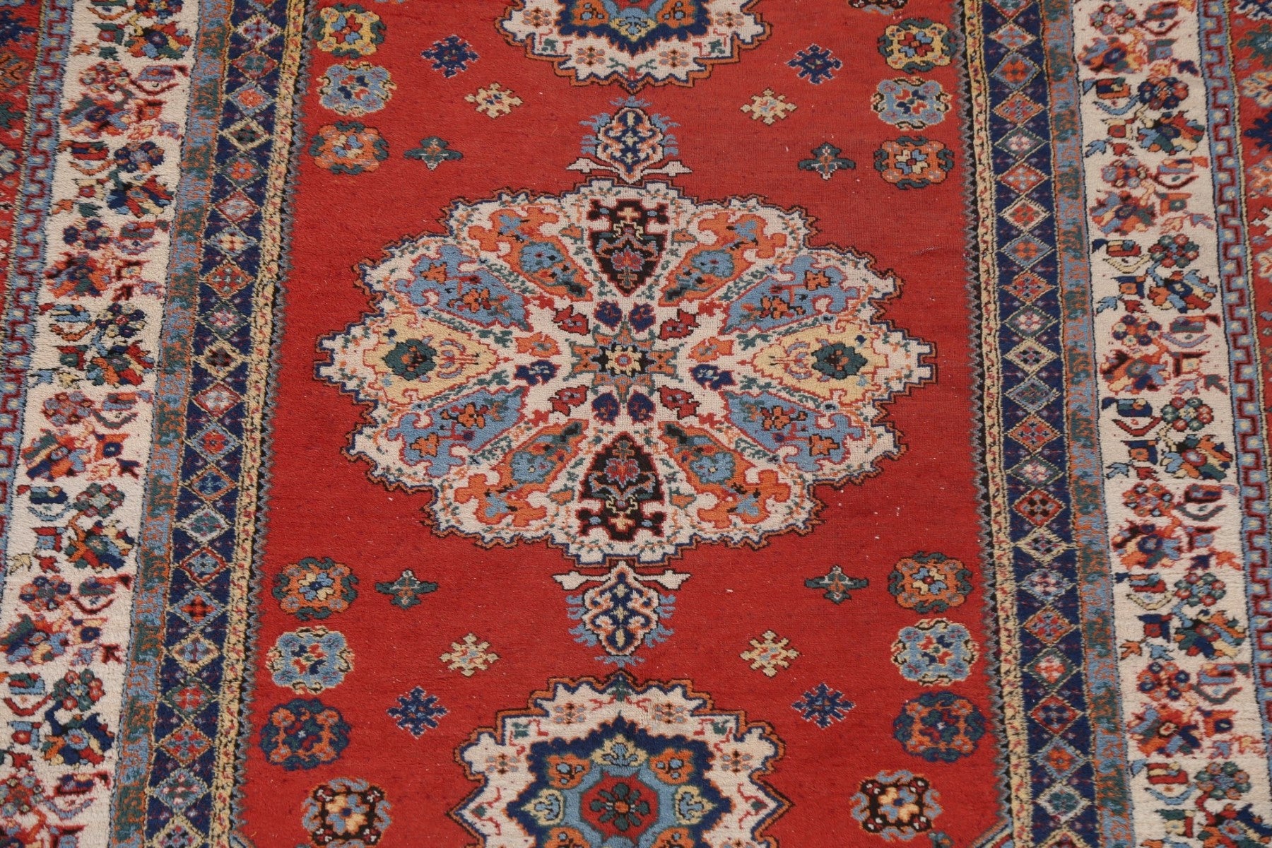 A Beautiful Genuine Persia ( Persia ) Sarouk (Farahan) rug is Hand Knotted by skillful weavers in Persia ( Persia ) with 100% Wool Material. This rug is in Very Good (Abrash-Repair) condition. dimensions are 9' 4'' X 4' 11'' in foot and 284 X 150 in centimeter. the primary color is Red.