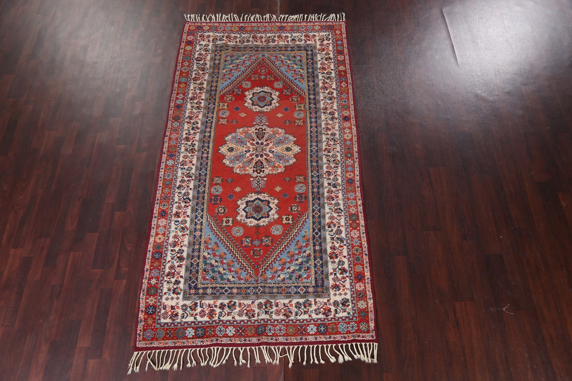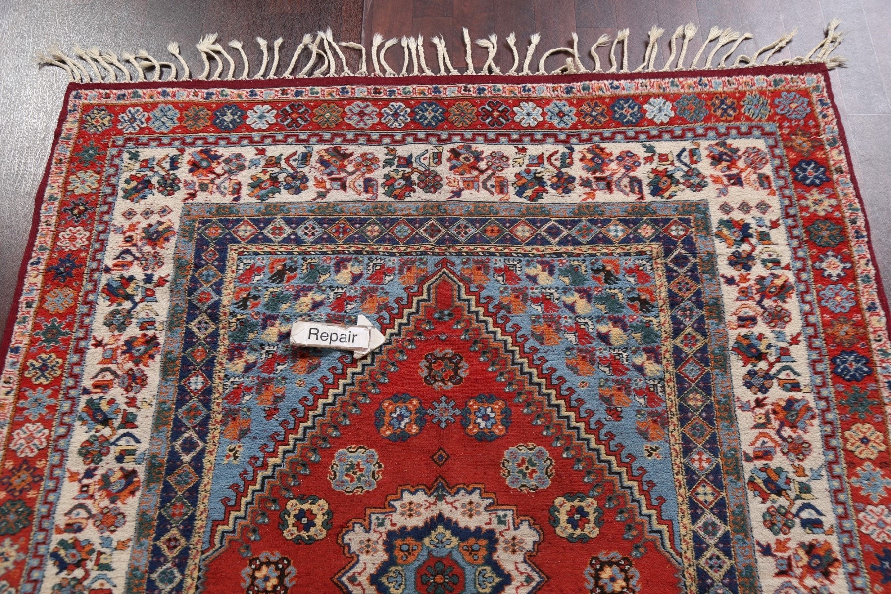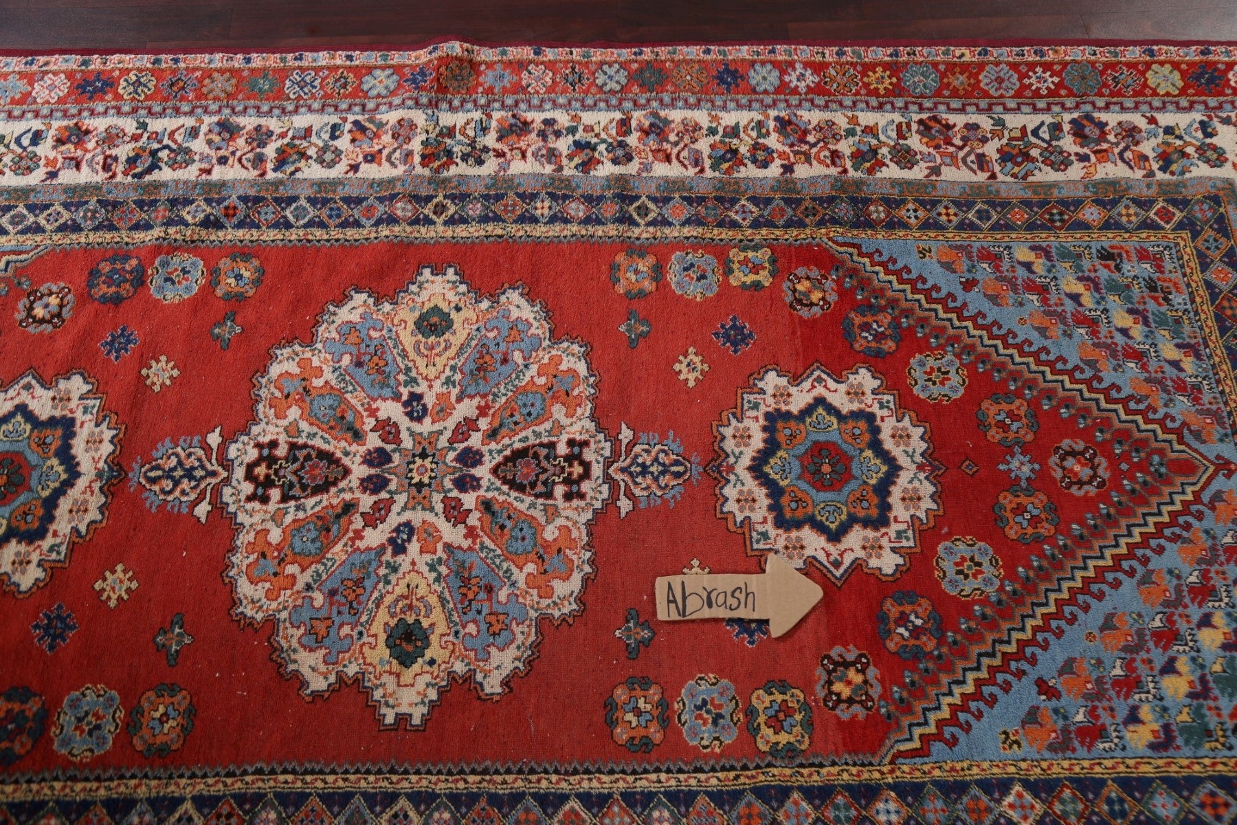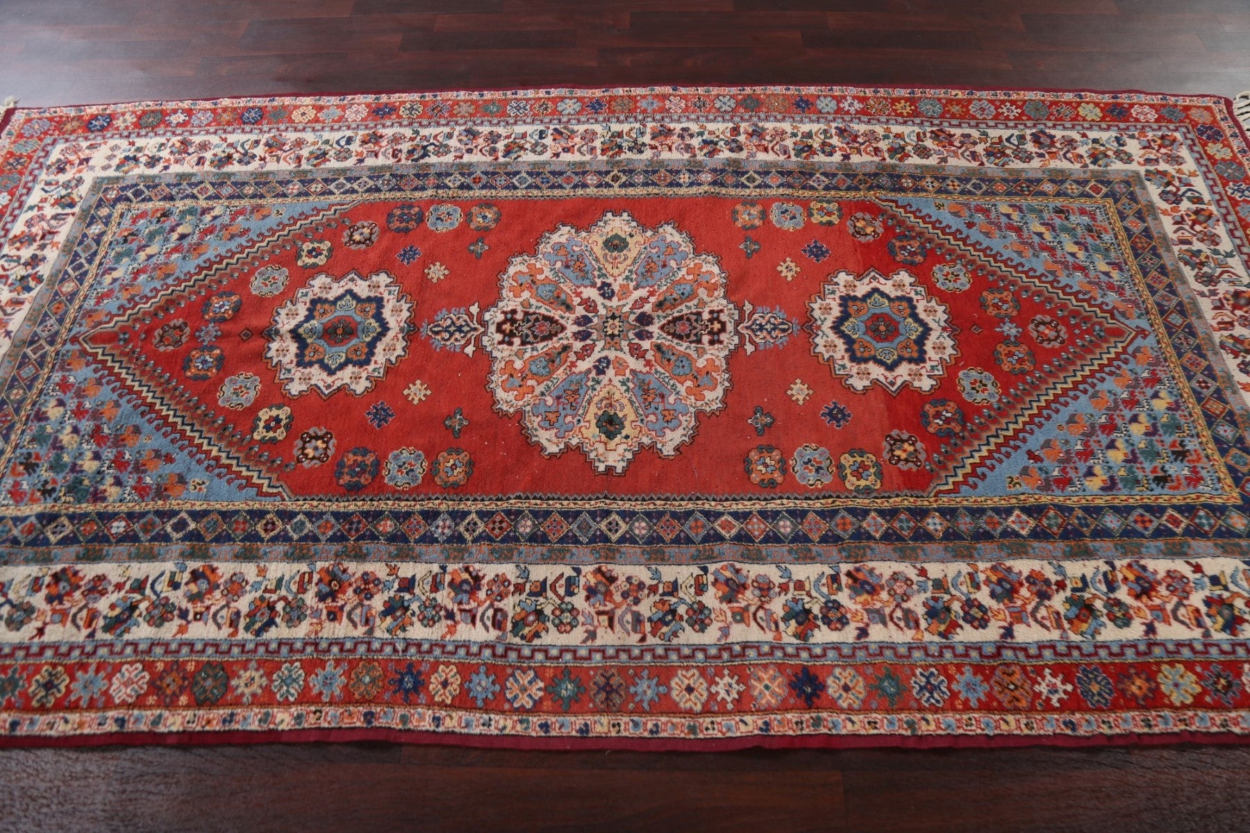 A Beautiful Genuine Persia ( Persia ) Sarouk (Farahan) rug is Hand Knotted by skillful weavers in Persia ( Persia ) with 100% Wool Material. This rug is in Very Good (Abrash-Repair) condition. dimensions are 9' 4'' X 4' 11'' in foot and 284 X 150 in centimeter. the primary color is Red.