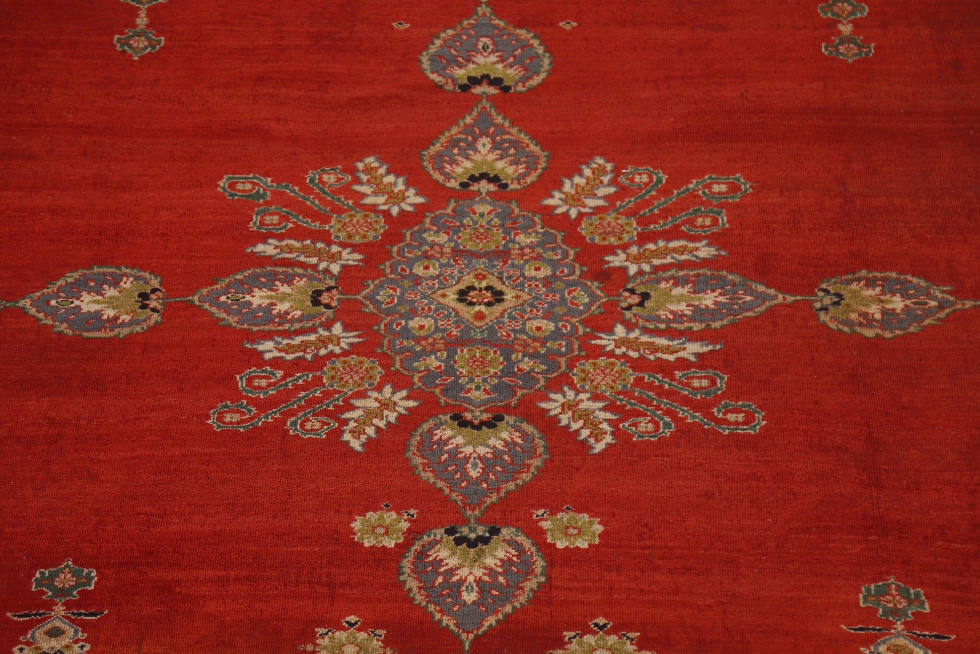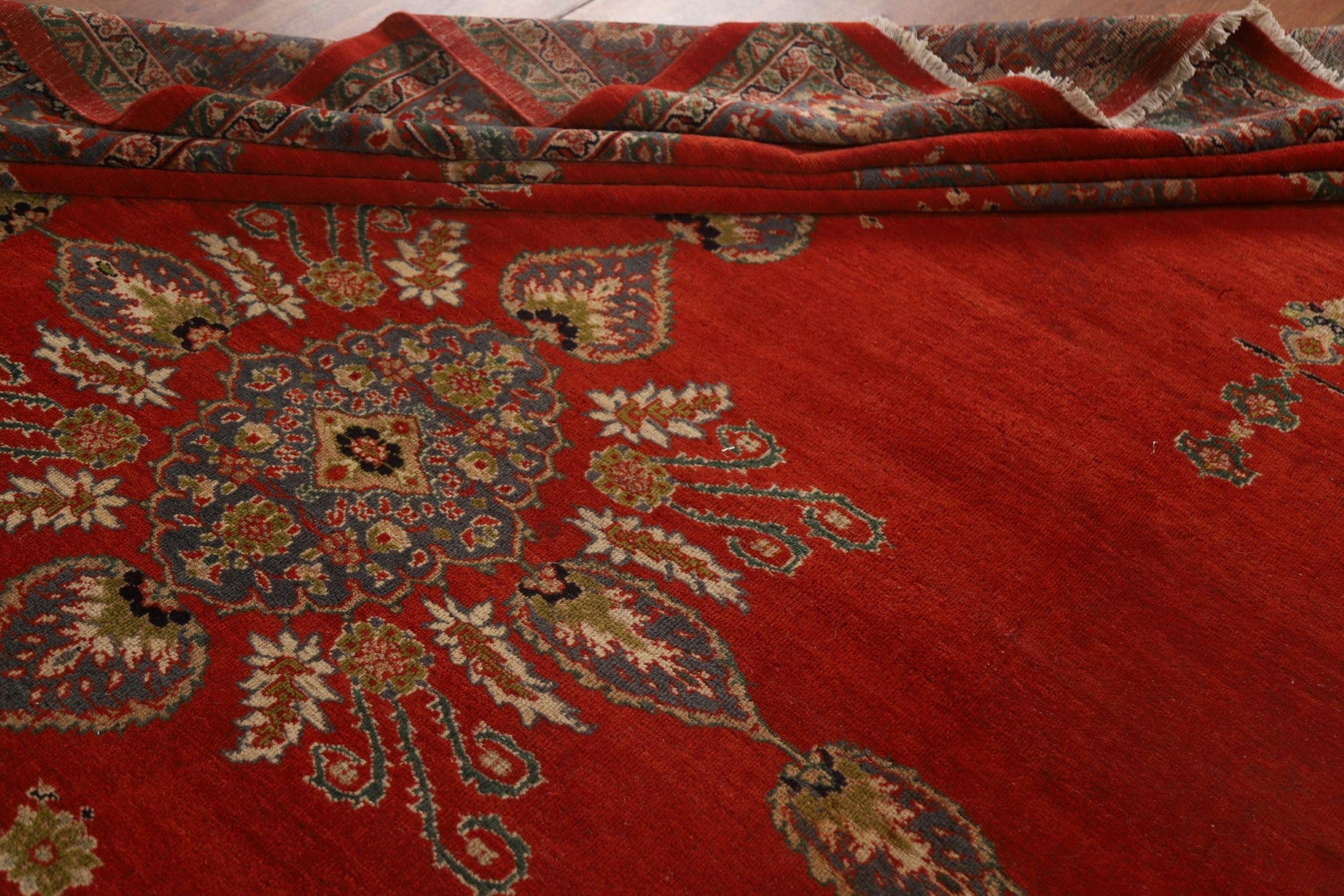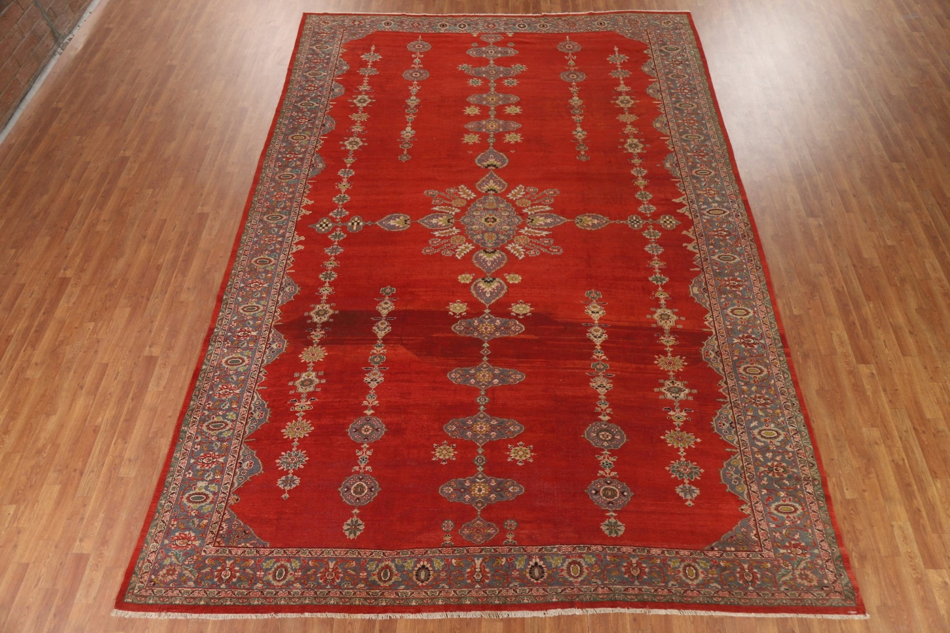 A Beautiful Genuine Persia ( Persia ) Sarouk (Farahan) rug is Hand Knotted by skillful weavers in Persia ( Persia ) with 100% Wool Material. This rug is in Very Good (Low Pile-Abrash) condition. dimensions are 14' 1'' X 9' 9'' in foot and 429 X 297 in centimeter. the primary color is Red.