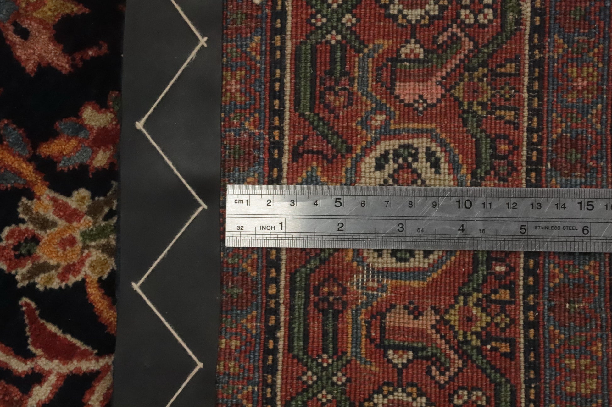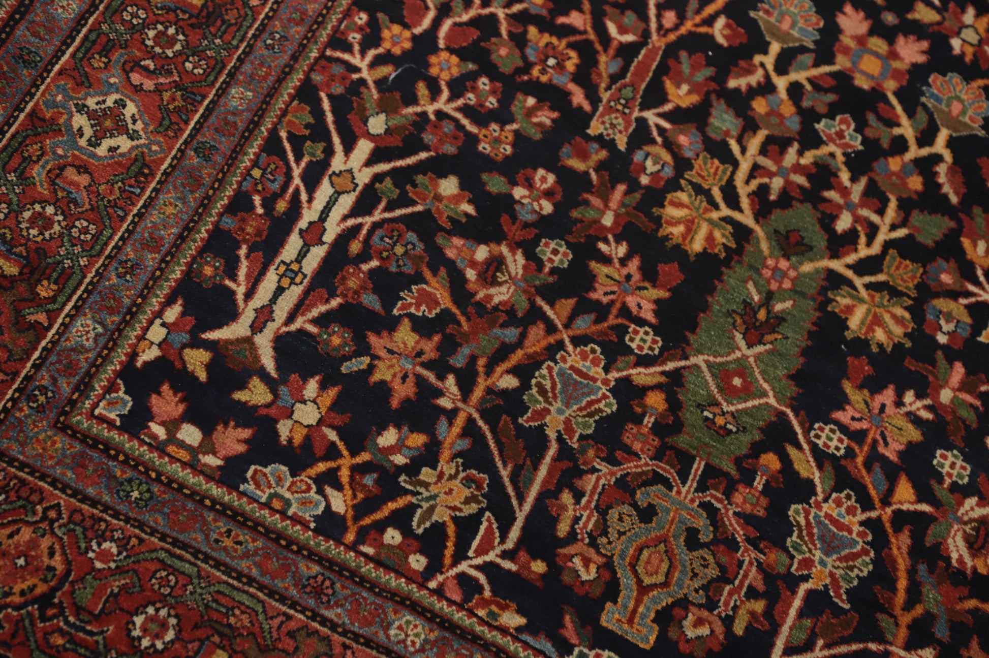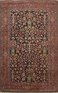 A Beautiful Genuine Persia ( Persia ) Sarouk (Farahan) rug is Hand Knotted by skillful weavers in Persia ( Persia ) with 100% Wool Material. This rug is in Very Good ( Low Pile ) condition. dimensions are 6' 7'' X 4' 2'' in foot and 201 X 127 in centimeter. the primary color is Navy Blue & Blues.