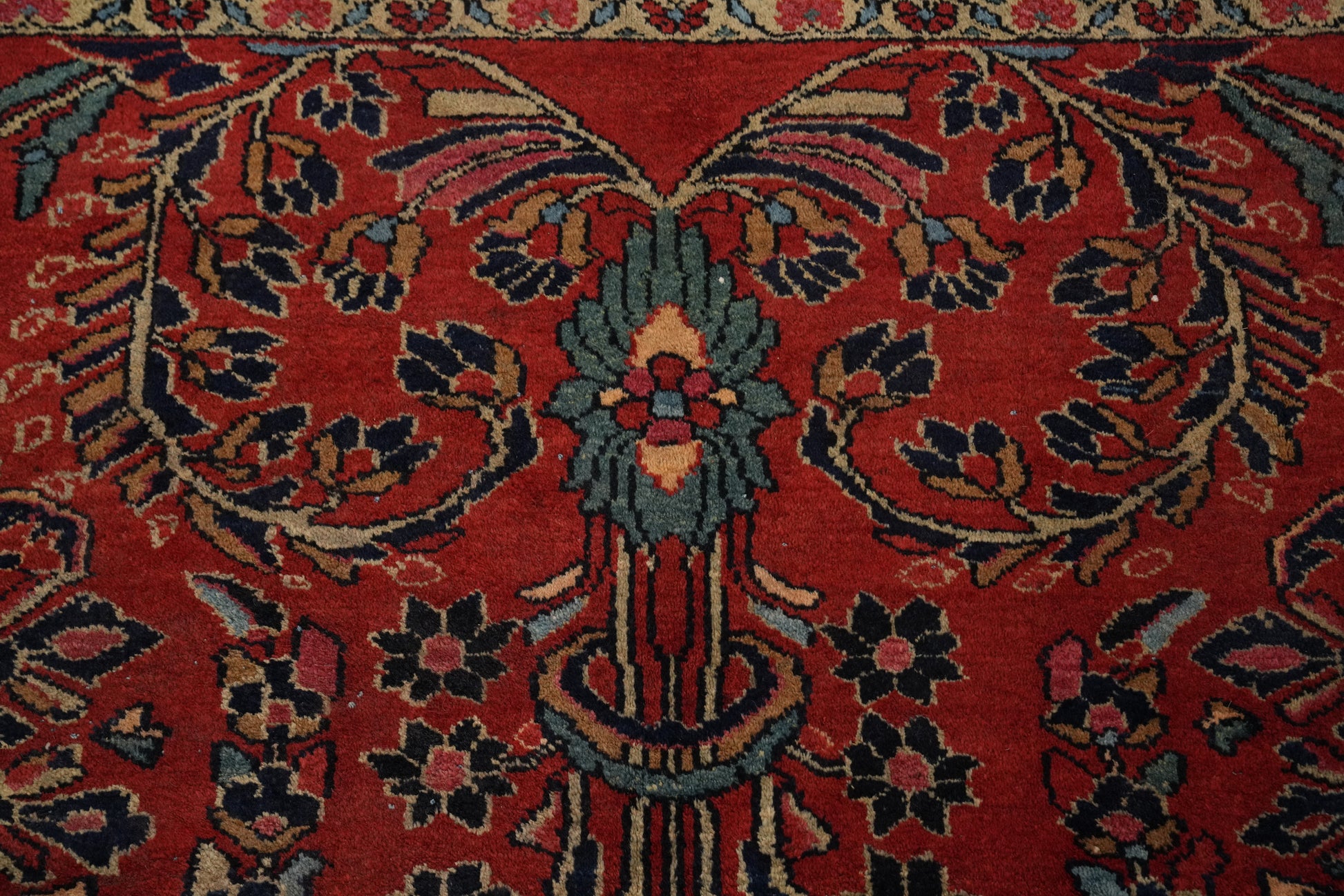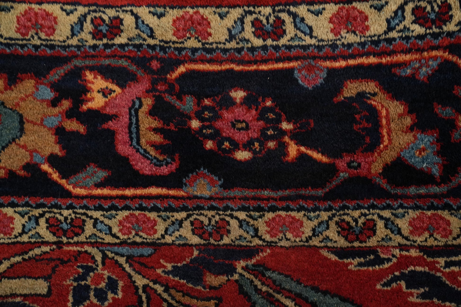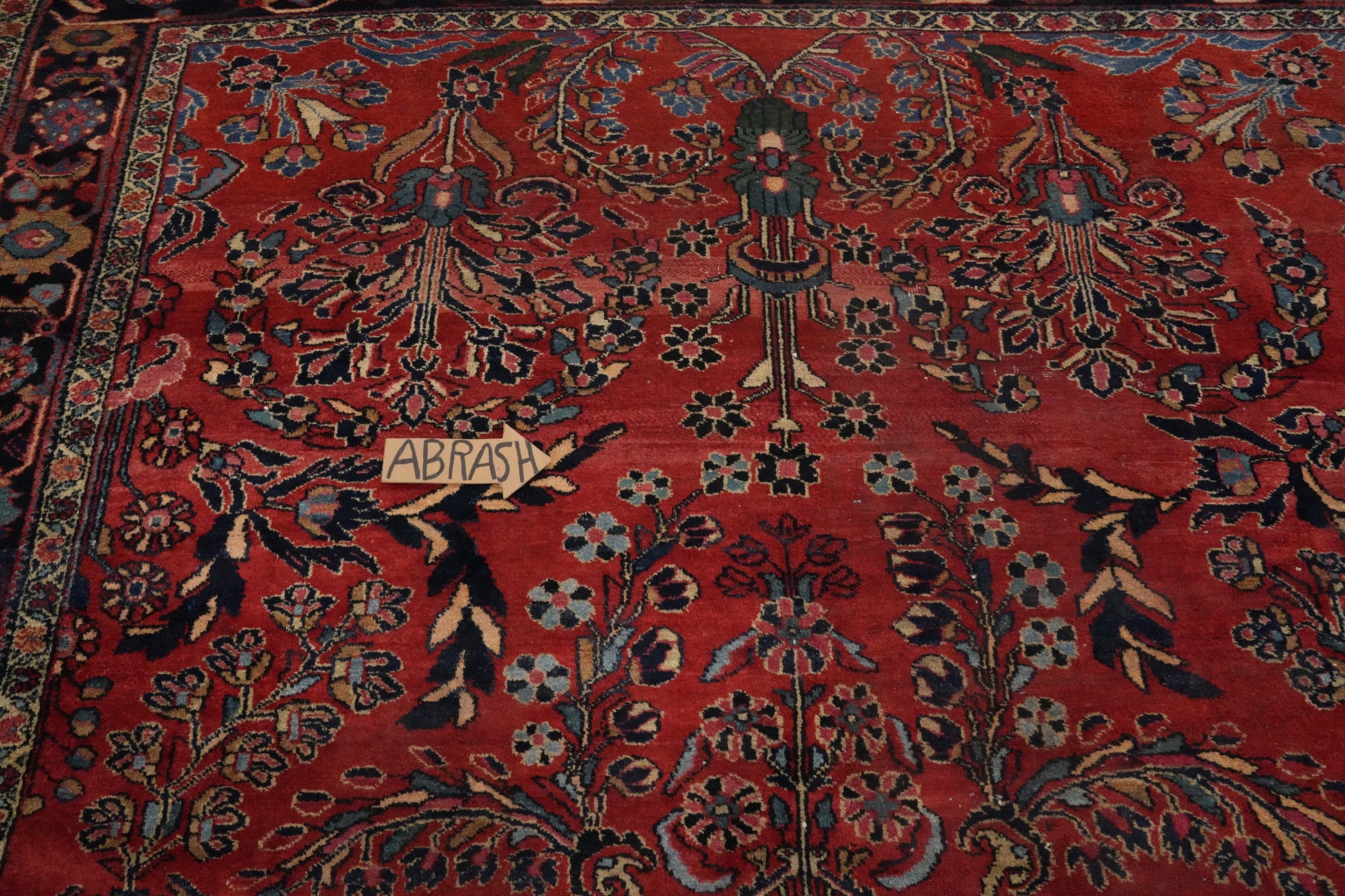 A Beautiful Genuine Persia ( Persia ) Sarouk rug is Hand Knotted by skillful weavers in Persia ( Persia ) with 100% Wool Material. This rug is in Very Good (Abrash) condition. dimensions are 12' 1'' X 8' 9'' in foot and 368 X 267 in centimeter. the primary color is Oranges & Rust.