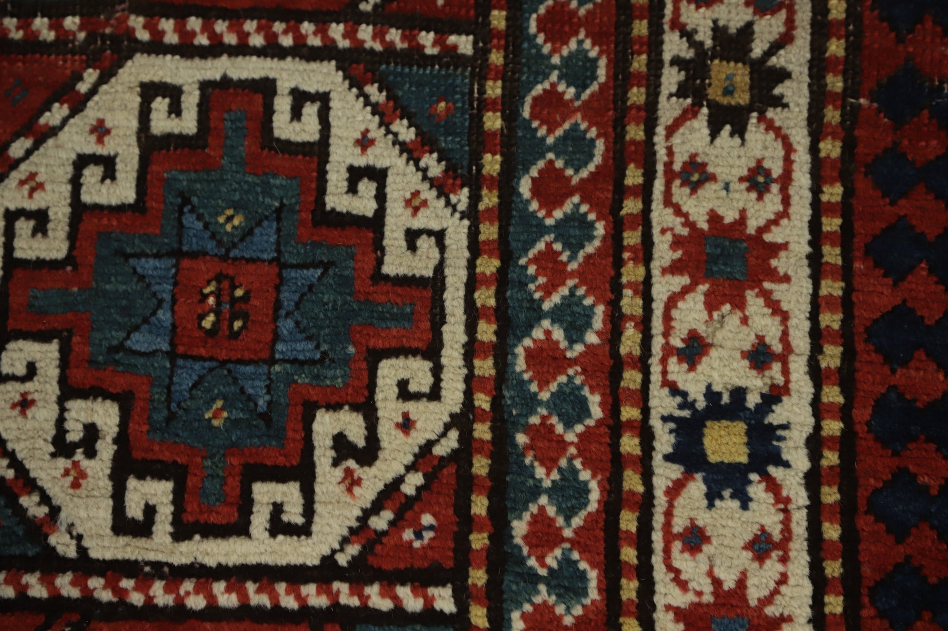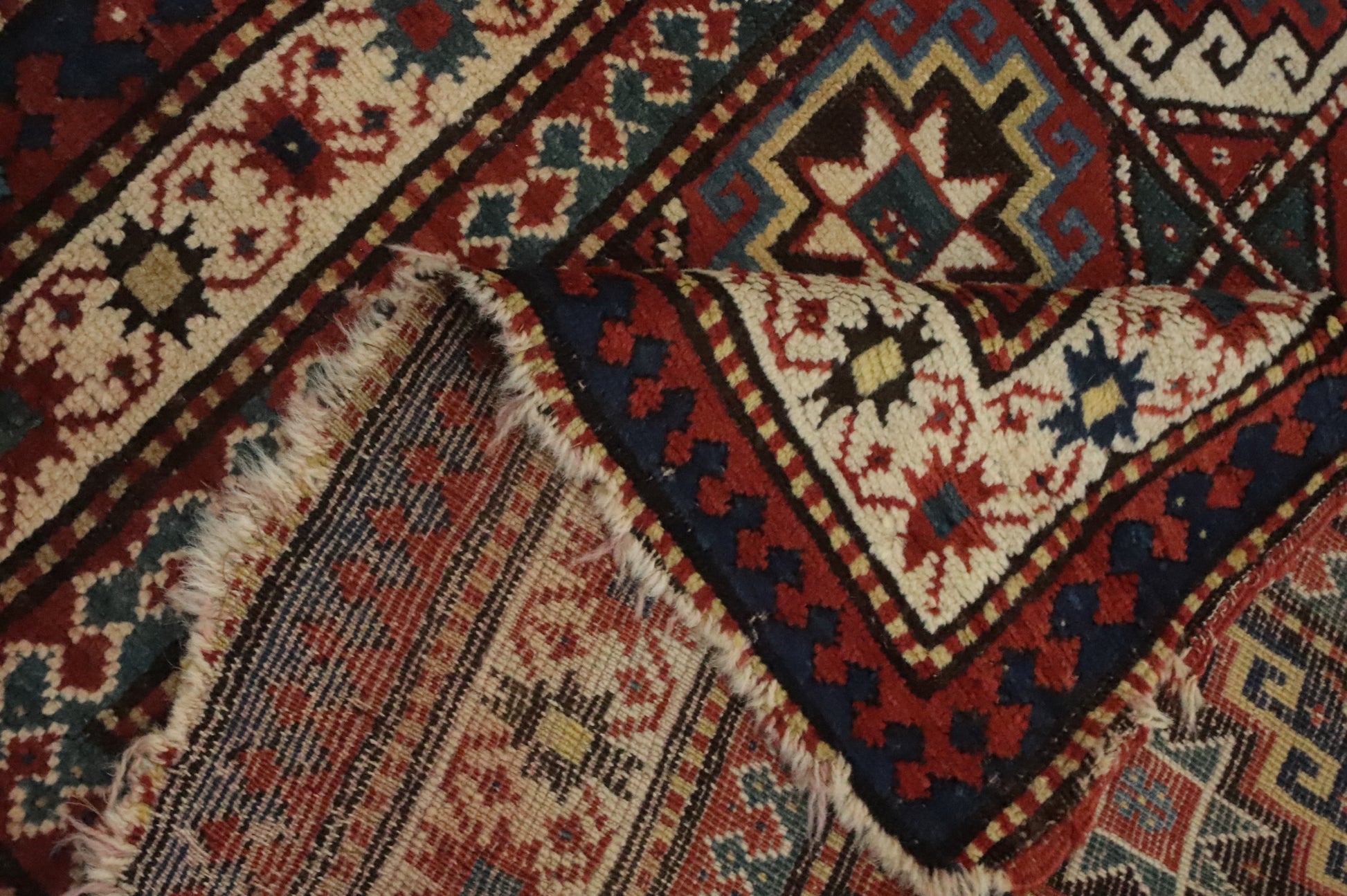A Beautiful Genuine Persia ( Persia ) Shiraz rug is Hand Knotted by skillful weavers in Persia ( Persia ) with 100% Wool Material. This rug is in Very Good (Low Pile-Missing Border) condition. dimensions are 8' 1'' X 3' 10'' in foot and 246 X 117 in centimeter. the primary color is Red.