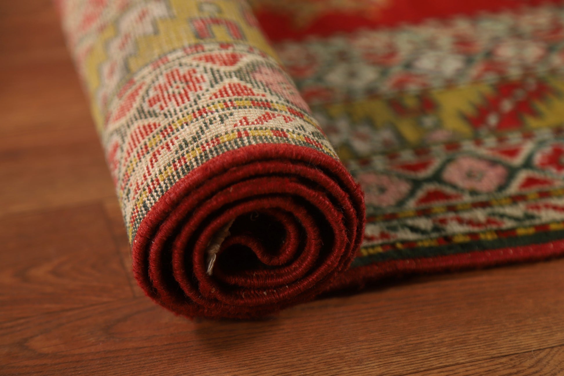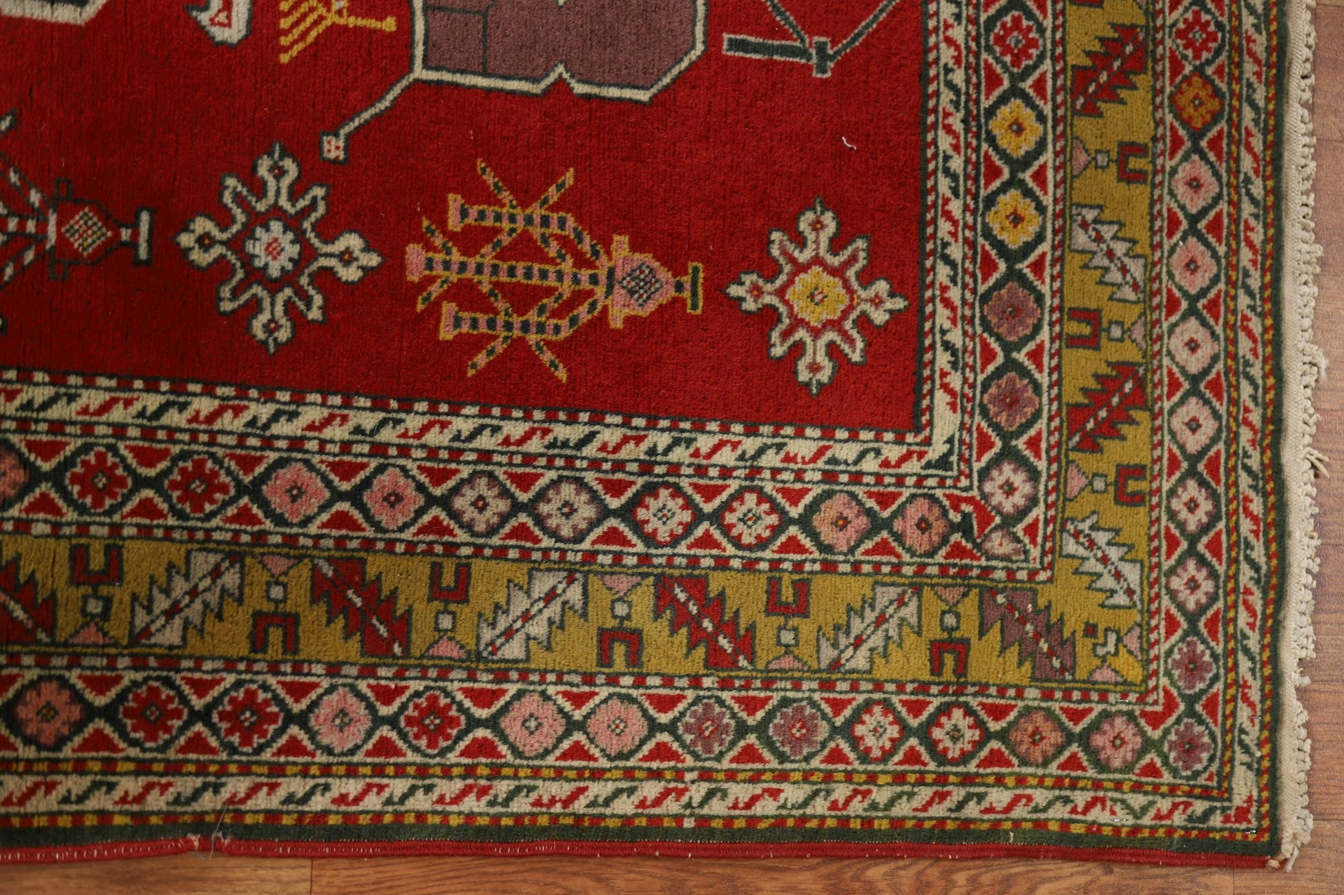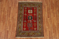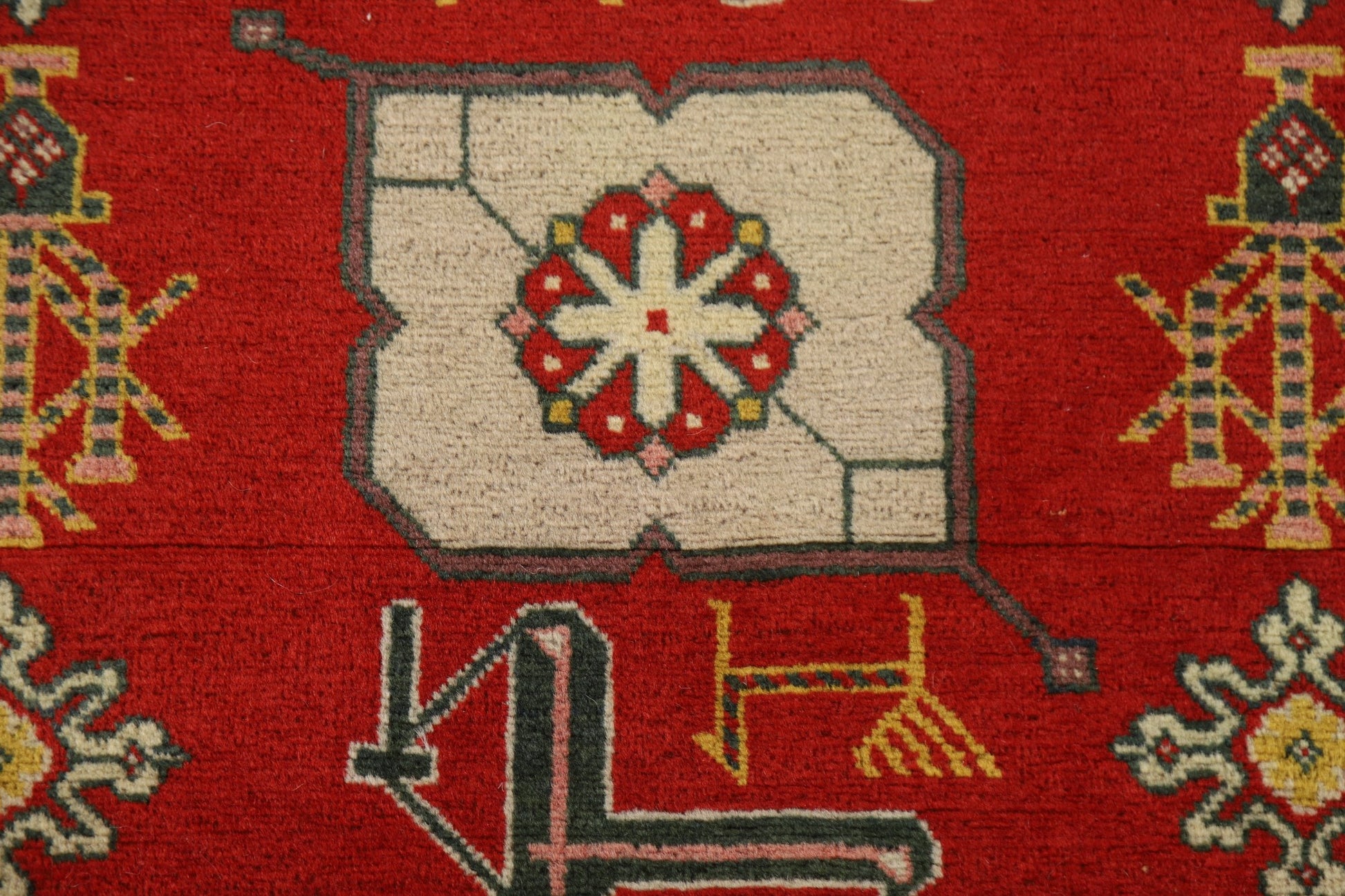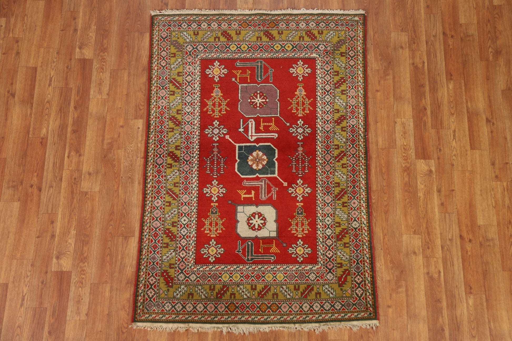A Beautiful Genuine Russia Shirvan rug is Hand Knotted by skillful weavers in Russia with 100% Wool Material. This rug is in Very Good condition. dimensions are 4' 11'' X 3' 4'' in foot and 150 X 102 in centimeter. the primary color is Red.