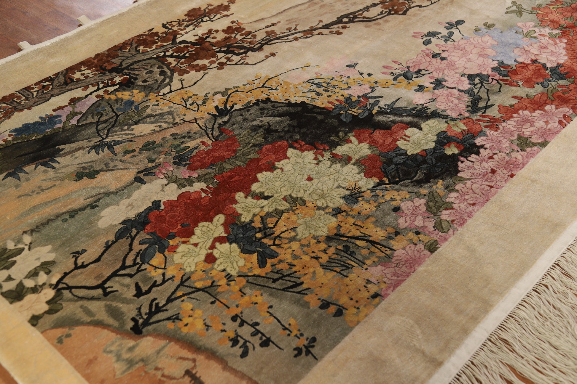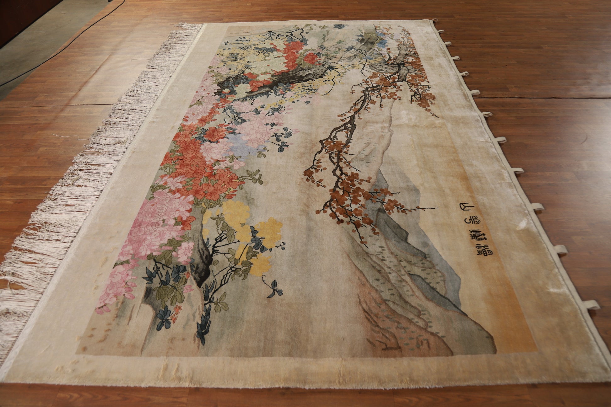 A Beautiful Genuine China Art Deco rug is Hand Knotted by skillful weavers in China with Silk Material. This rug is in Very Good condition. dimensions are 10' 1'' X 6' 3'' in foot and 307 X 191 in centimeter. the primary color is Beige & Ivories.