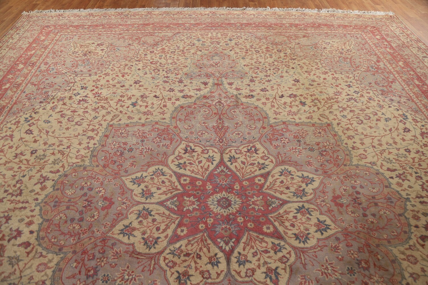 A Beautiful Genuine Turkey Sivas rug is Hand Knotted by skillful weavers in Turkey with 100% Wool Material. This rug is in Very Good condition. dimensions are 14' 9'' X 11' 8'' in foot and 450 X 356 in centimeter. the primary color is Beige & Ivories.