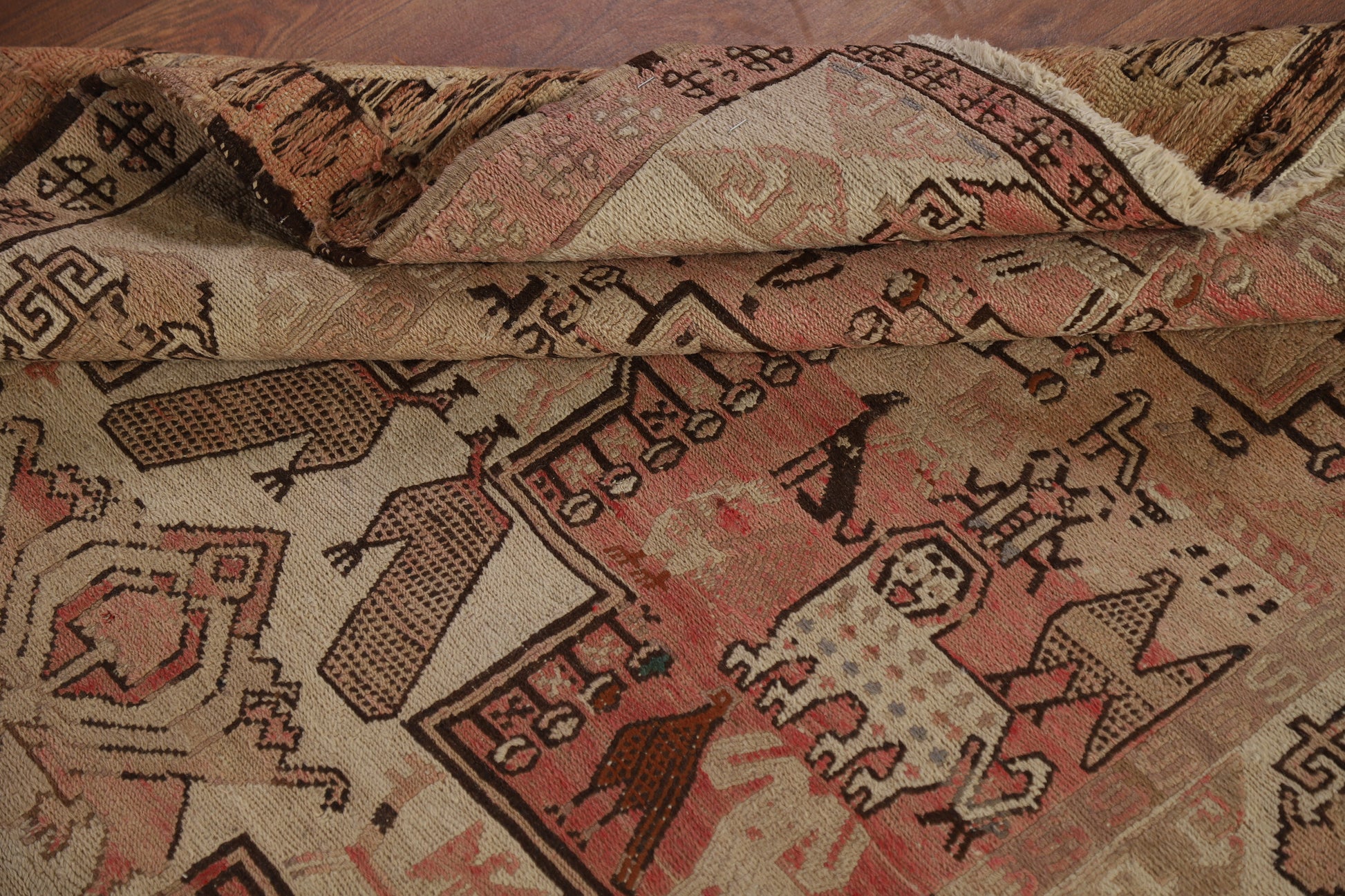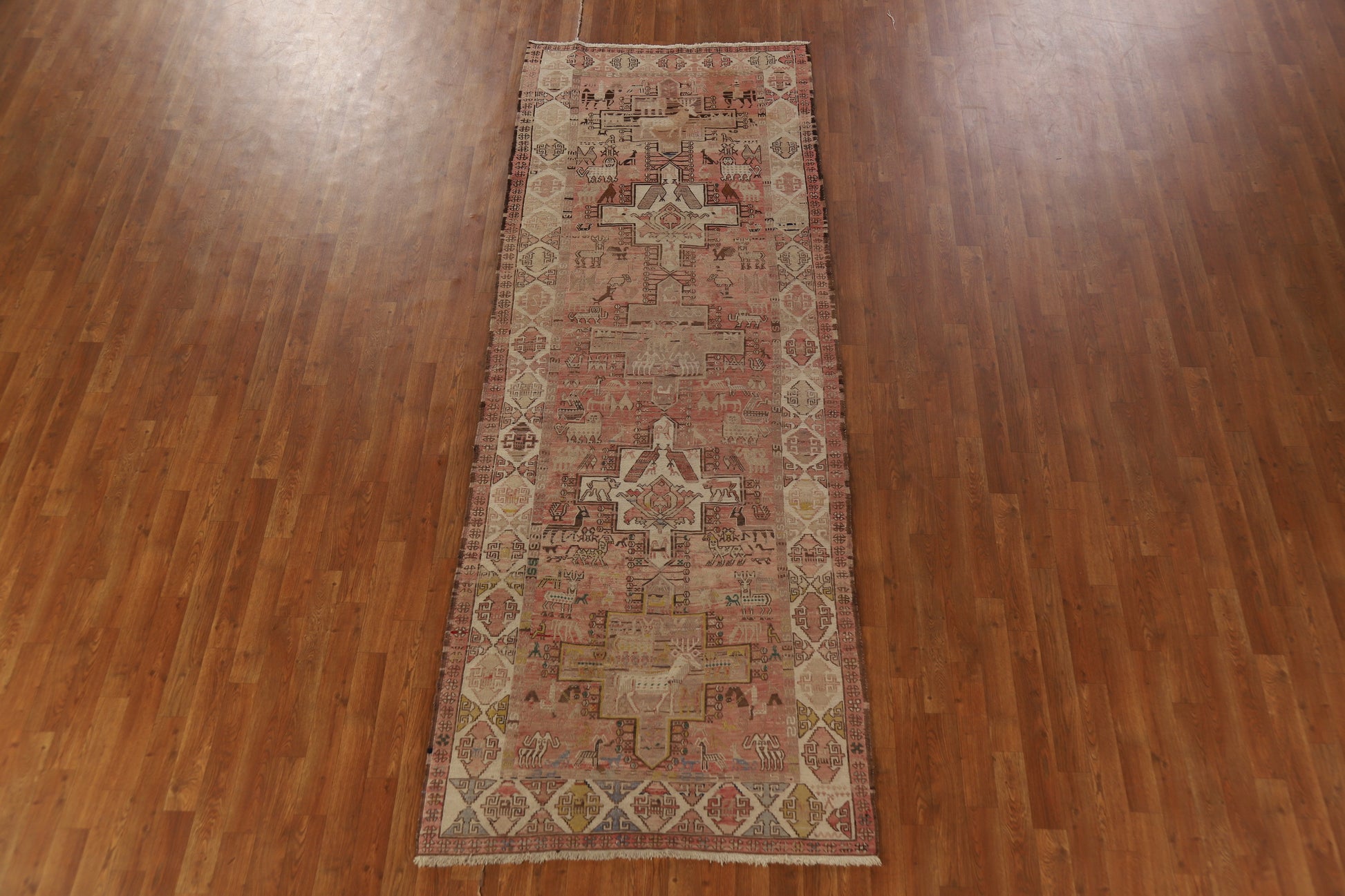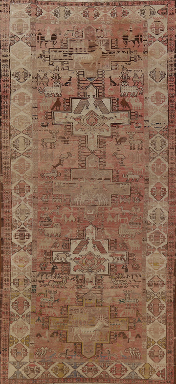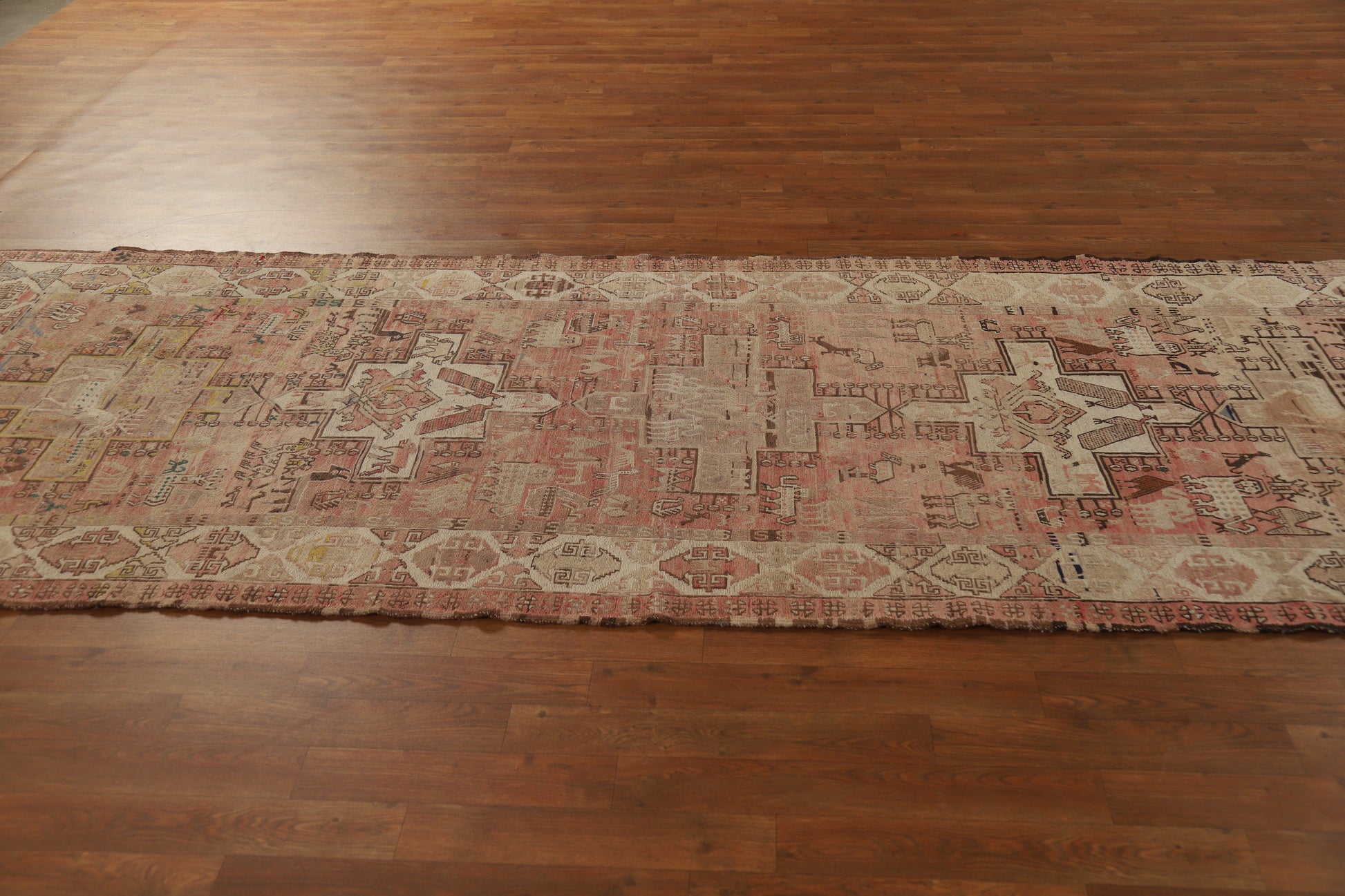 A Beautiful Genuine Russia Sumak rug is Hand Woven by skillful weavers in Russia with 100% Wool Material. This rug is in Very Good (Abrash) condition. dimensions are 10' 2'' X 3' 9'' in foot and 310 X 114 in centimeter. the primary color is Pink.