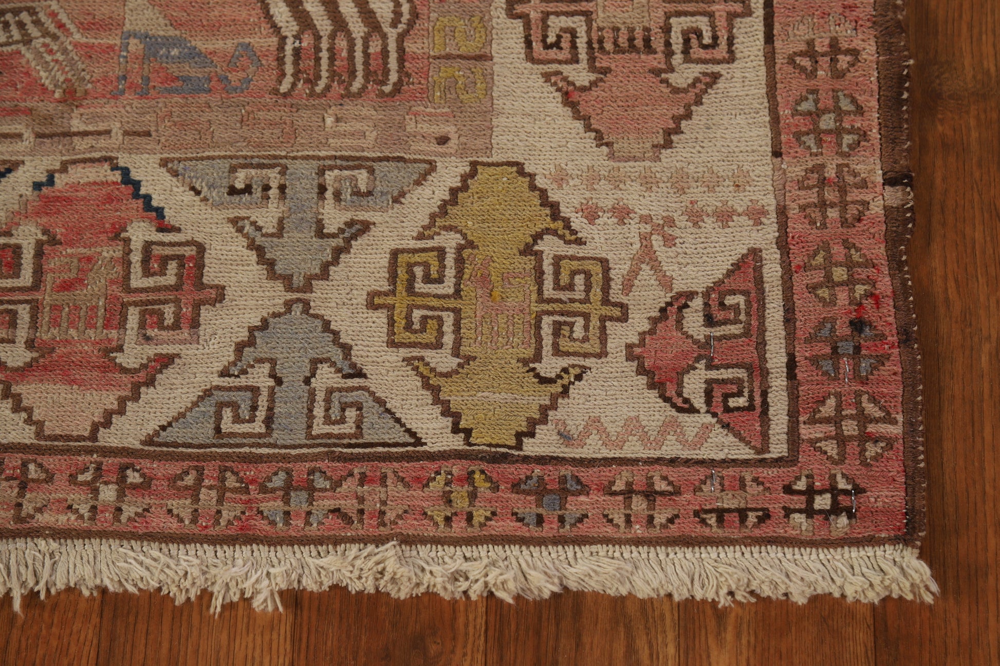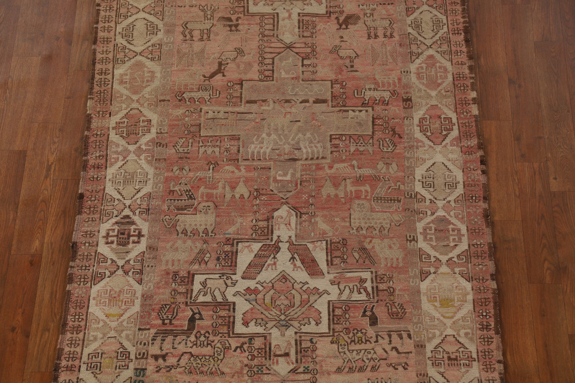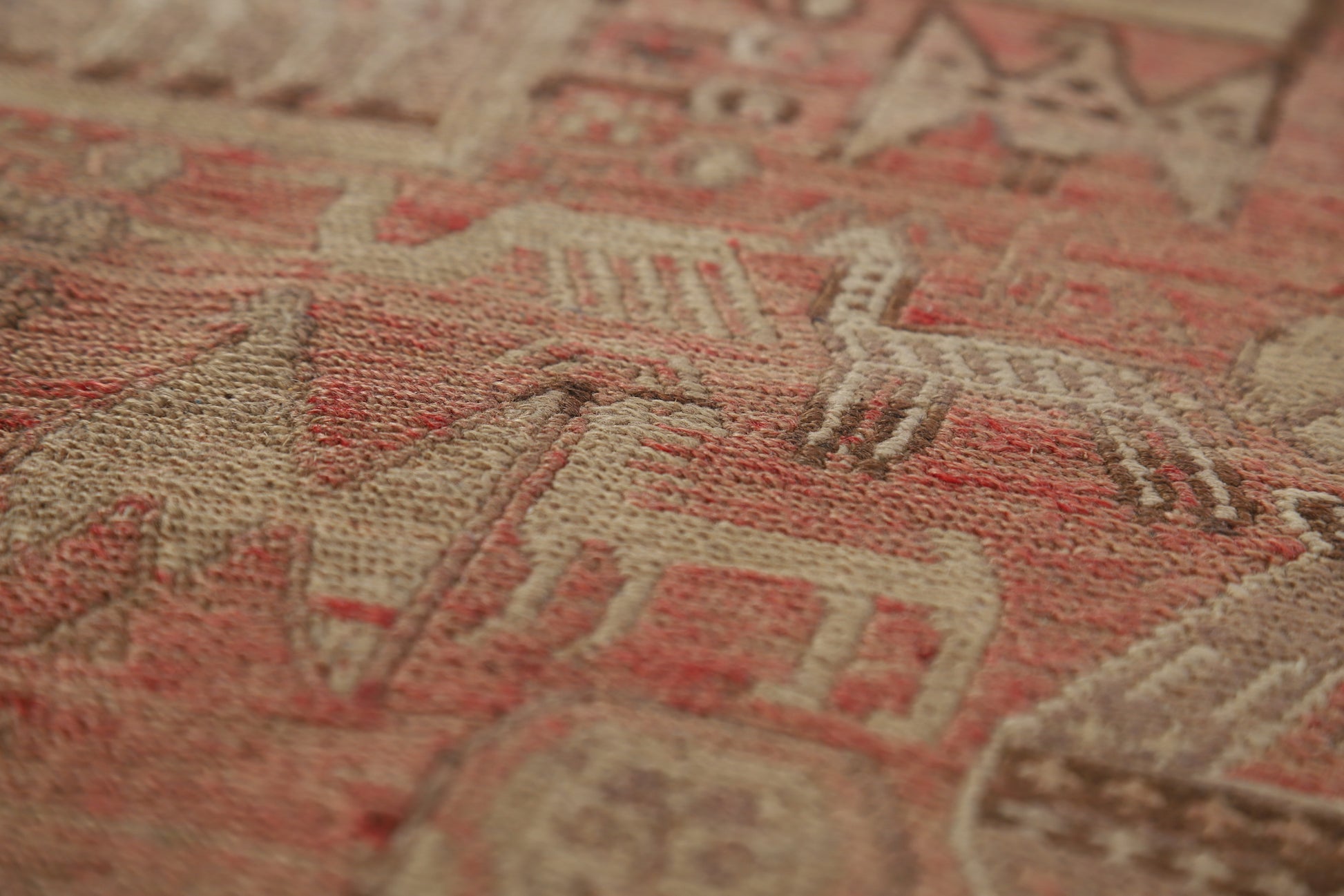 A Beautiful Genuine Russia Sumak rug is Hand Woven by skillful weavers in Russia with 100% Wool Material. This rug is in Very Good (Abrash) condition. dimensions are 10' 2'' X 3' 9'' in foot and 310 X 114 in centimeter. the primary color is Pink.