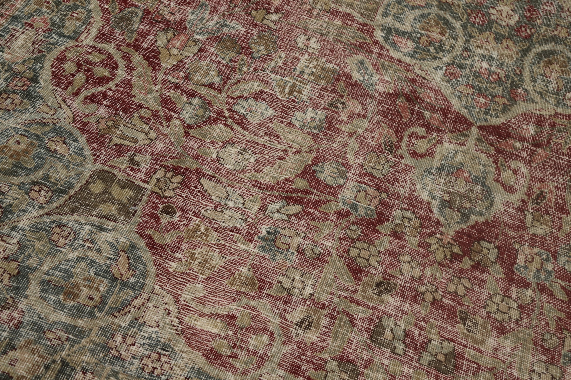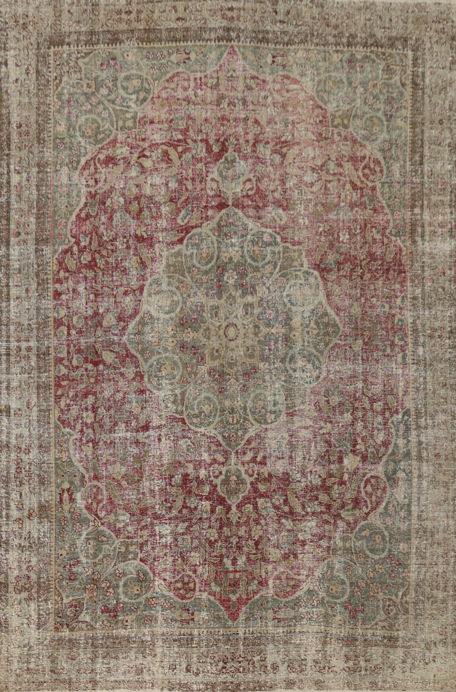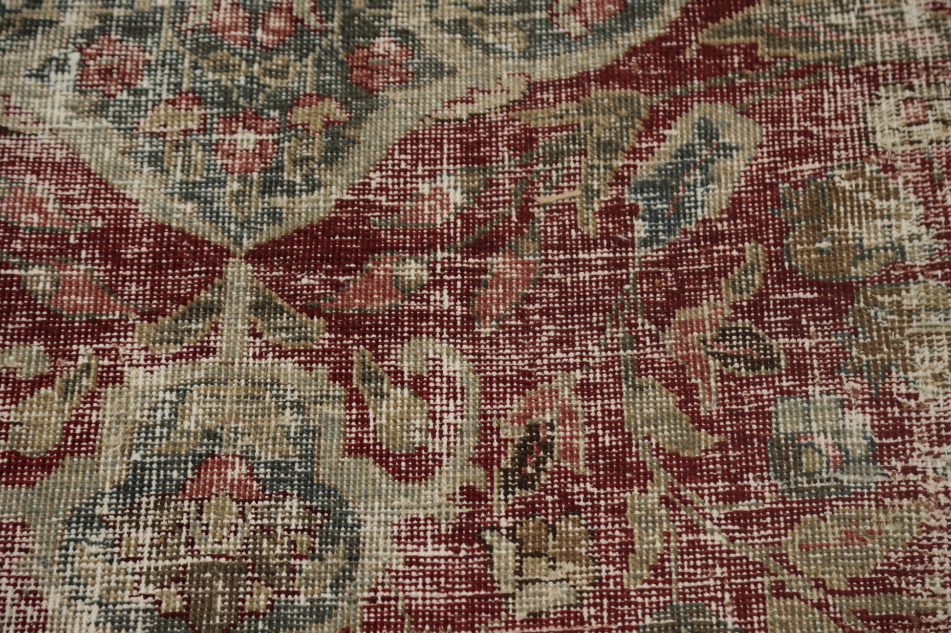 A Beautiful Genuine Persia ( Persia ) Tabriz rug is Hand Knotted by skillful weavers in Persia ( Persia ) with 100% Wool Material. This rug is in Very Good (Low Pile-Worn-Repairs) condition. dimensions are 11' 10'' X 8' 8'' in foot and 361 X 264 in centimeter. the primary color is Red.