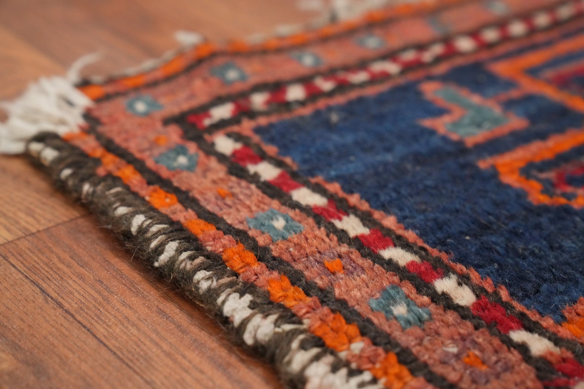 A Beautiful Genuine Persia ( Persia ) Afshar rug is Hand Knotted by skillful weavers in Persia ( Persia ) with 100% Wool Material. This rug is in Very Good ( Low Pile ) condition. dimensions are 6' 7'' X 4' 3'' in foot and 201 X 130 in centimeter. the primary color is Navy Blue & Blues.