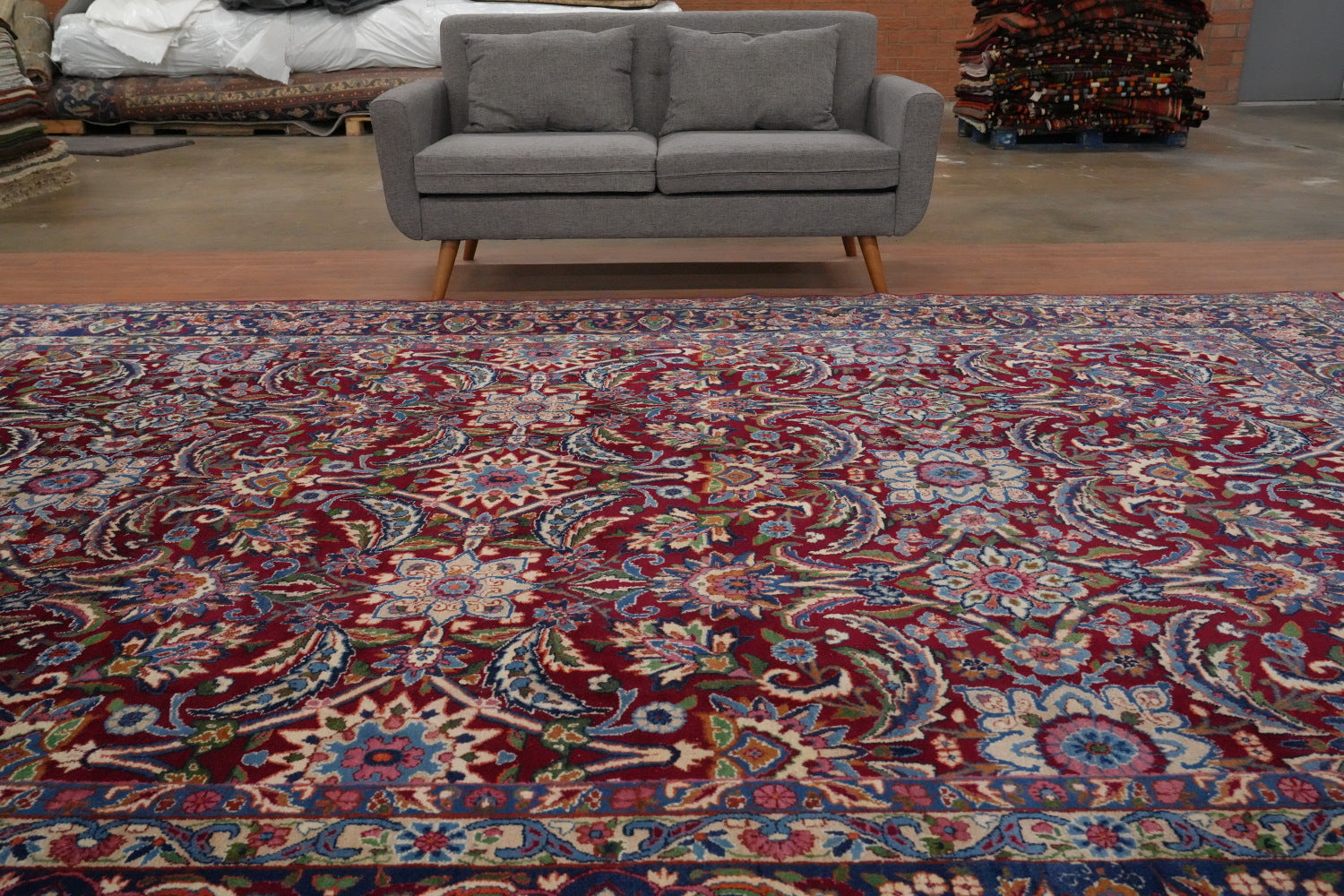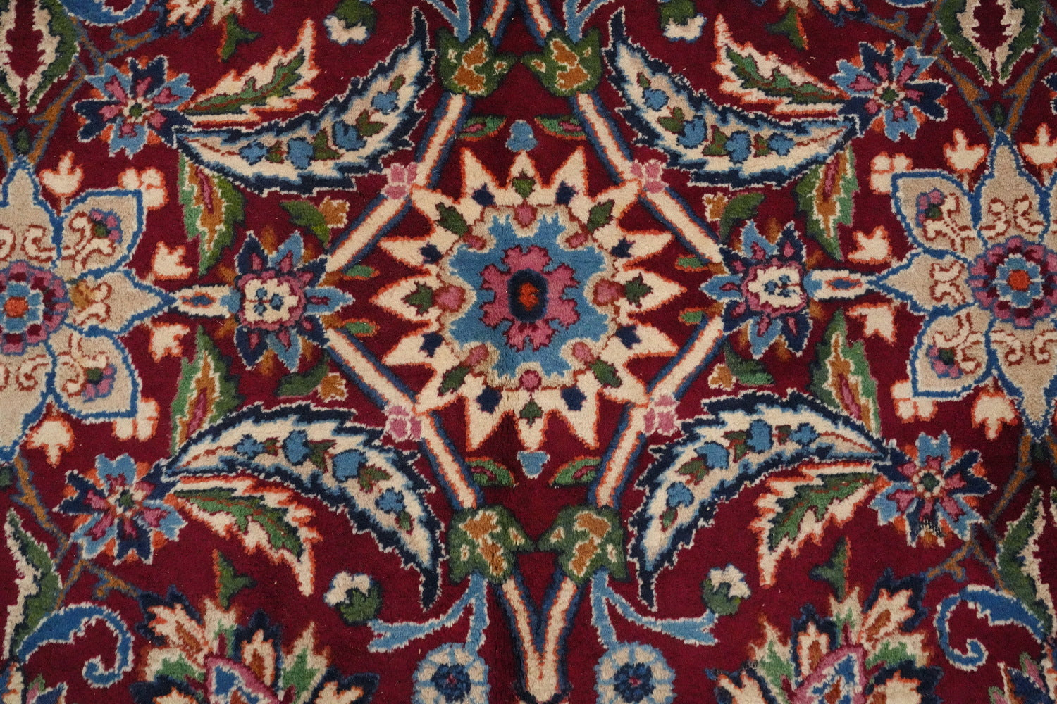 A Beautiful Genuine Persia ( Persia ) Yazd rug is Hand Knotted by skillful weavers in Persia ( Persia ) with 100% Wool Material. This rug is in Very Good condition. dimensions are 13' 7'' X 9' 8'' in foot and 414 X 295 in centimeter. the primary color is Red.
