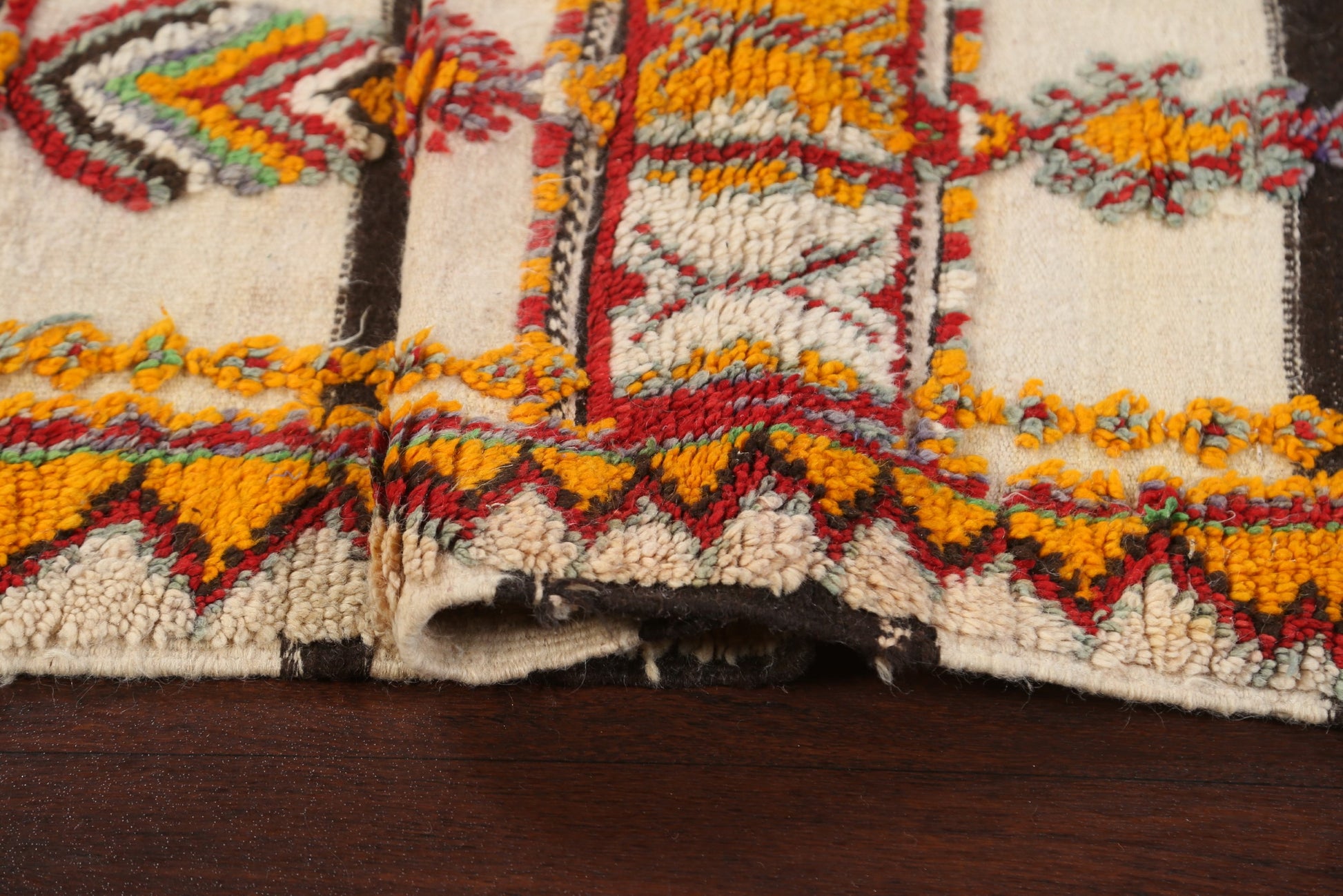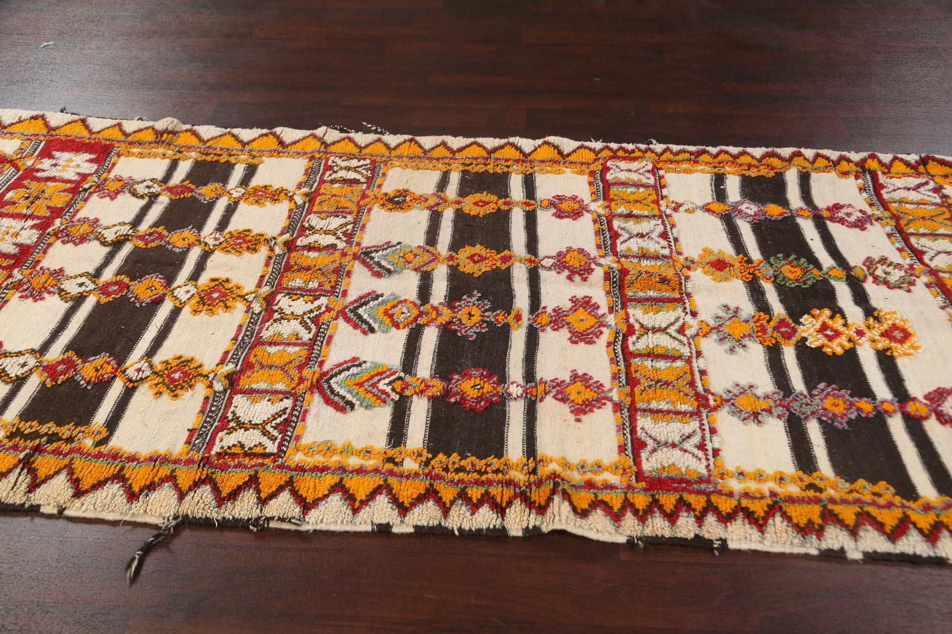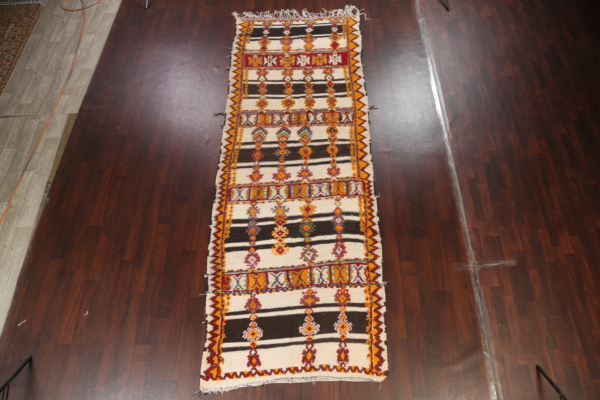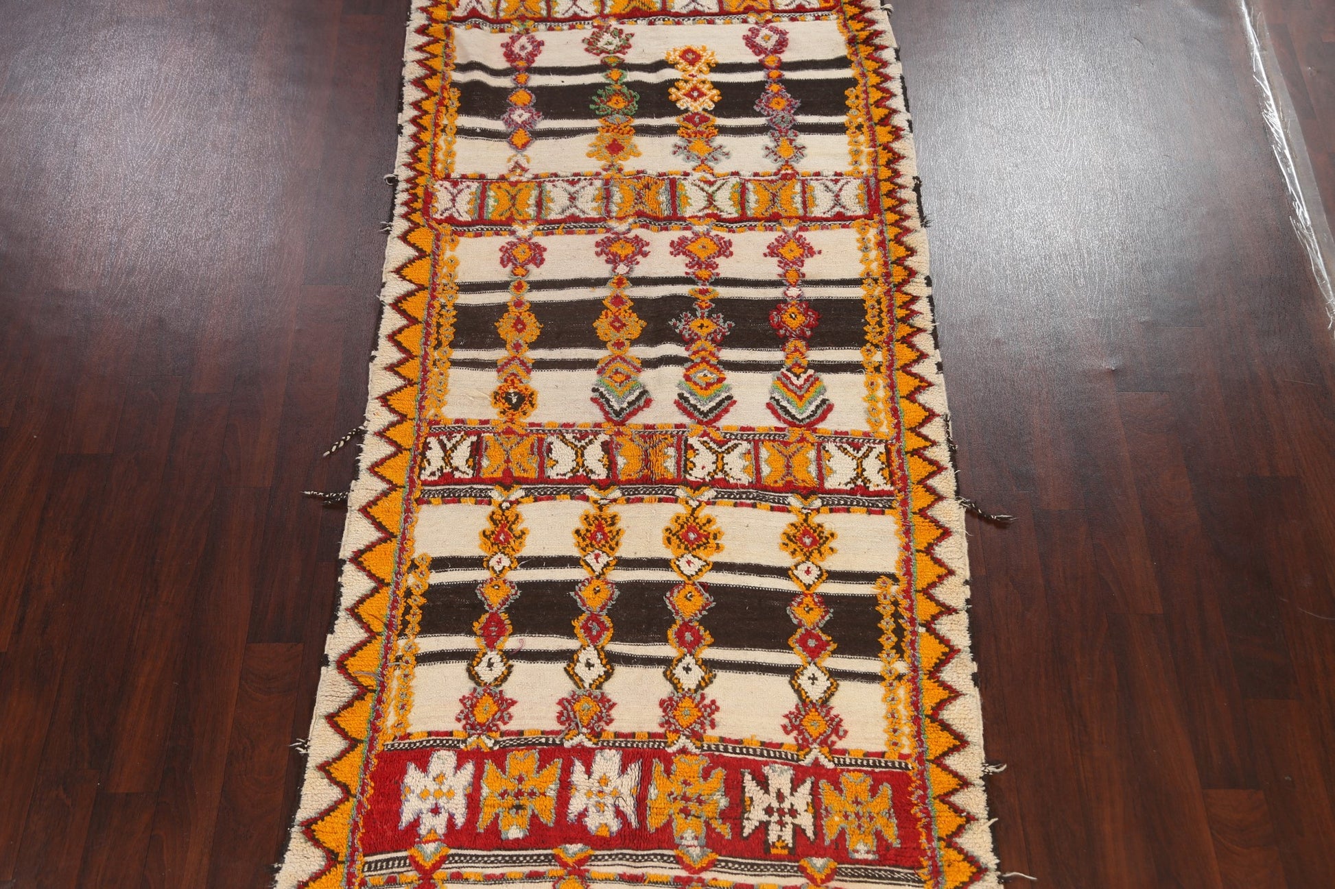 A Beautiful Genuine Morocco Moroccan rug is Hand Knotted by skillful weavers in Morocco with 100% Wool Material. This rug is in Very Good condition. dimensions are 12' 11'' X 4' 7'' in foot and 394 X 140 in centimeter. the primary color is Beige & Ivories.