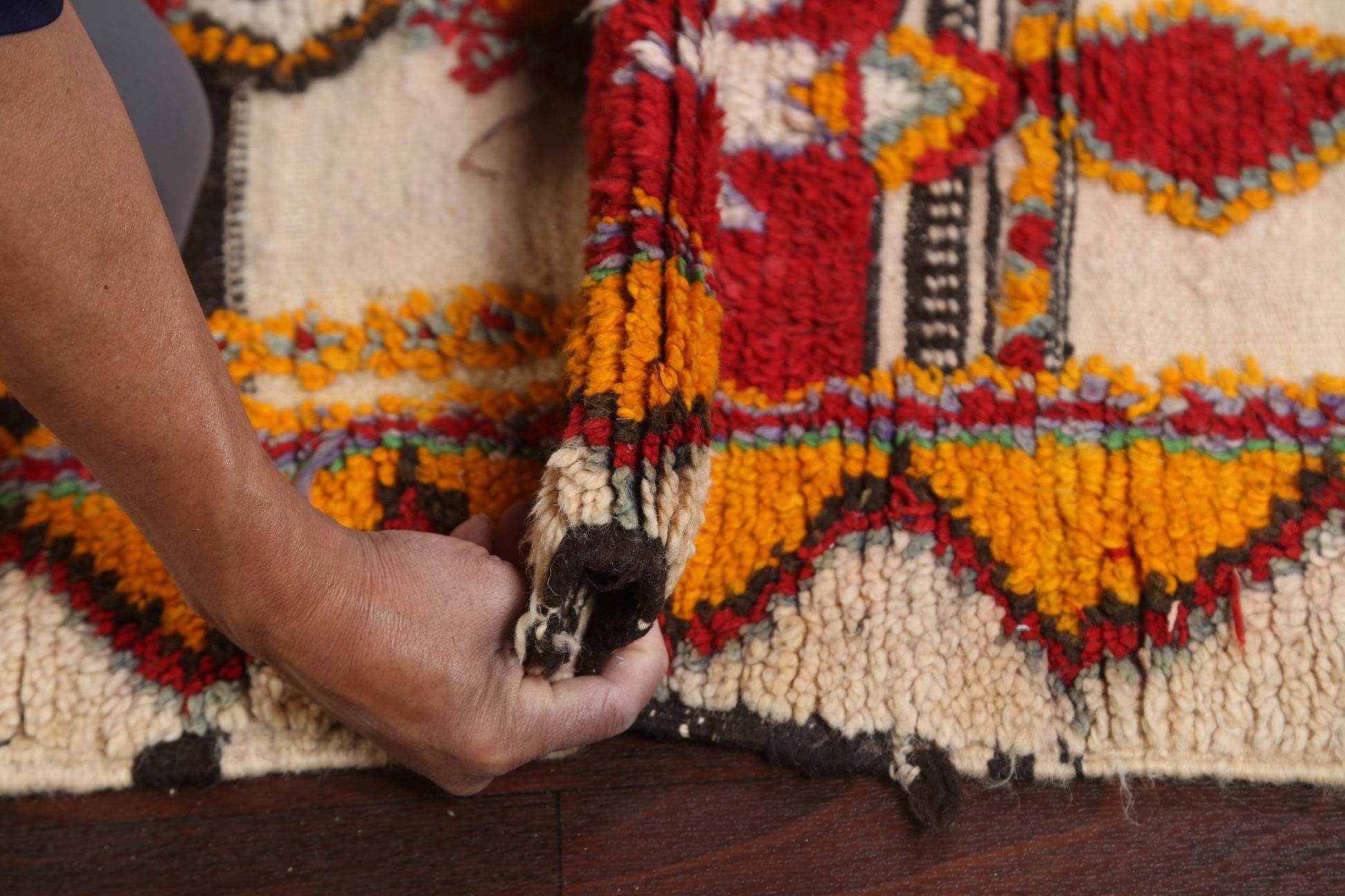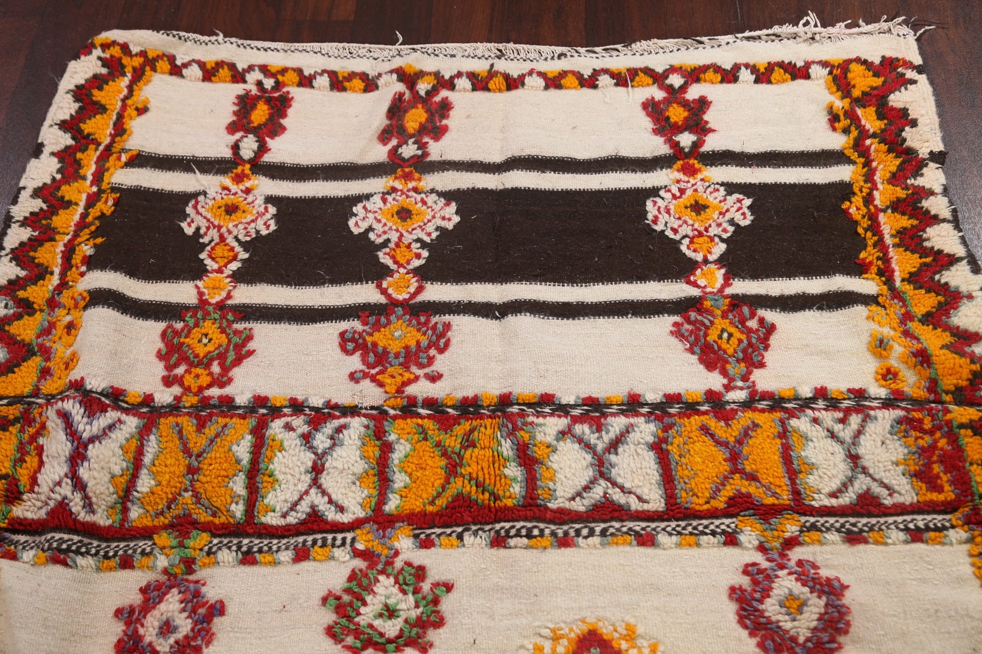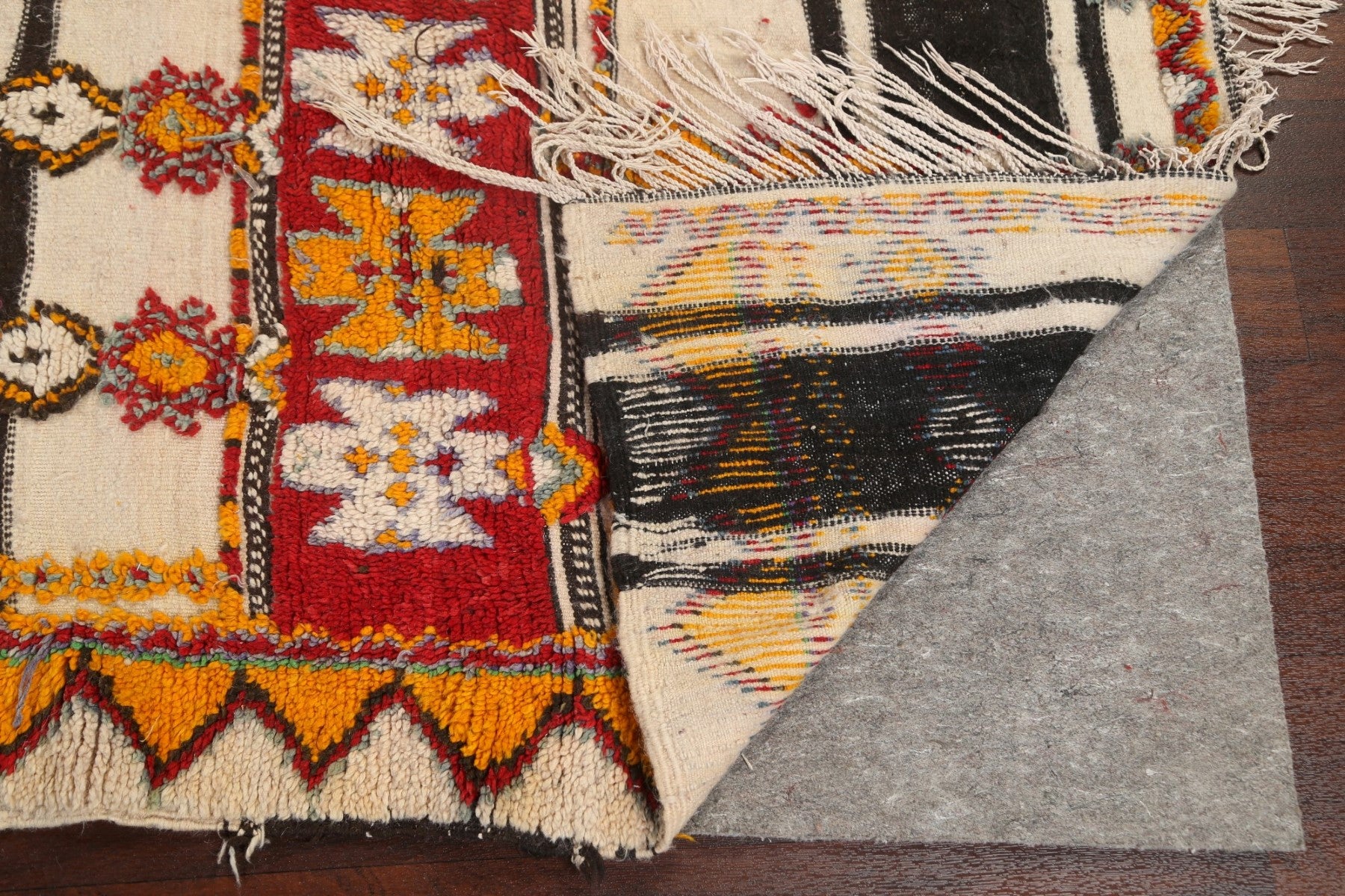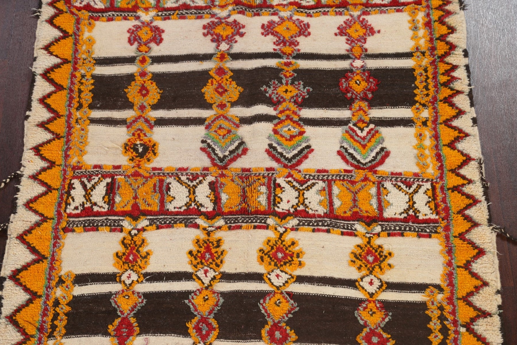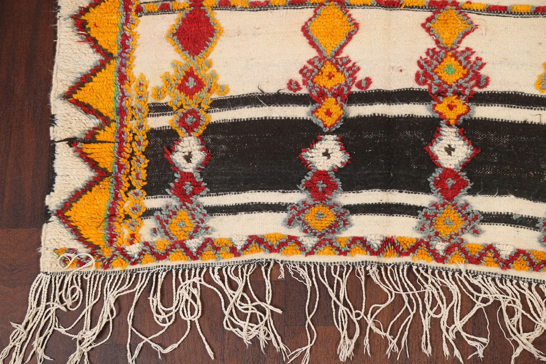 A Beautiful Genuine Morocco Moroccan rug is Hand Knotted by skillful weavers in Morocco with 100% Wool Material. This rug is in Very Good condition. dimensions are 12' 11'' X 4' 7'' in foot and 394 X 140 in centimeter. the primary color is Beige & Ivories.