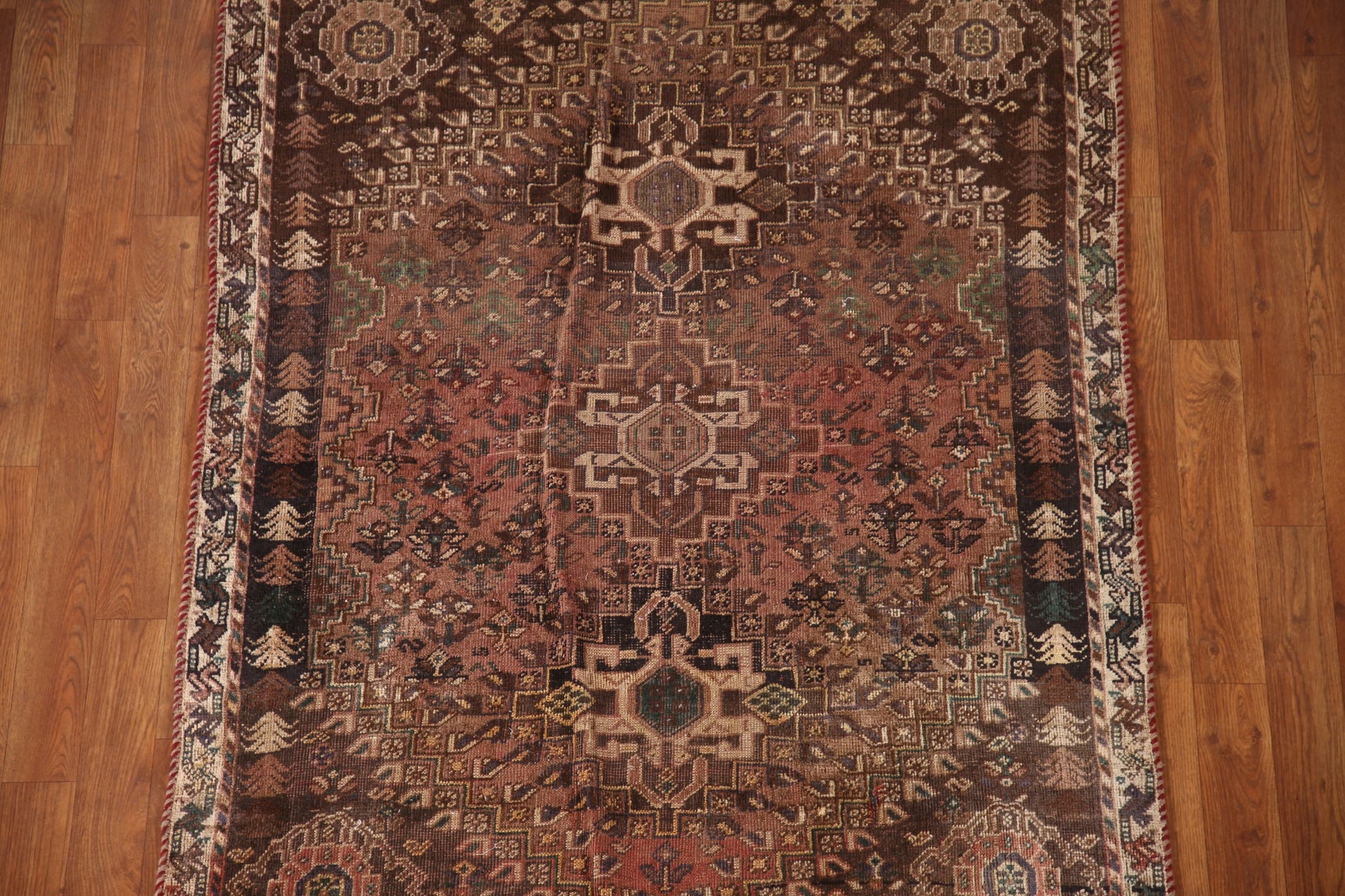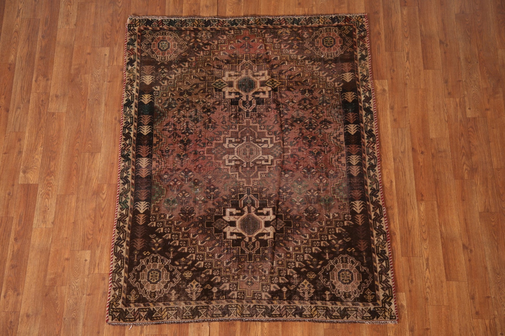 Antique Wool Qashqai Persian Rug 4x5