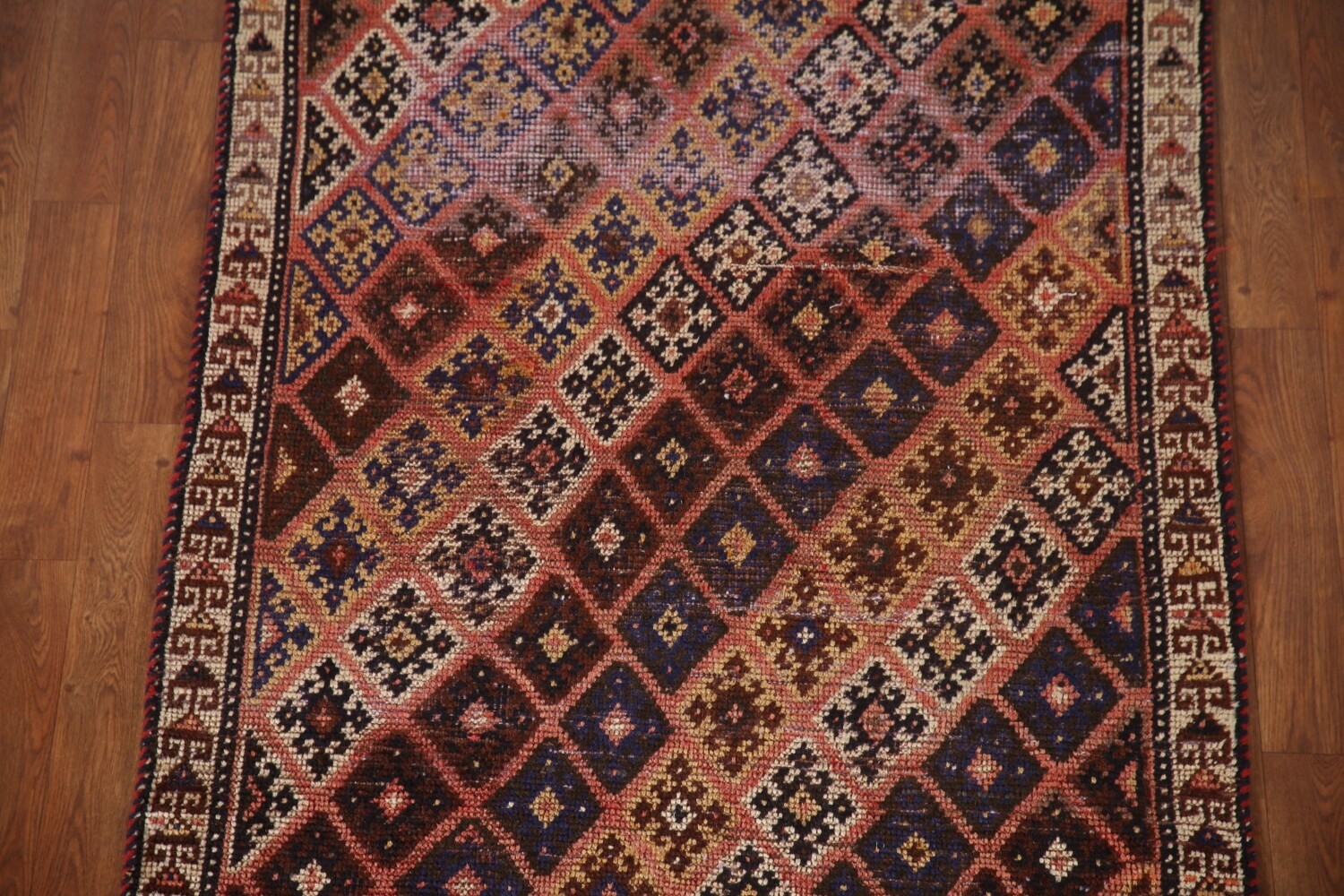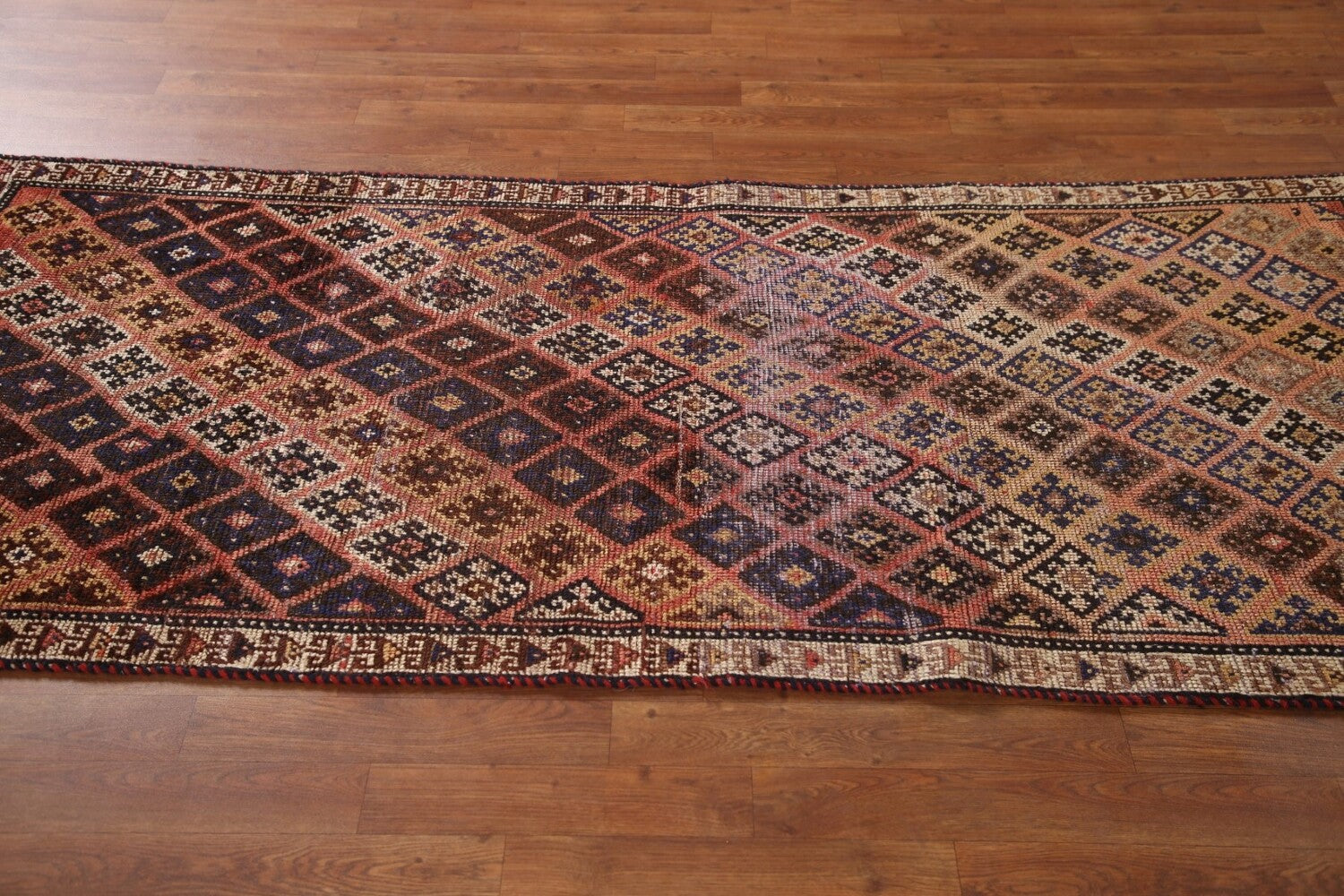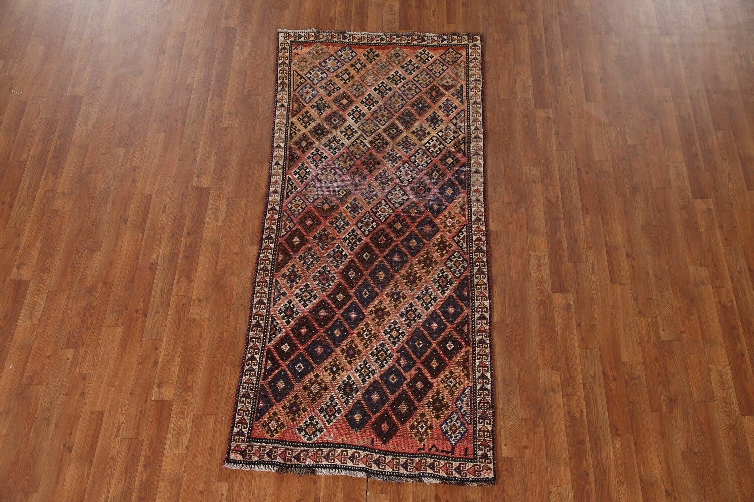 Antique Wool Qashqai Persian Runner Rug 3x7