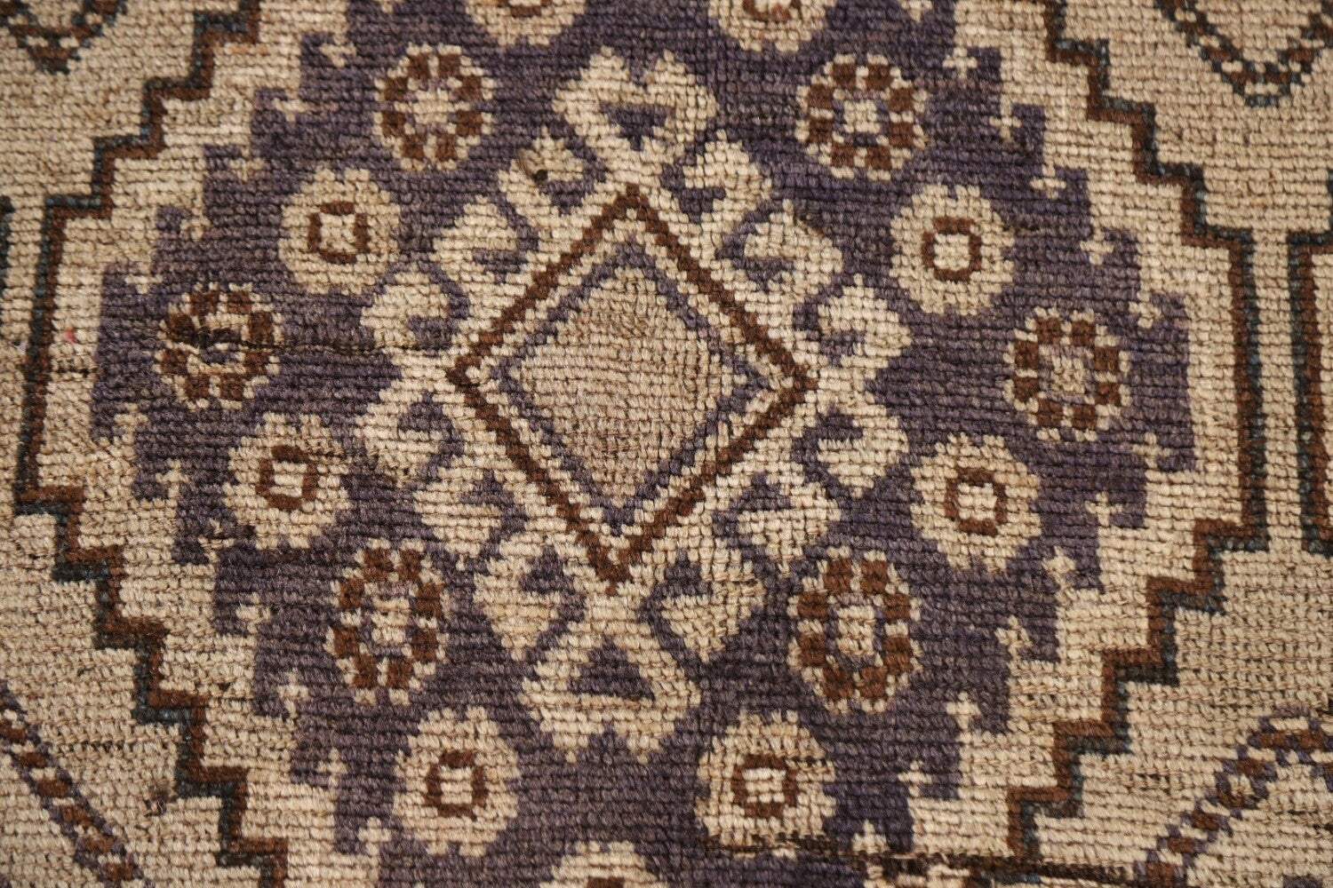 A Beautiful Genuine Persia ( Persia ) Qashqai rug is Hand Knotted by skillful weavers in Persia ( Persia ) with 100% Wool Material. This rug is in Very Good (Evenly Low Pile-Abrash) condition. dimensions are 9' 7'' X 4' 1'' in foot and 292 X 124 in centimeter. the primary color is Purples.