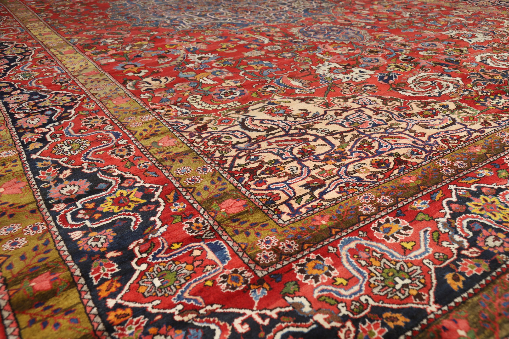 Antique Wool Red Bakhtiari Persian Large Rug 11x18