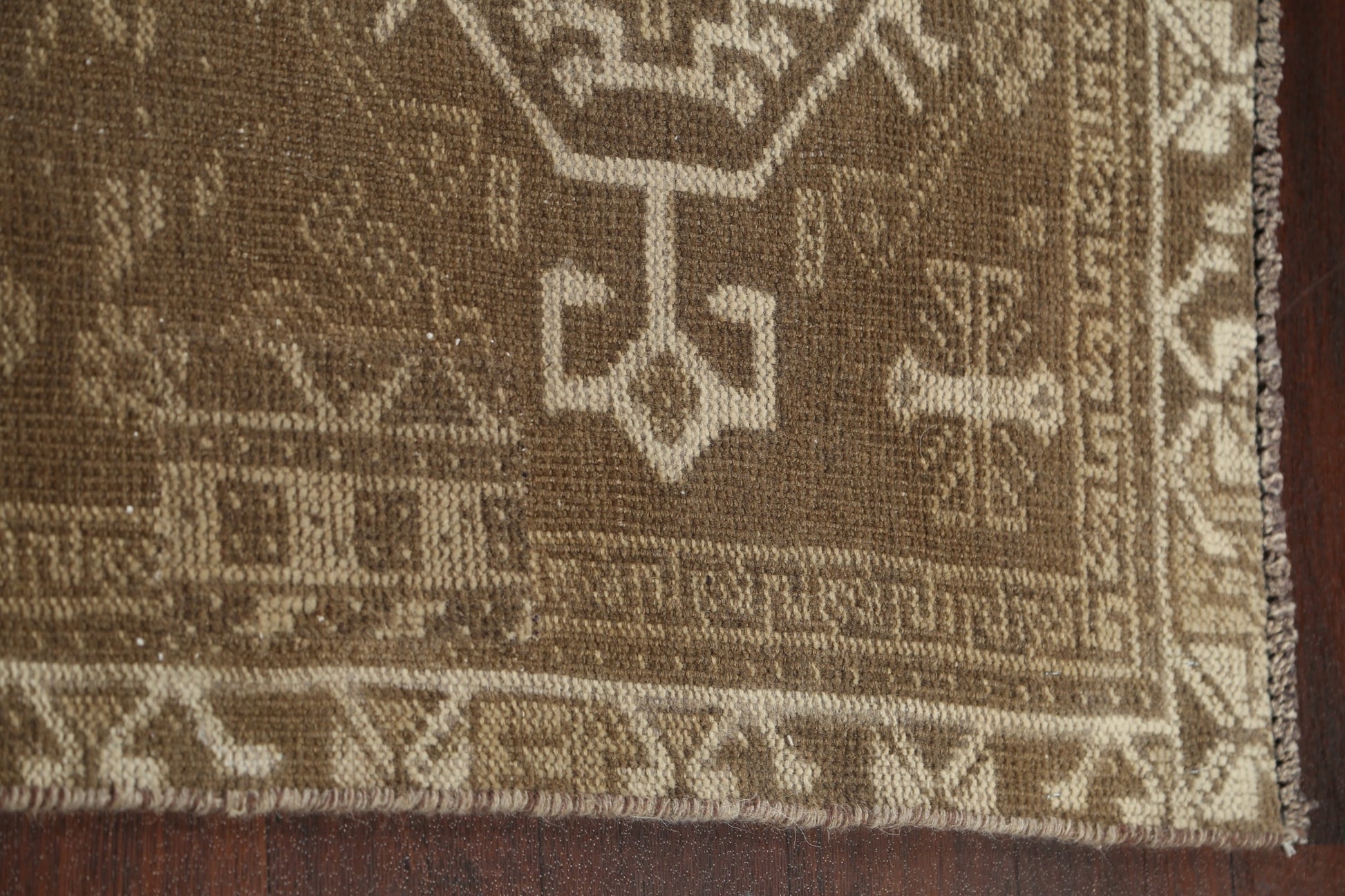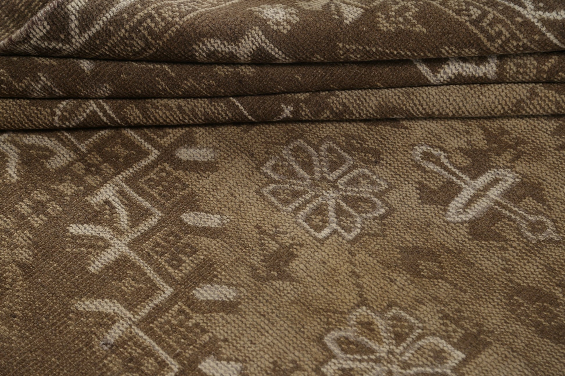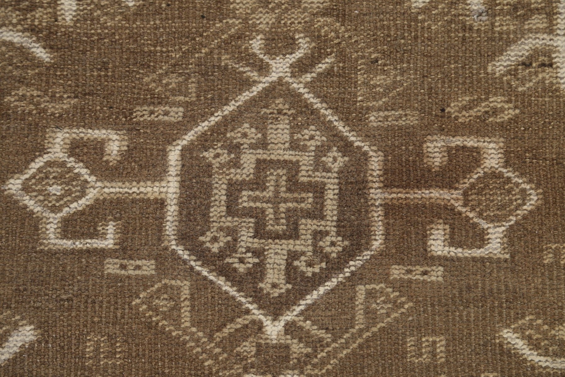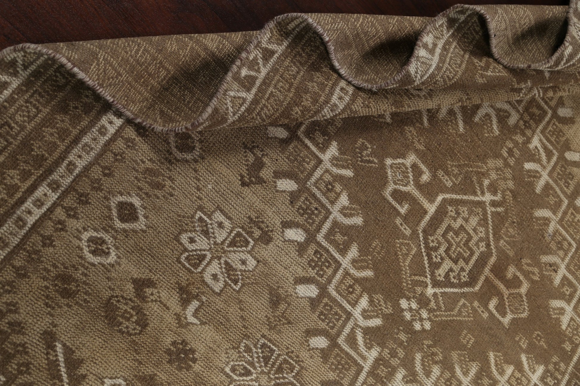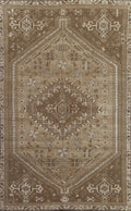 A Beautiful Genuine Persia ( Persia ) Shiraz rug is Hand Knotted by skillful weavers in Persia ( Persia ) with 100% Wool Material. This rug is in Very Good (Evenly Low Pile) condition. dimensions are 9' 11'' X 5' 8'' in foot and 302 X 173 in centimeter. the primary color is Brown.