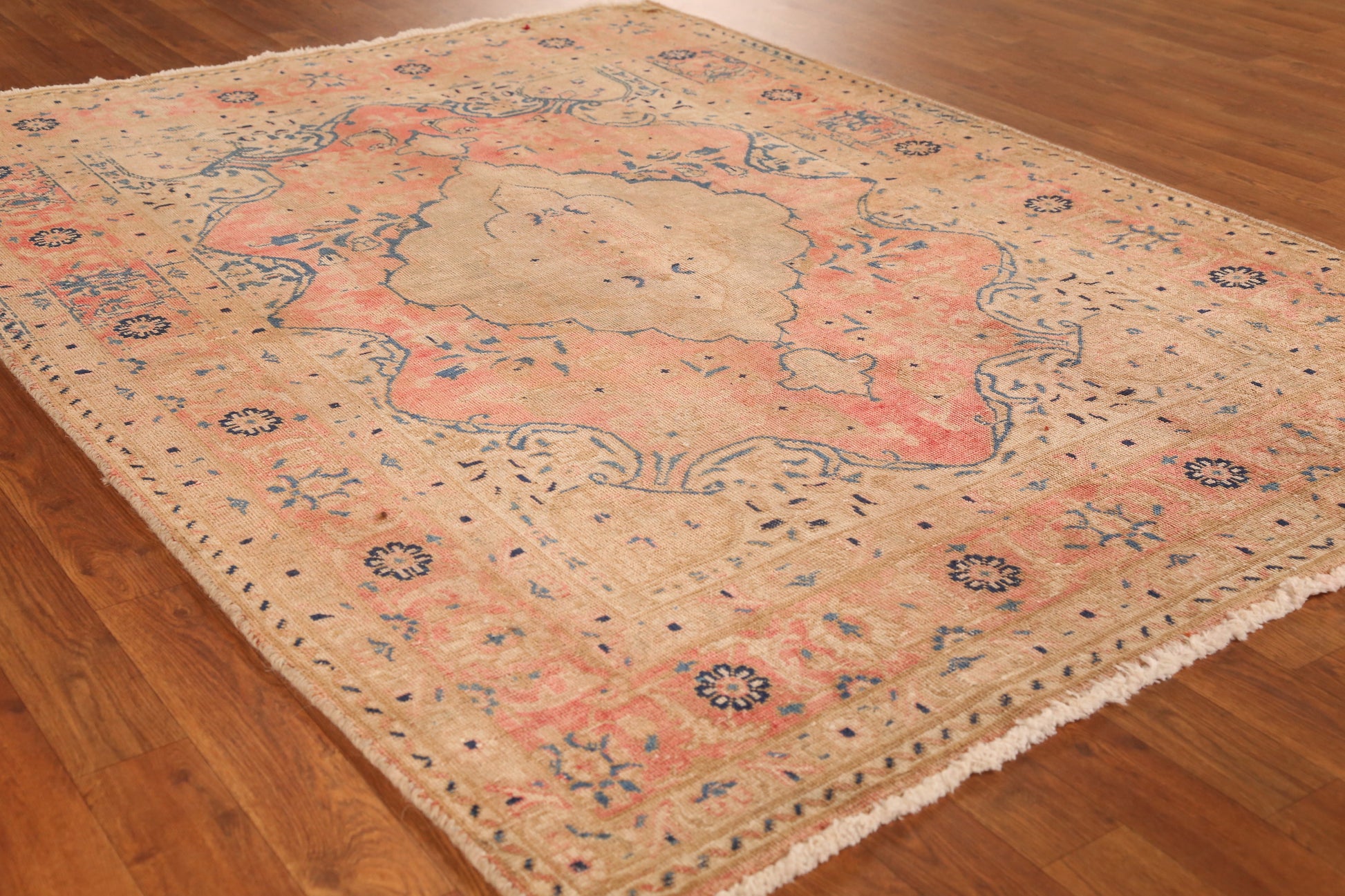 A Beautiful Genuine Persia ( Persia ) Tabriz rug is Hand Knotted by skillful weavers in Persia ( Persia ) with 100% Wool Material. This rug is in Very Good (Evenly Low Pile) condition. dimensions are 6' 4'' X 4' 10'' in foot and 193 X 147 in centimeter. the primary color is Pink.