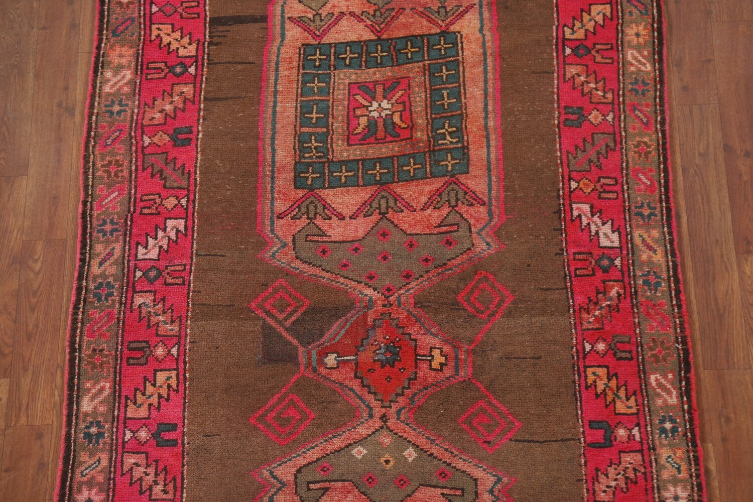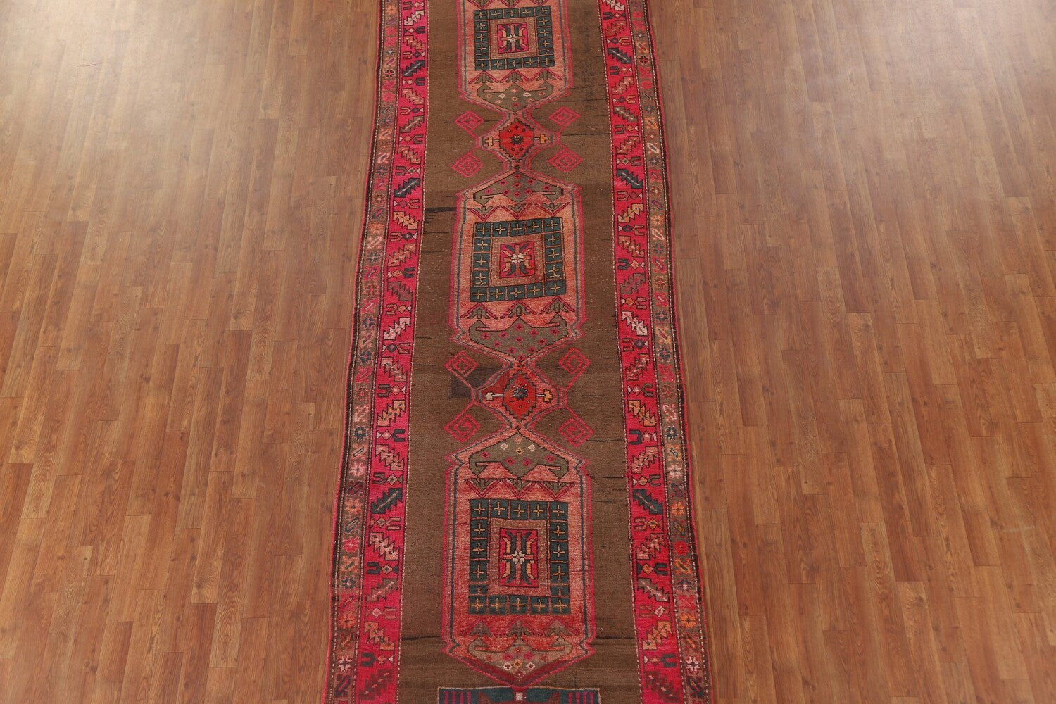 A Beautiful Genuine Persia ( Persia ) Ardebil rug is Hand Knotted by skillful weavers in Persia ( Persia ) with 100% Wool Material. This rug is in Very Good (Evenly Low Pile-Abrash-Repair) condition. dimensions are 13' 2'' X 3' 10'' in foot and 401 X 117 in centimeter. the primary color is Brown.