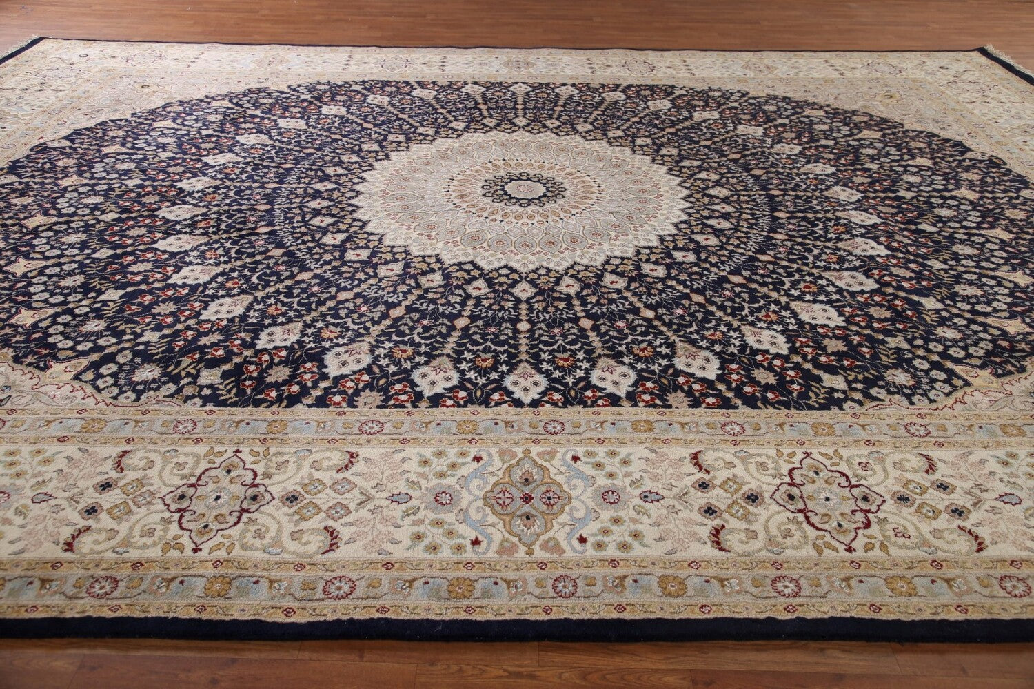 A Beautiful Genuine Pakistan Aubusson rug is Hand Knotted by skillful weavers in Pakistan with 100% Wool Material. This rug is in condition. dimensions are 16' 5'' X 12' 0'' in foot and 500 X 366 in centimeter. the primary color is Navy Blue & Blues.