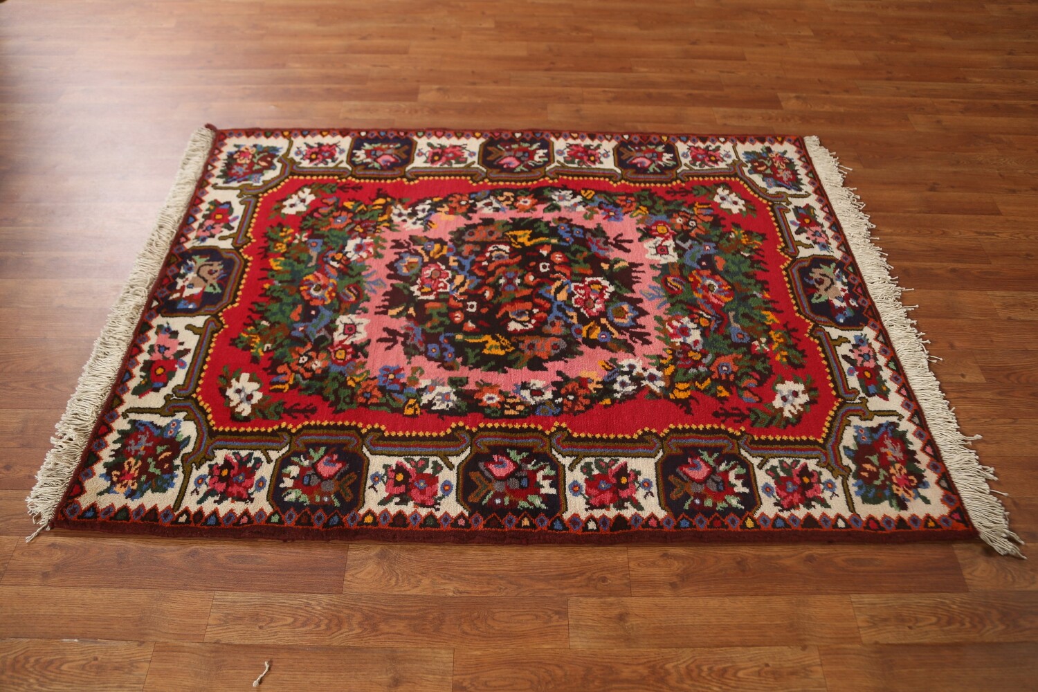 A Beautiful Genuine Persia ( Persia ) Bakhtiari rug is Hand Knotted by skillful weavers in Persia ( Persia ) with 100% Wool Material. This rug is in New, First Quality condition. dimensions are 5' 0'' X 3' 8'' in foot and 152 X 112 in centimeter. the primary color is Pink.