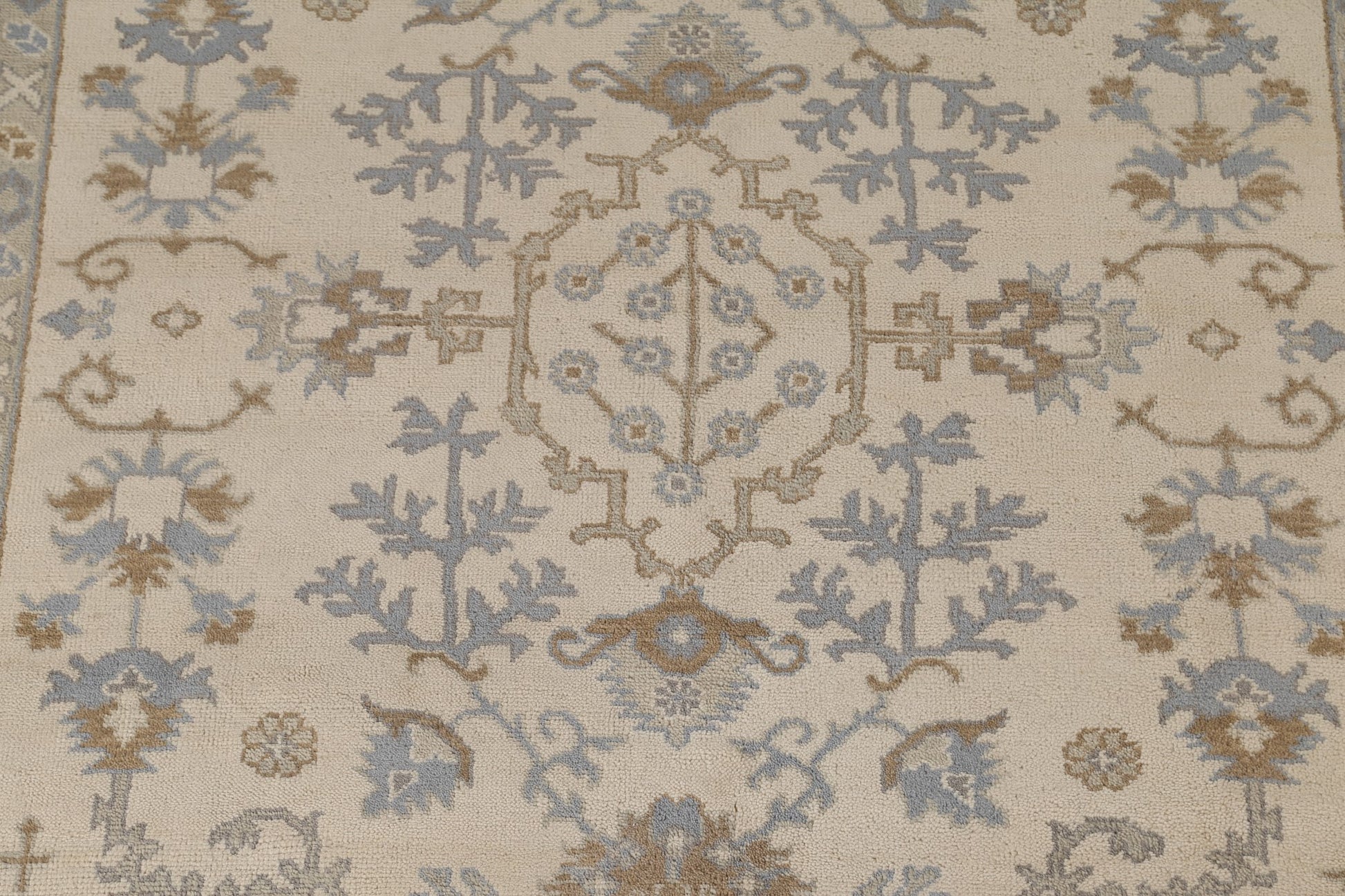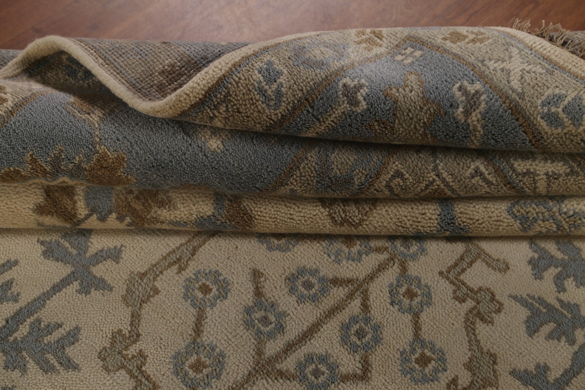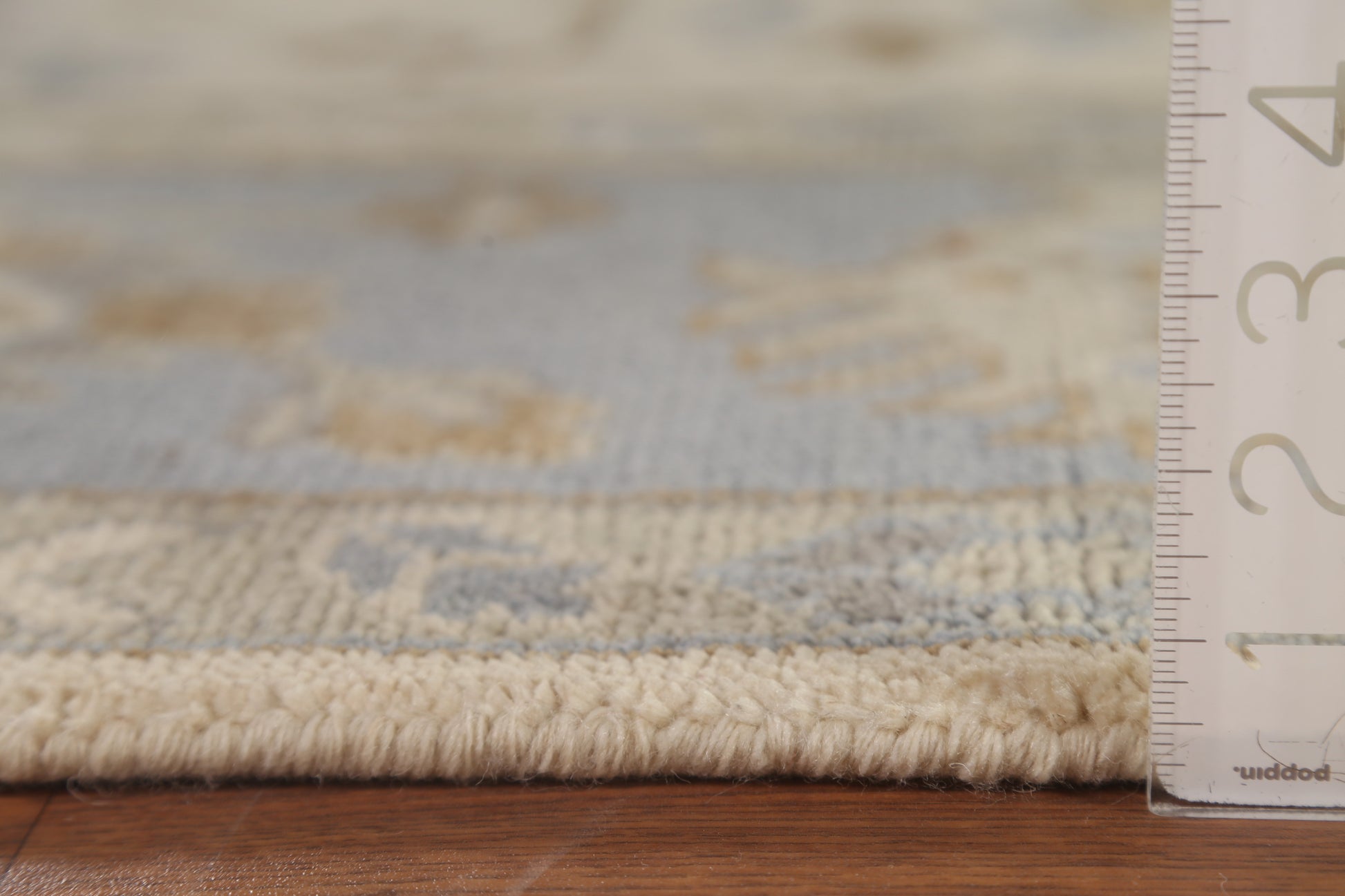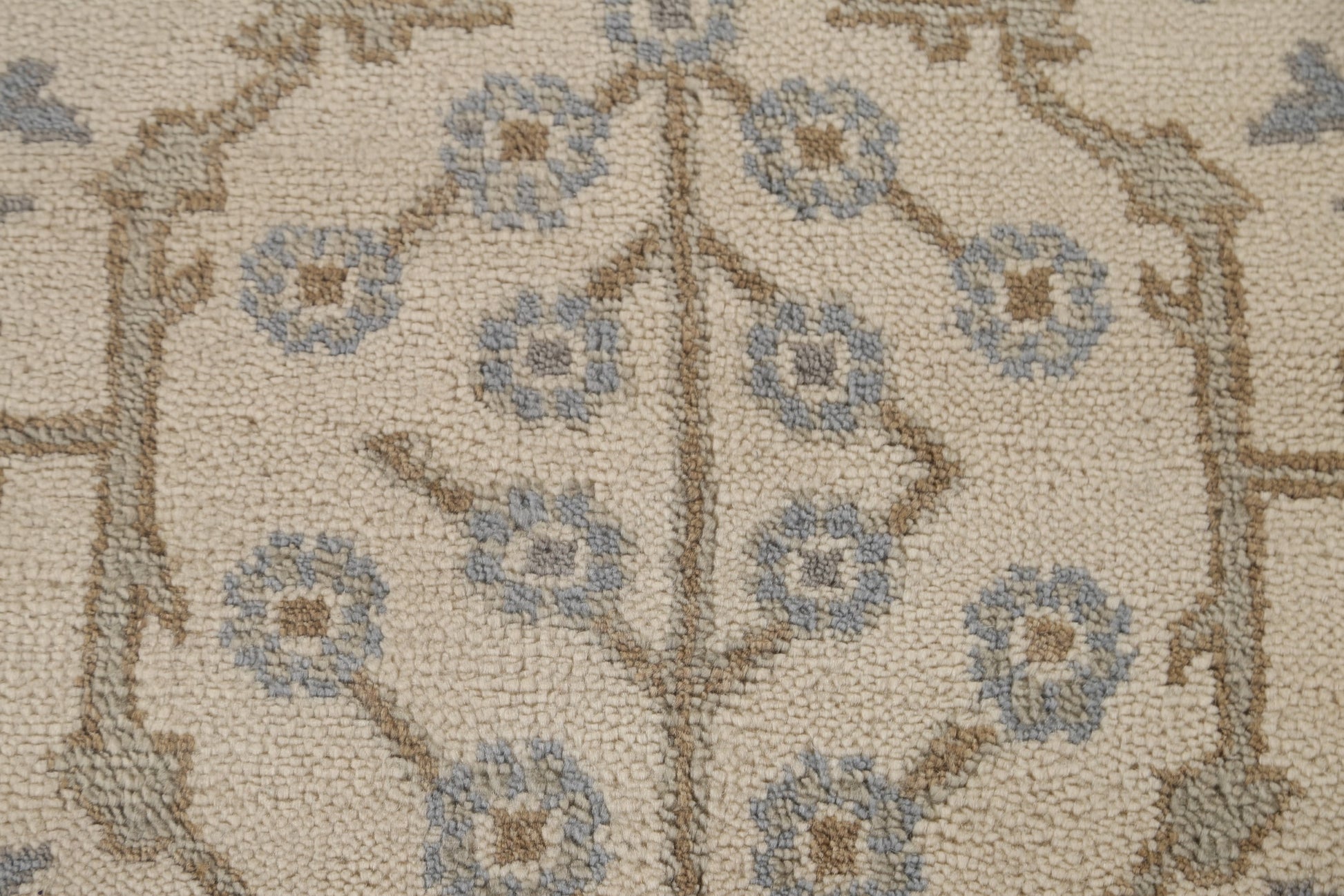 A Beautiful Genuine India Oushak rug is Hand Knotted by skillful weavers in India with 100% Wool Material. This rug is in New, First Quality condition. dimensions are 9' 7'' X 8' 0'' in foot and 292 X 244 in centimeter. the primary color is Beige & Ivories.