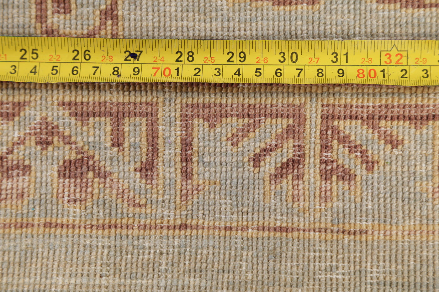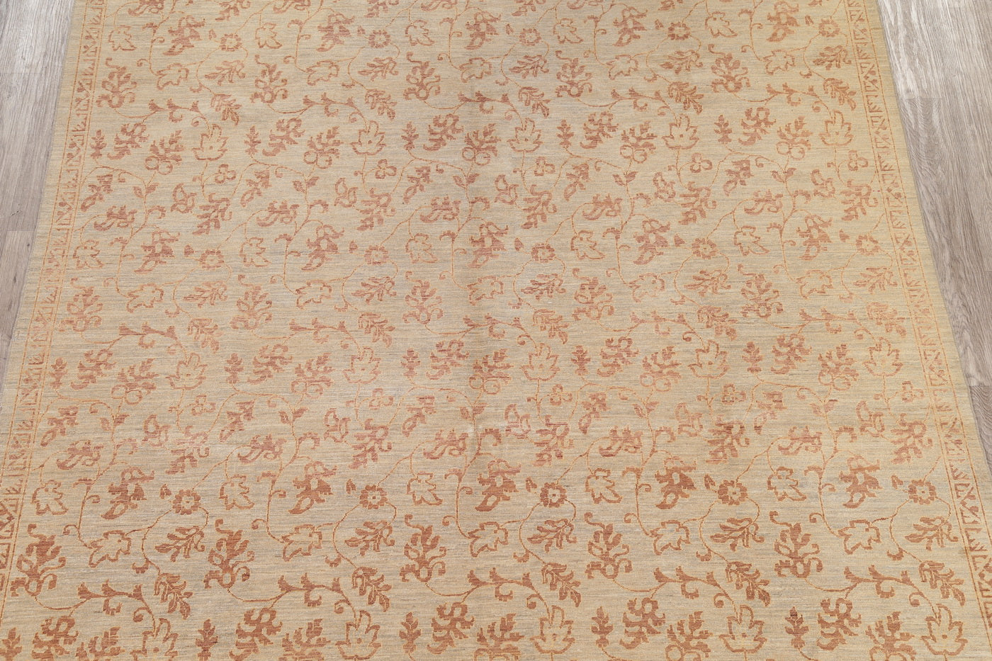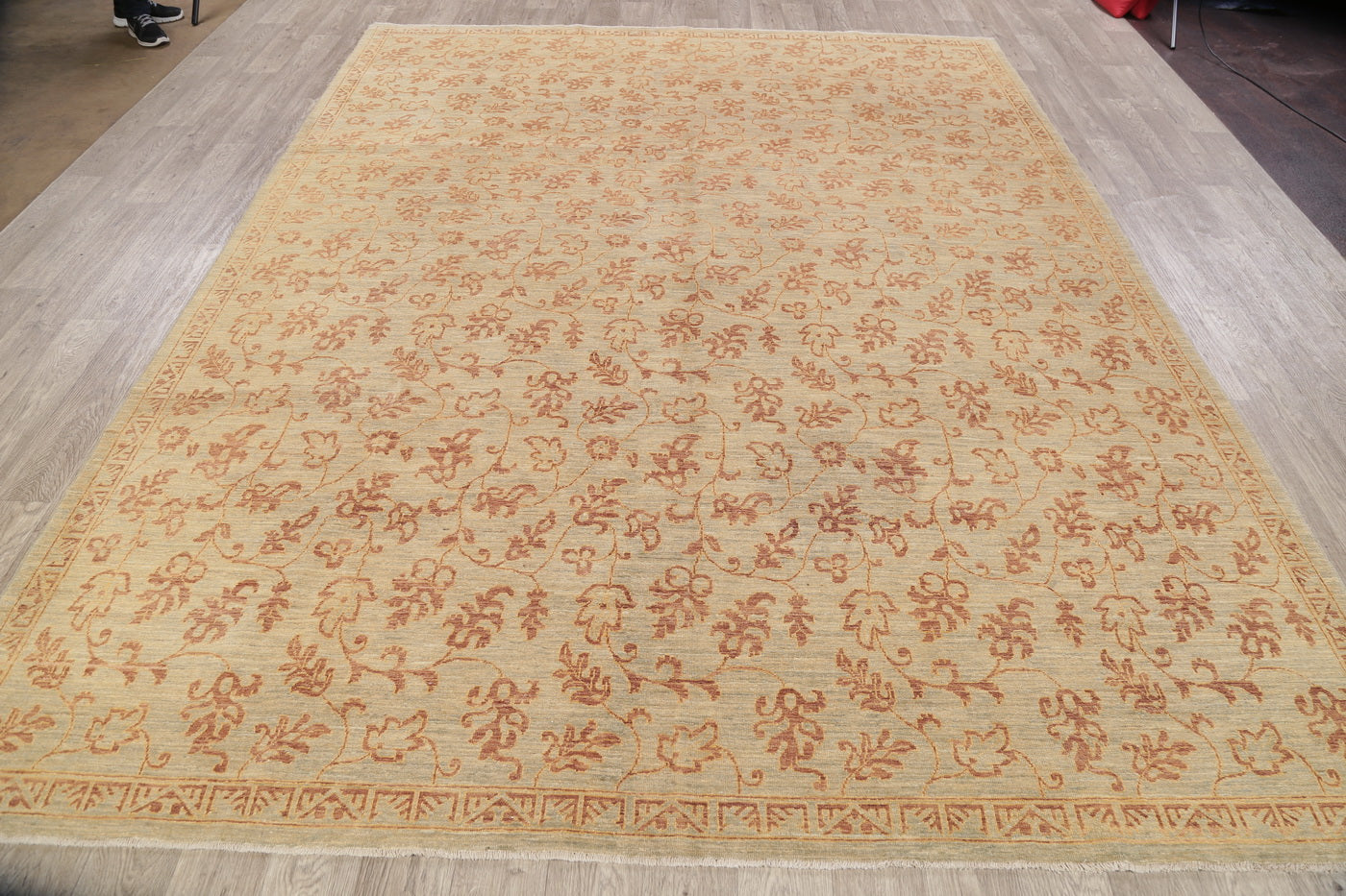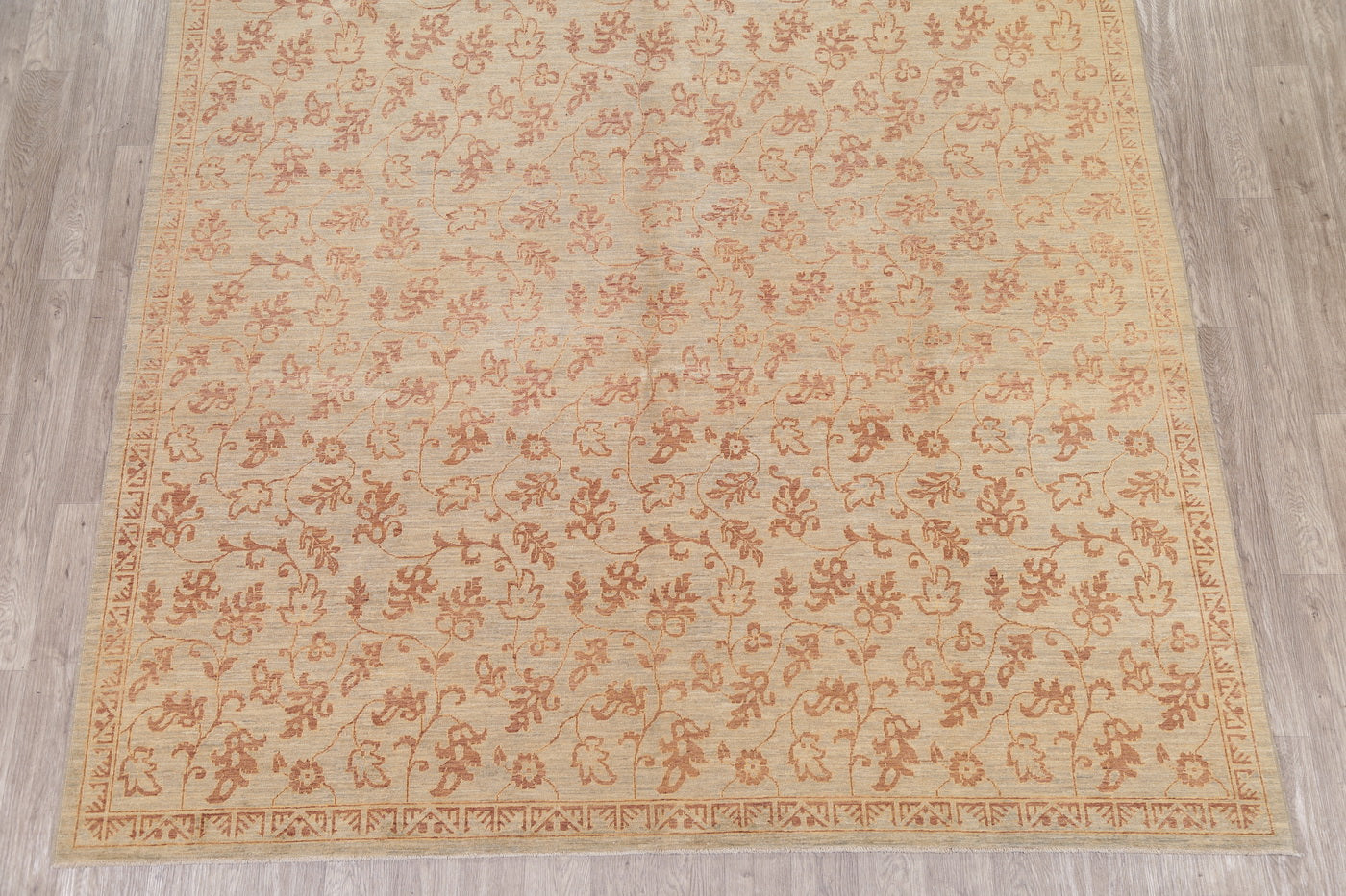 A Beautiful Genuine Pakistan Oushak rug is Hand Knotted by skillful weavers in Pakistan with 100% Wool Material. This rug is in New, First Quality condition. dimensions are 11' 2'' X 8' 7'' in foot and 340 X 262 in centimeter. the primary color is Beige & Ivories.