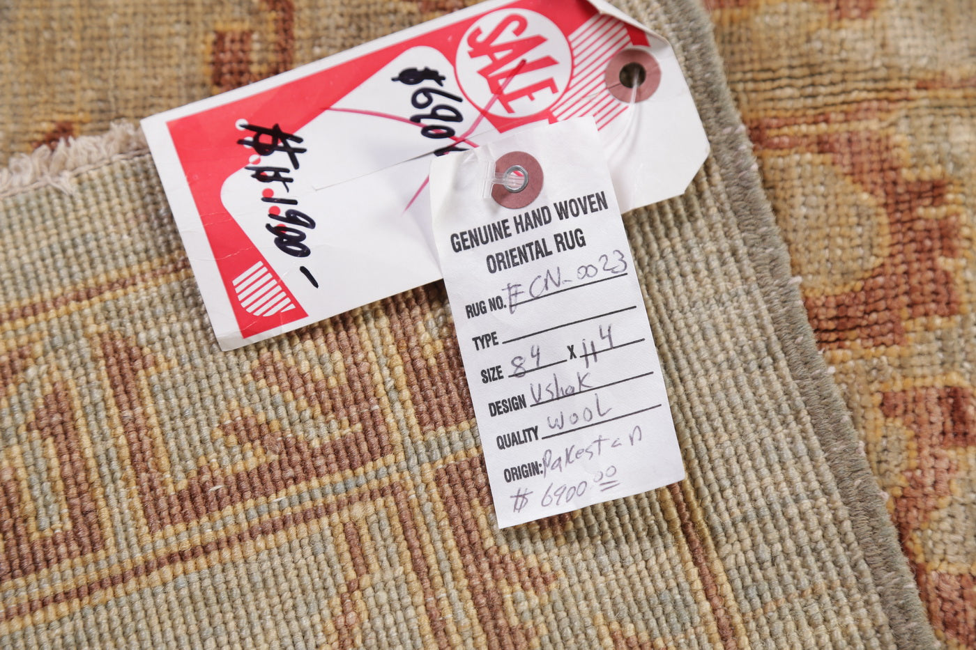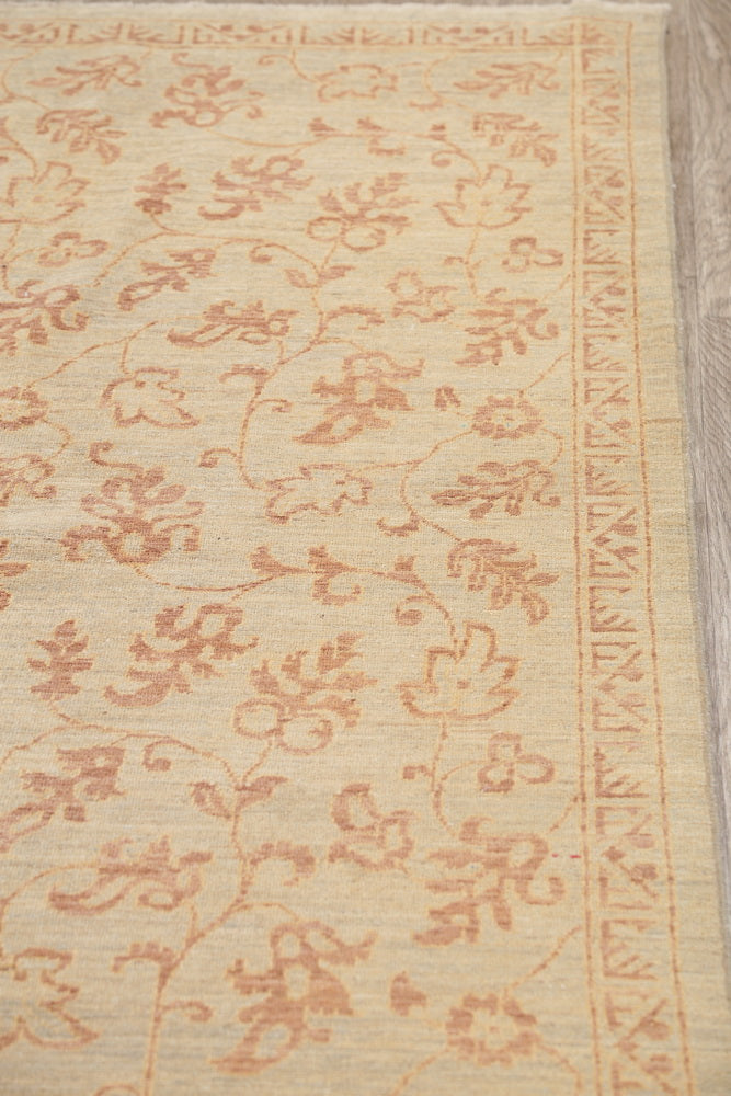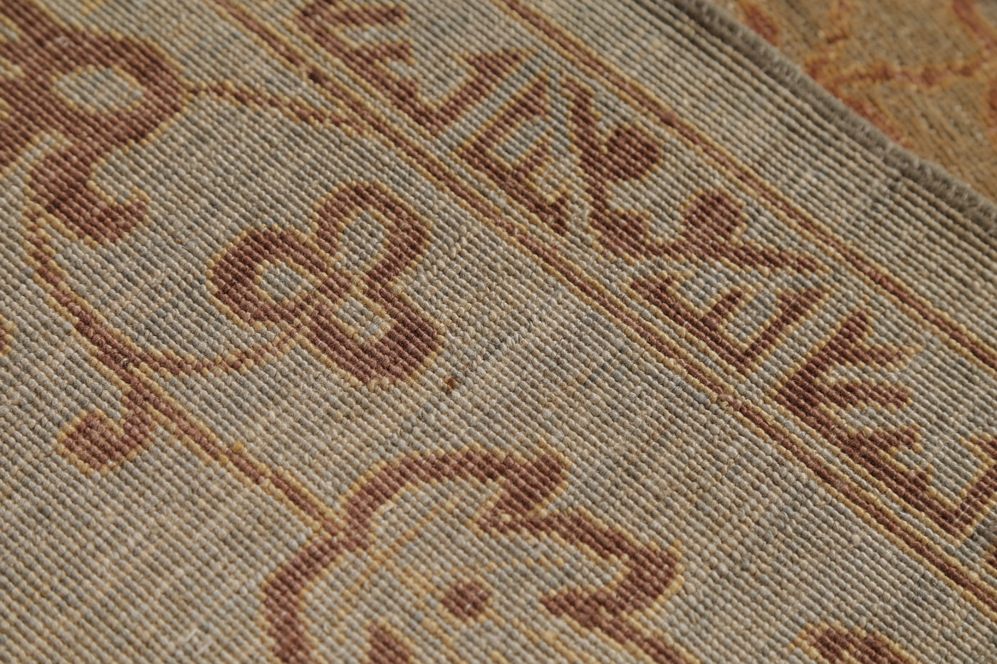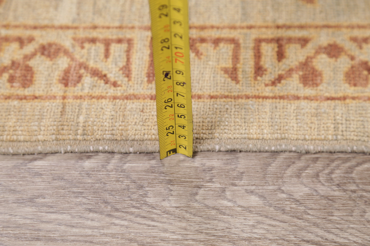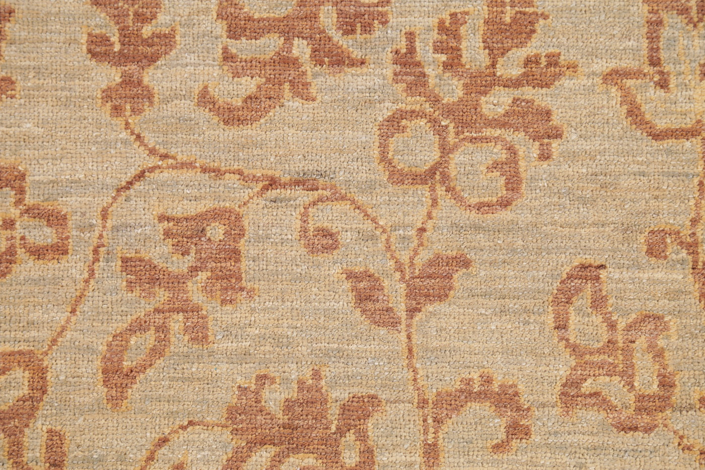 A Beautiful Genuine Pakistan Oushak rug is Hand Knotted by skillful weavers in Pakistan with 100% Wool Material. This rug is in New, First Quality condition. dimensions are 11' 2'' X 8' 7'' in foot and 340 X 262 in centimeter. the primary color is Beige & Ivories.