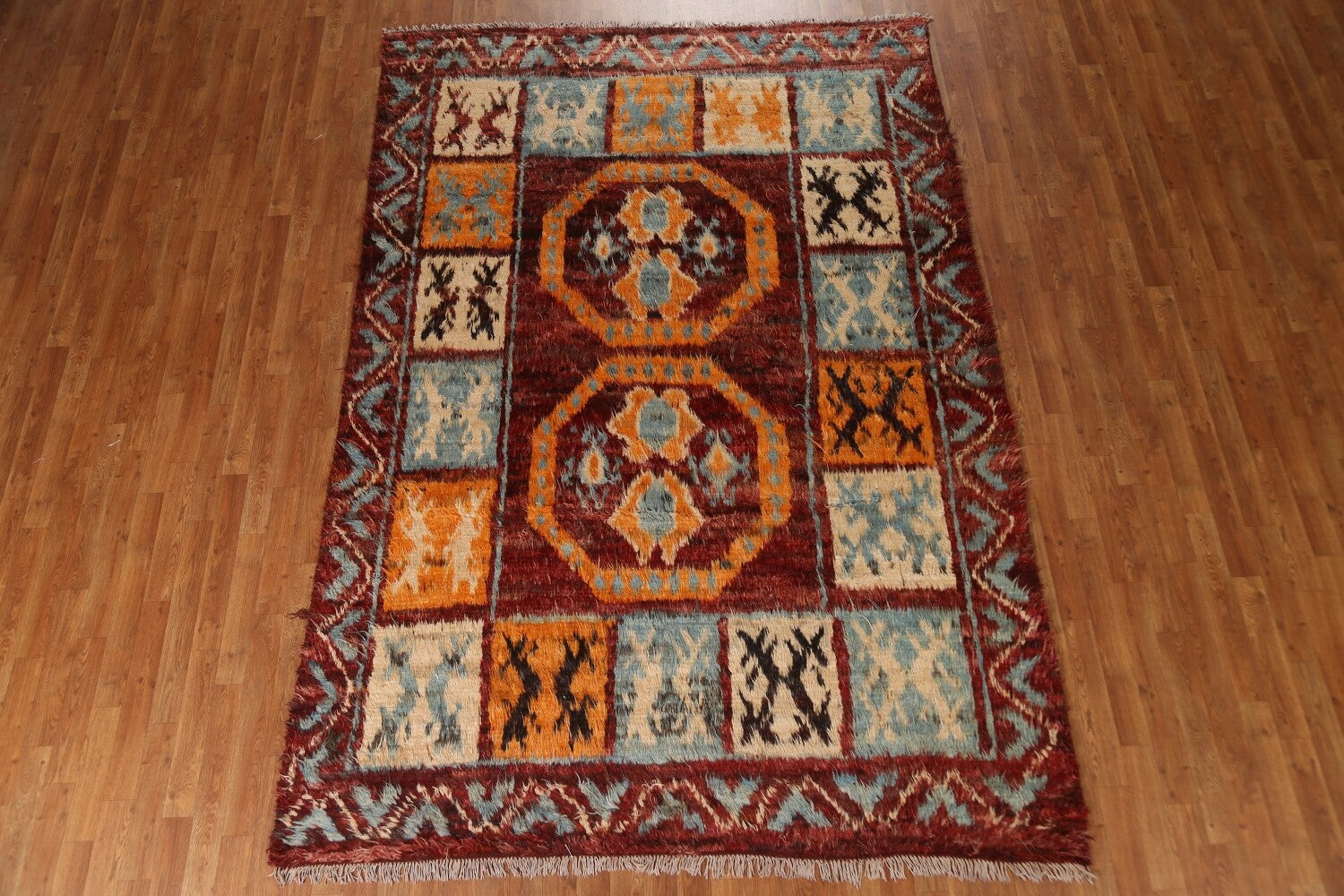 A Beautiful Genuine Pakistan Moroccan rug is Hand Knotted by skillful weavers in Pakistan with 100% Wool Material. This rug is in condition. dimensions are 9' 9'' X 6' 8'' in foot and 297 X 203 in centimeter. the primary color is Red.