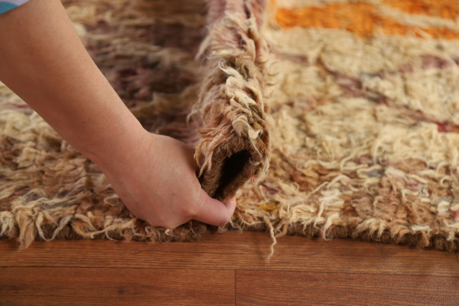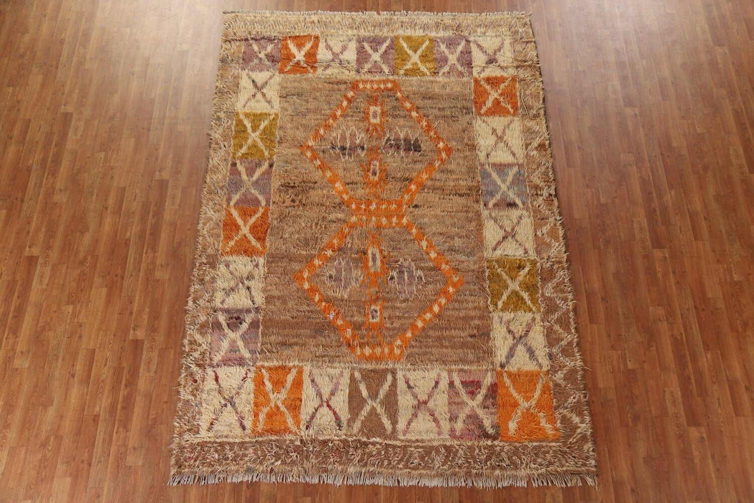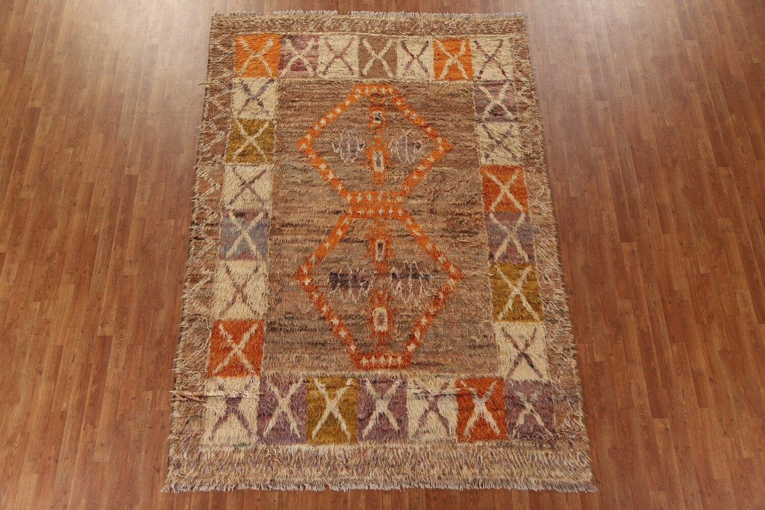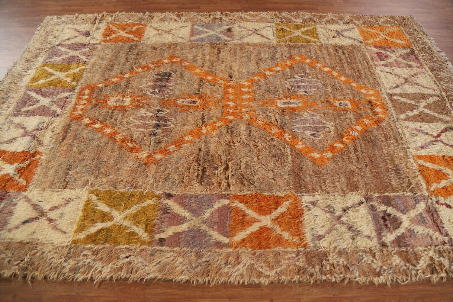 A Beautiful Genuine Pakistan Moroccan rug is Hand Knotted by skillful weavers in Pakistan with 100% Wool Material. This rug is in condition. dimensions are 9' 9'' X 6' 11'' in foot and 297 X 211 in centimeter. the primary color is Brown.