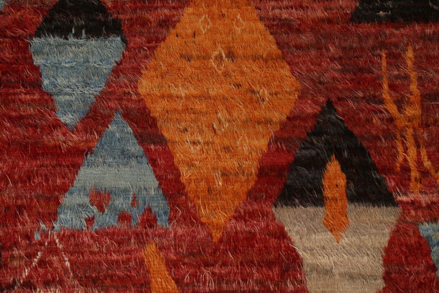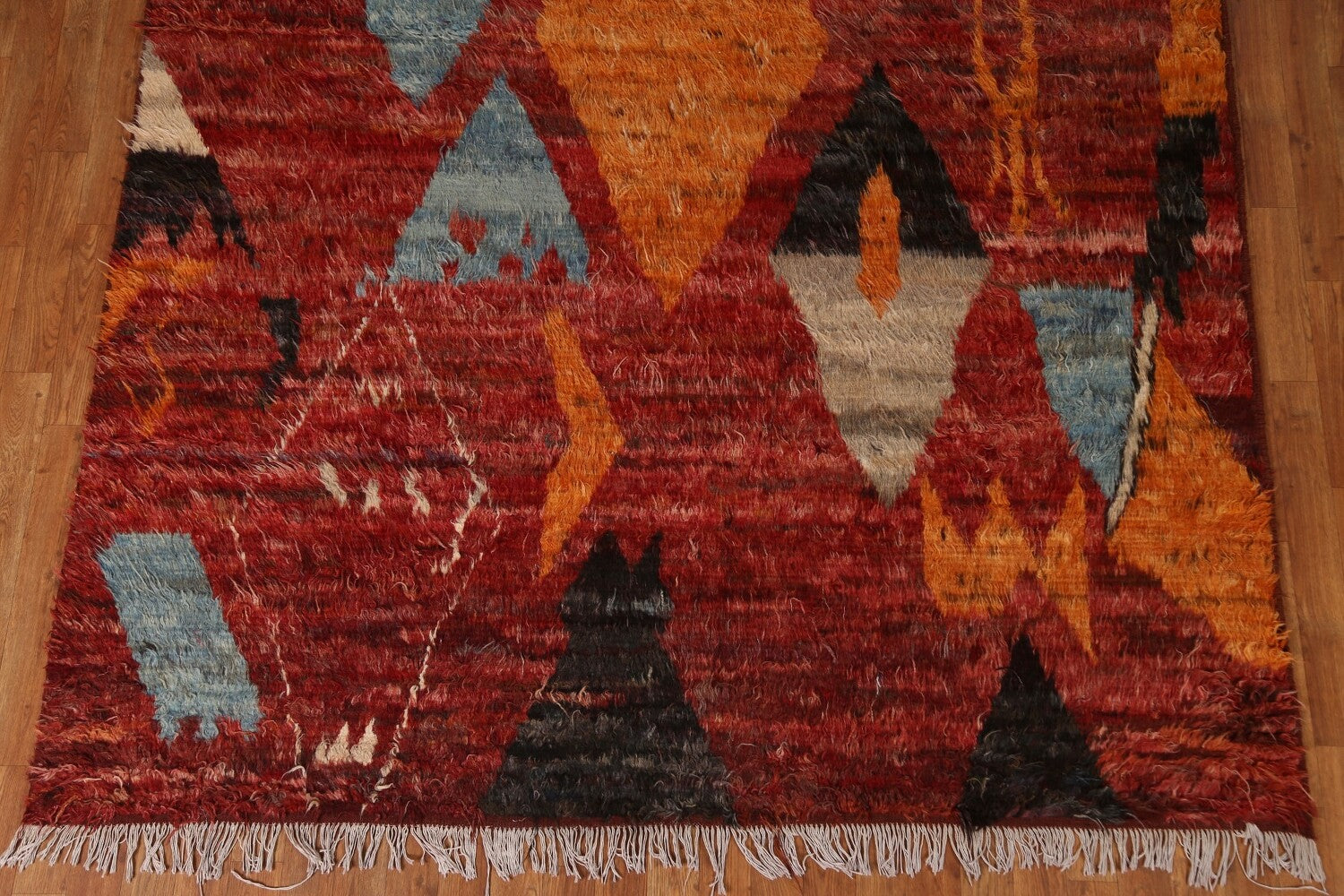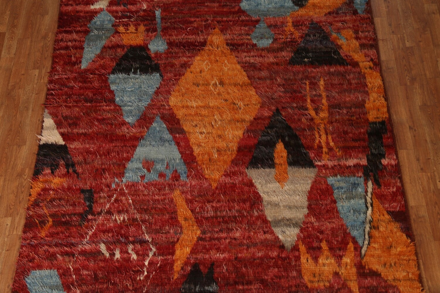 A Beautiful Genuine Pakistan Moroccan rug is Hand Knotted by skillful weavers in Pakistan with 100% Wool Material. This rug is in condition. dimensions are 9' 9'' X 6' 10'' in foot and 297 X 208 in centimeter. the primary color is Red.